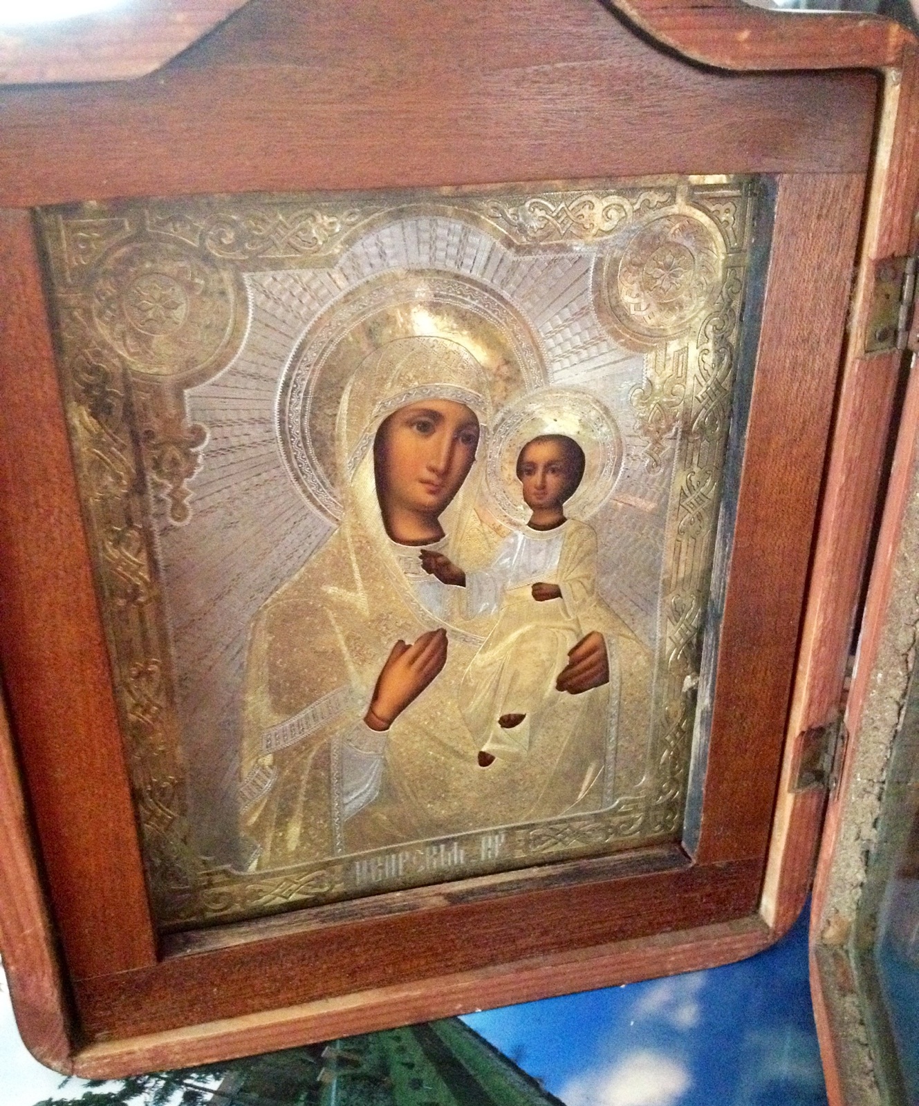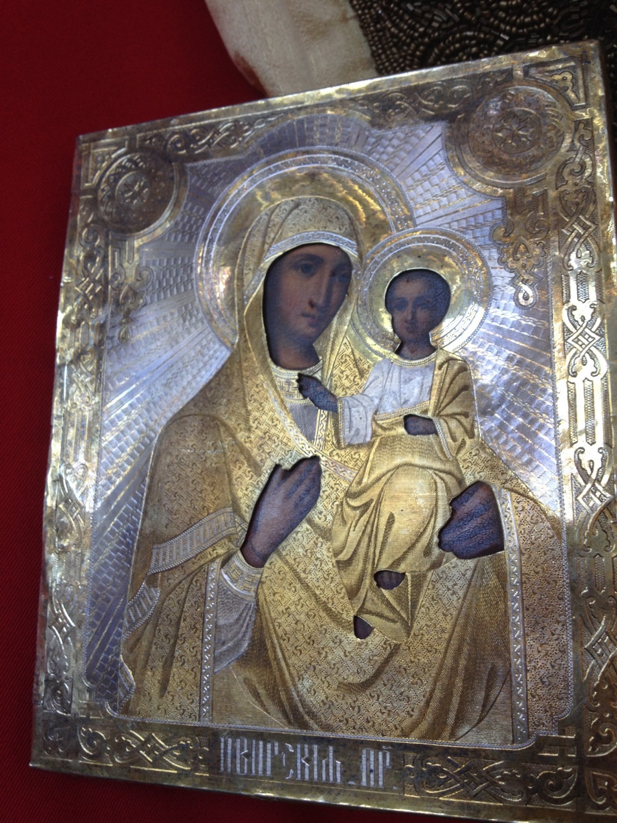 Does the metal cover (Oklad) have makers marks on it? Important to check - Russian pre-Revolutionary silver is typically marked with the maker's initials, 841 for silver quality, city crest, etc.