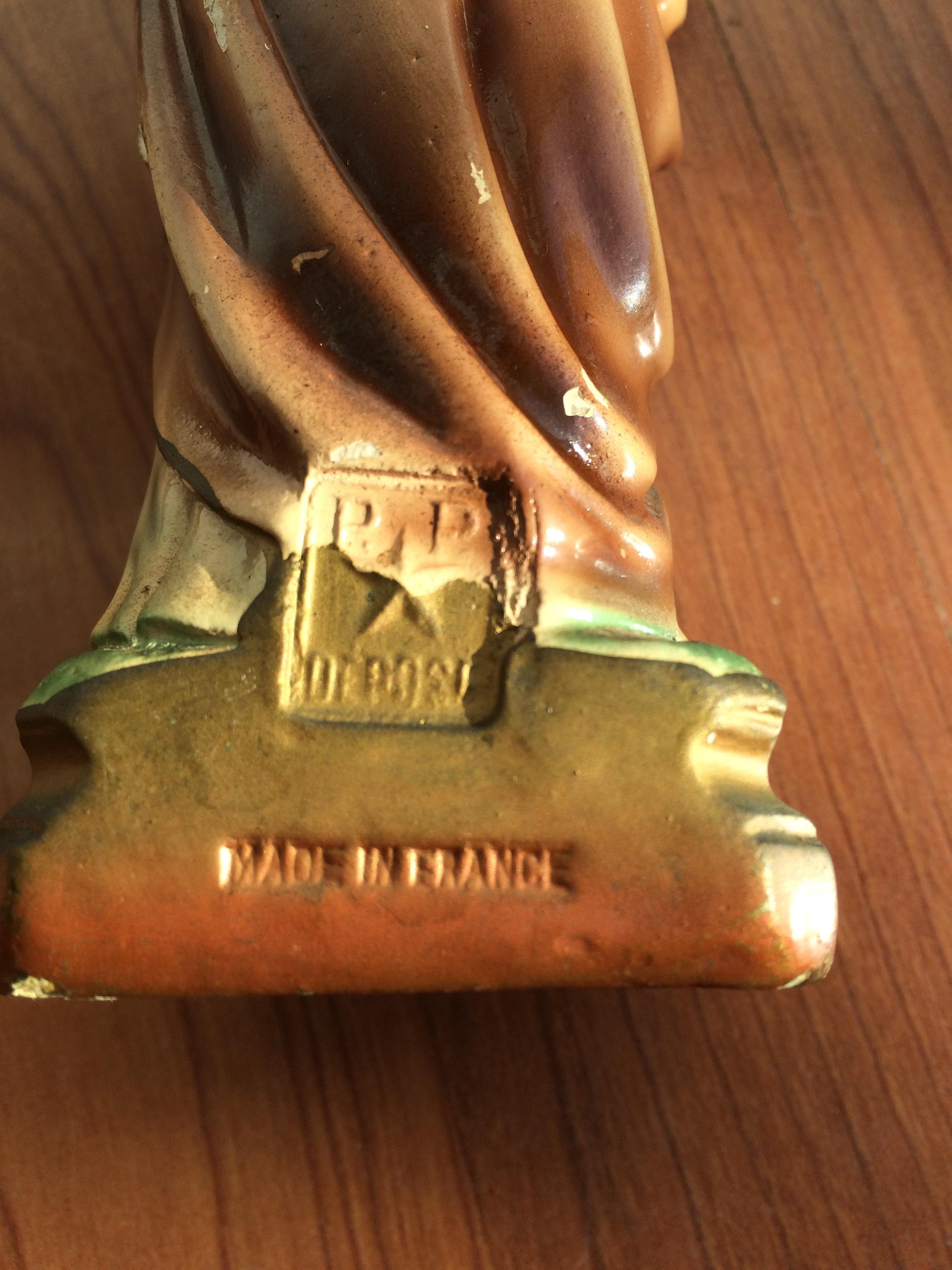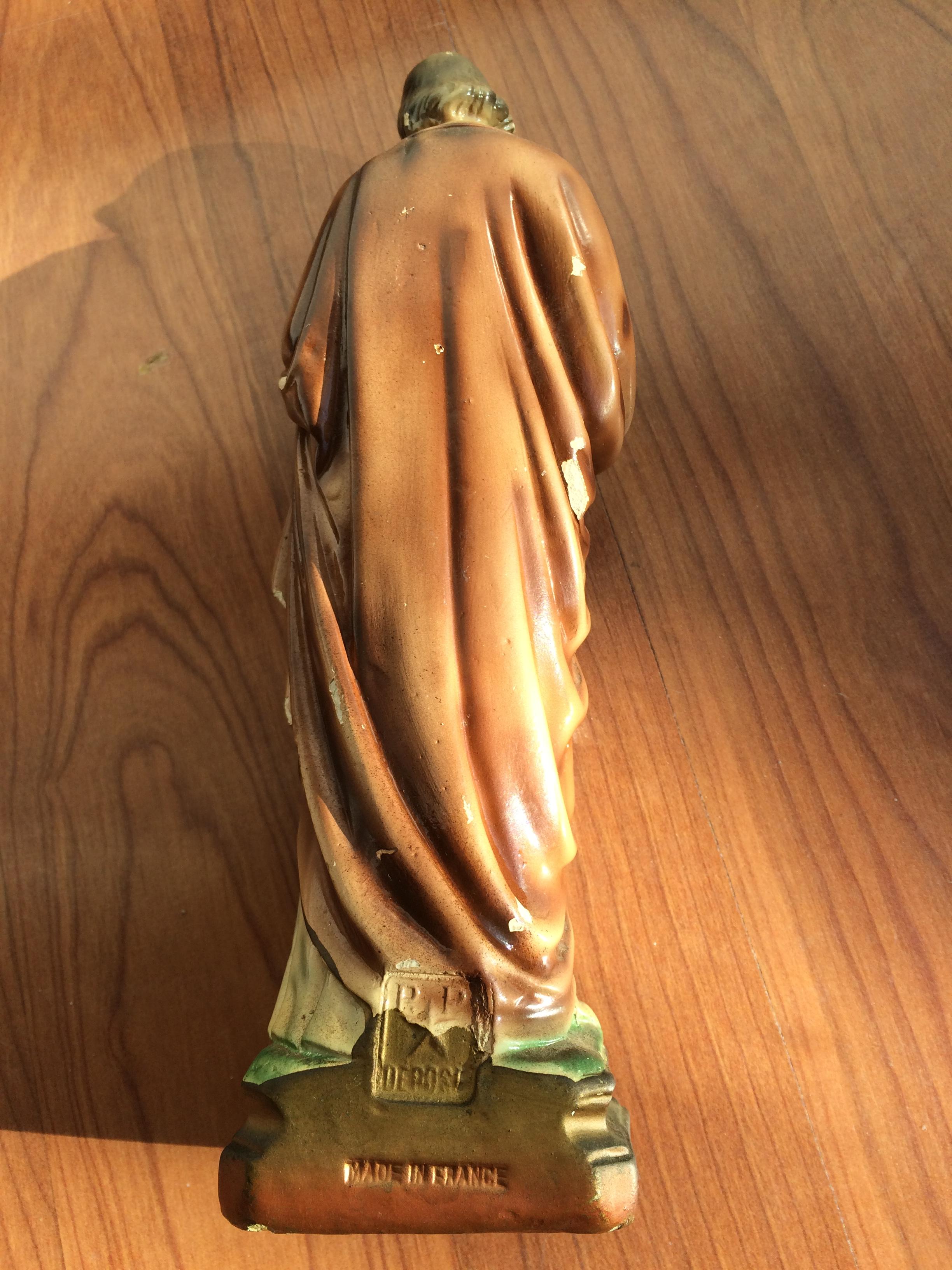 St Anthony with Jesus is made in France and the marking "P P DeRosa" is on back. The name St Joseph at feet.