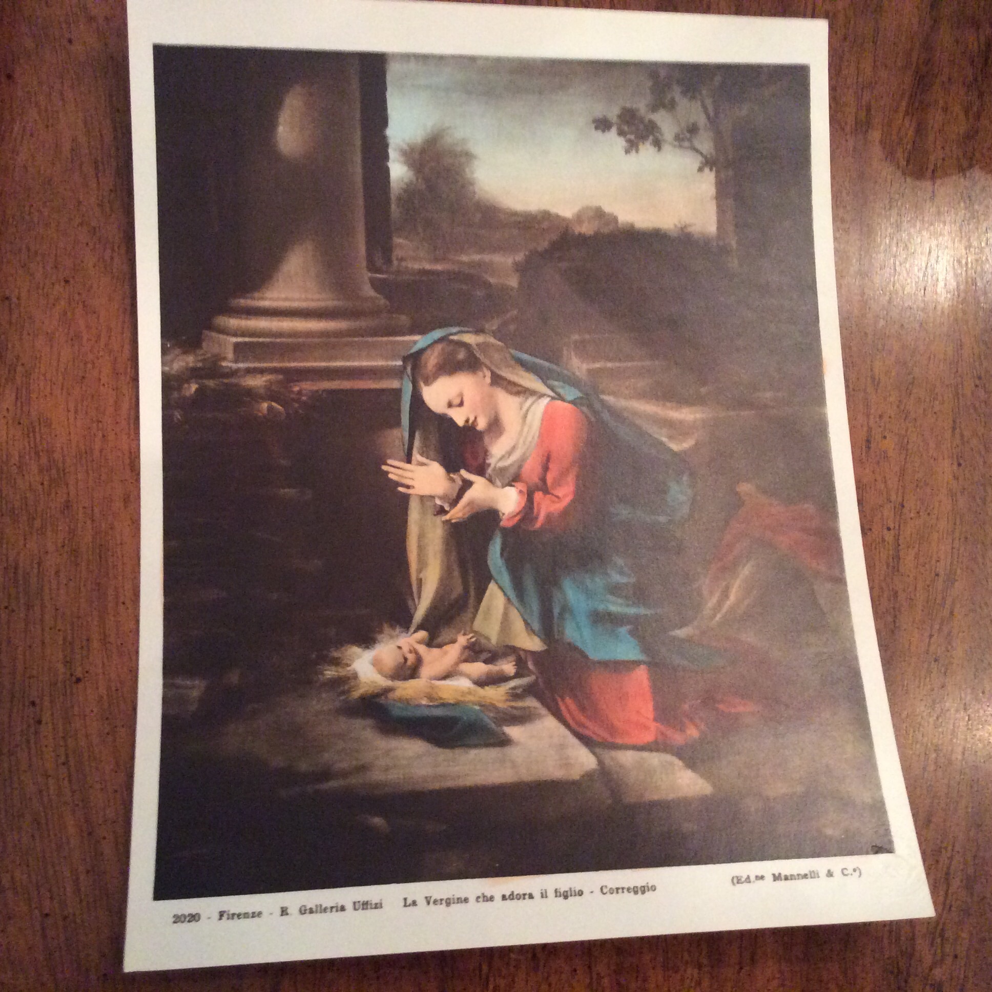 Approx 8x10 Correggio reproduction ...stamped on back: edizione mannelli, via s. Nicole, 101 - Firenze.  Also, it has an embossed seal in the bottom right hand.