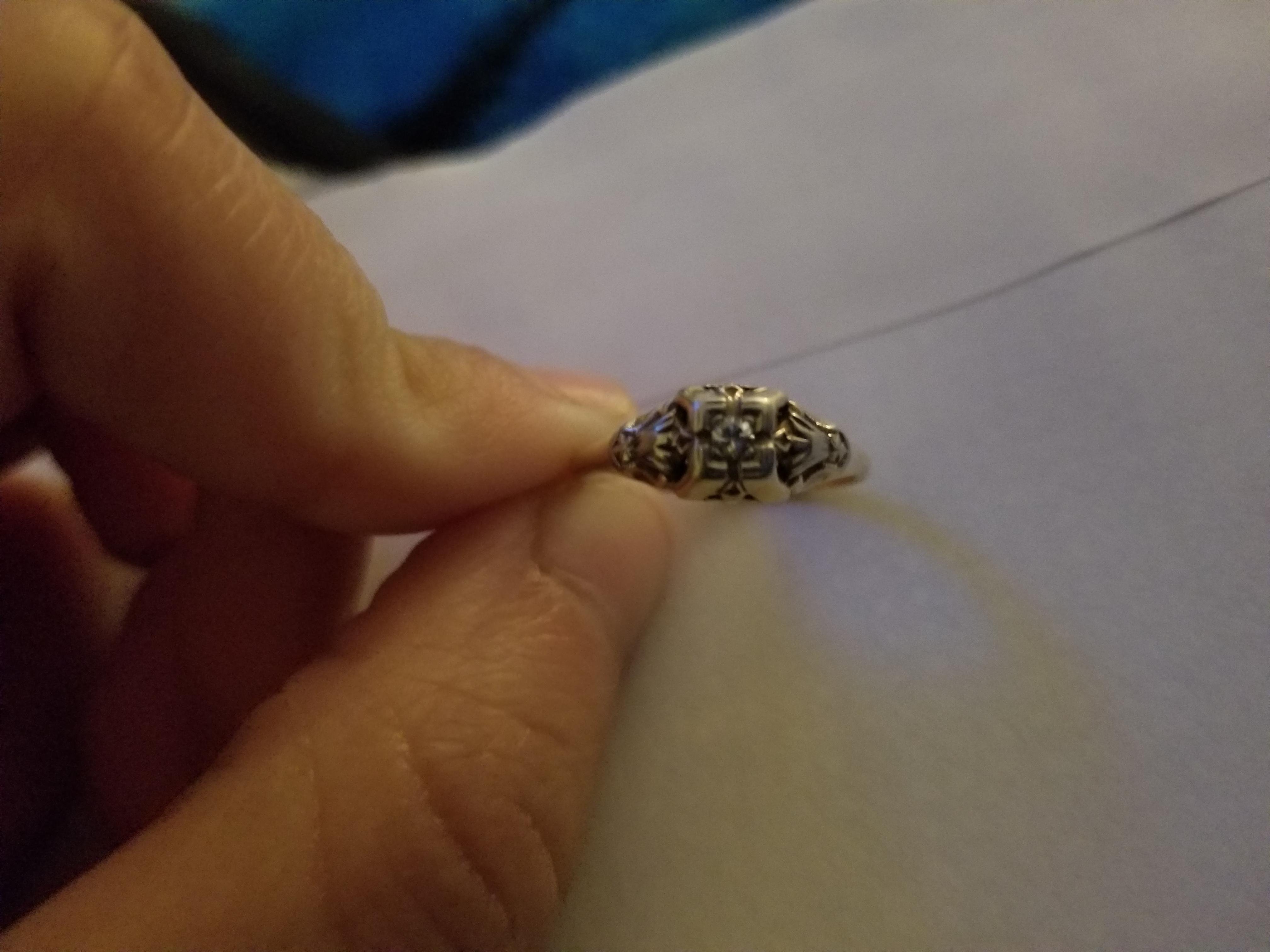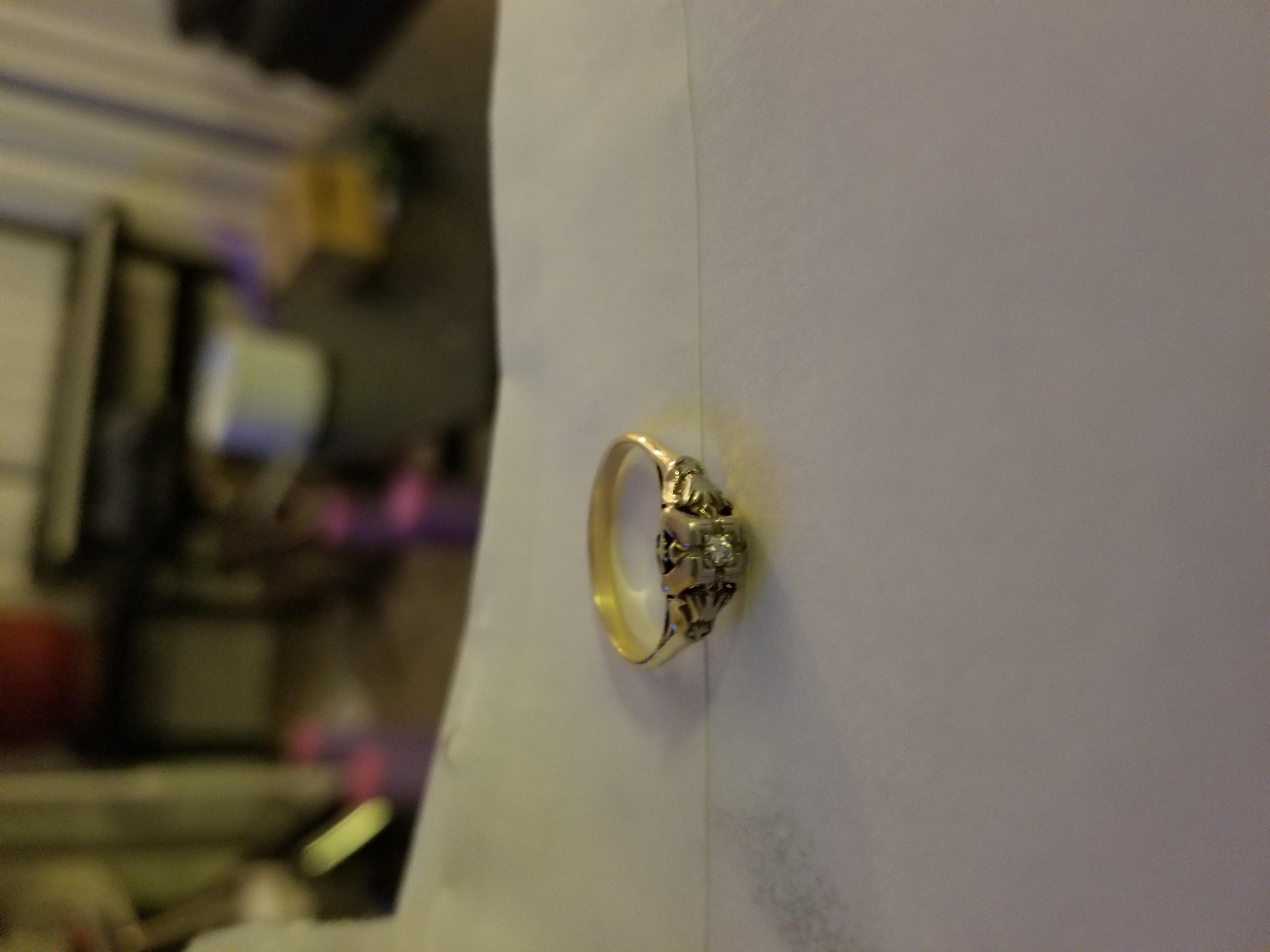 pretty little ring. small diamond in center looks bright color, which is good. any marking as to gold content? 10k, 12k,14k..... if diamond is as small as I think, i would base the price on weight of gold and go from there.