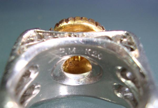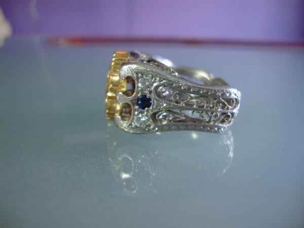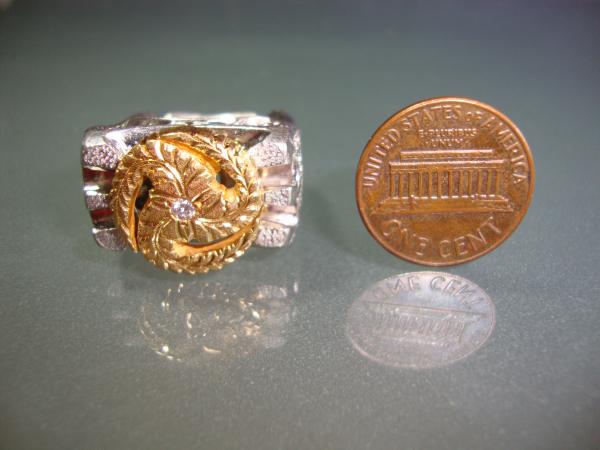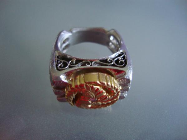 Around 1970 my Dad was playing cards with some men in the basement of a bar. (This was in Cincinnati, OH) One of the men (an Asian man who looked to be pretty rich) had lost all of his money and bartered with this ring. My dad won it from him and the man was very upset about it. My dad left after that game. My dad never saw him again and we wonder to this day if this is worth a lot or a little. It is very a unique piece with lots of detailed design. Please let me know if you need to know more information or to see more pictures.