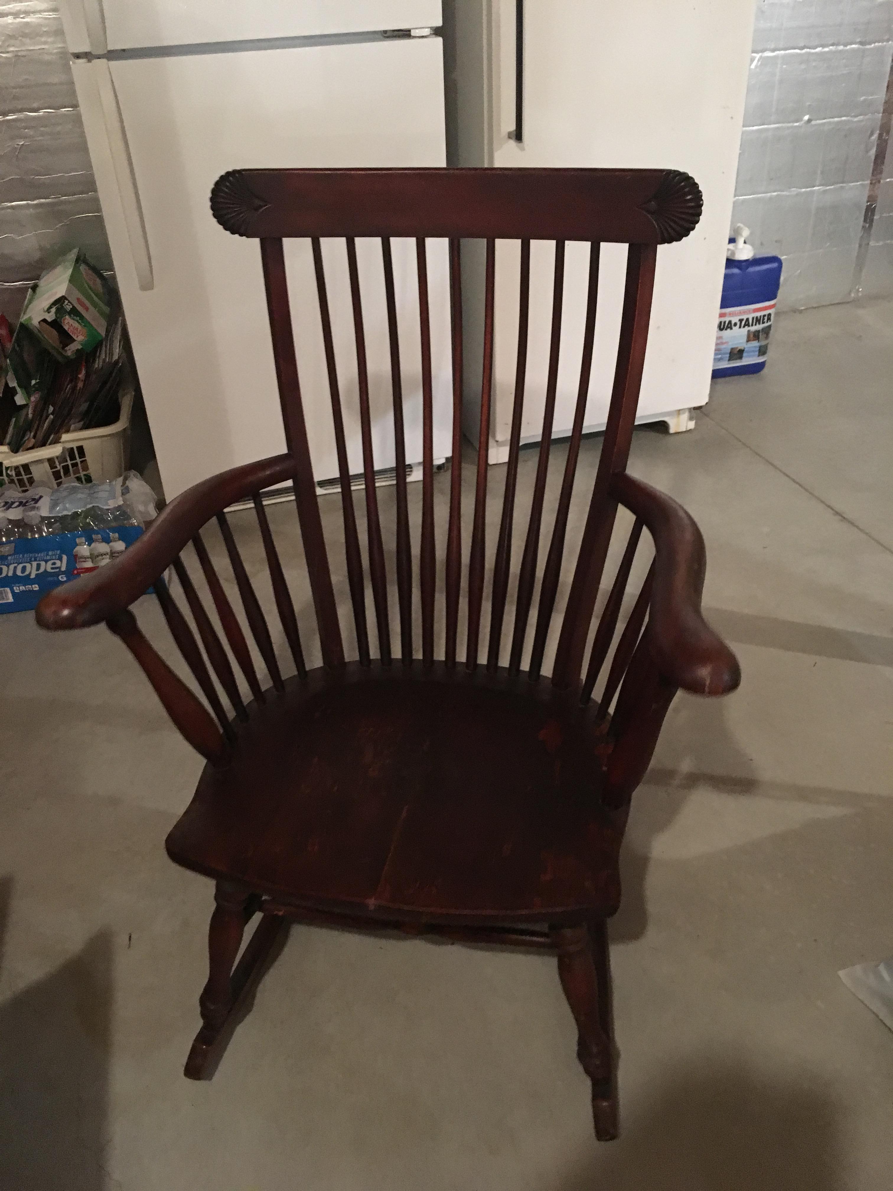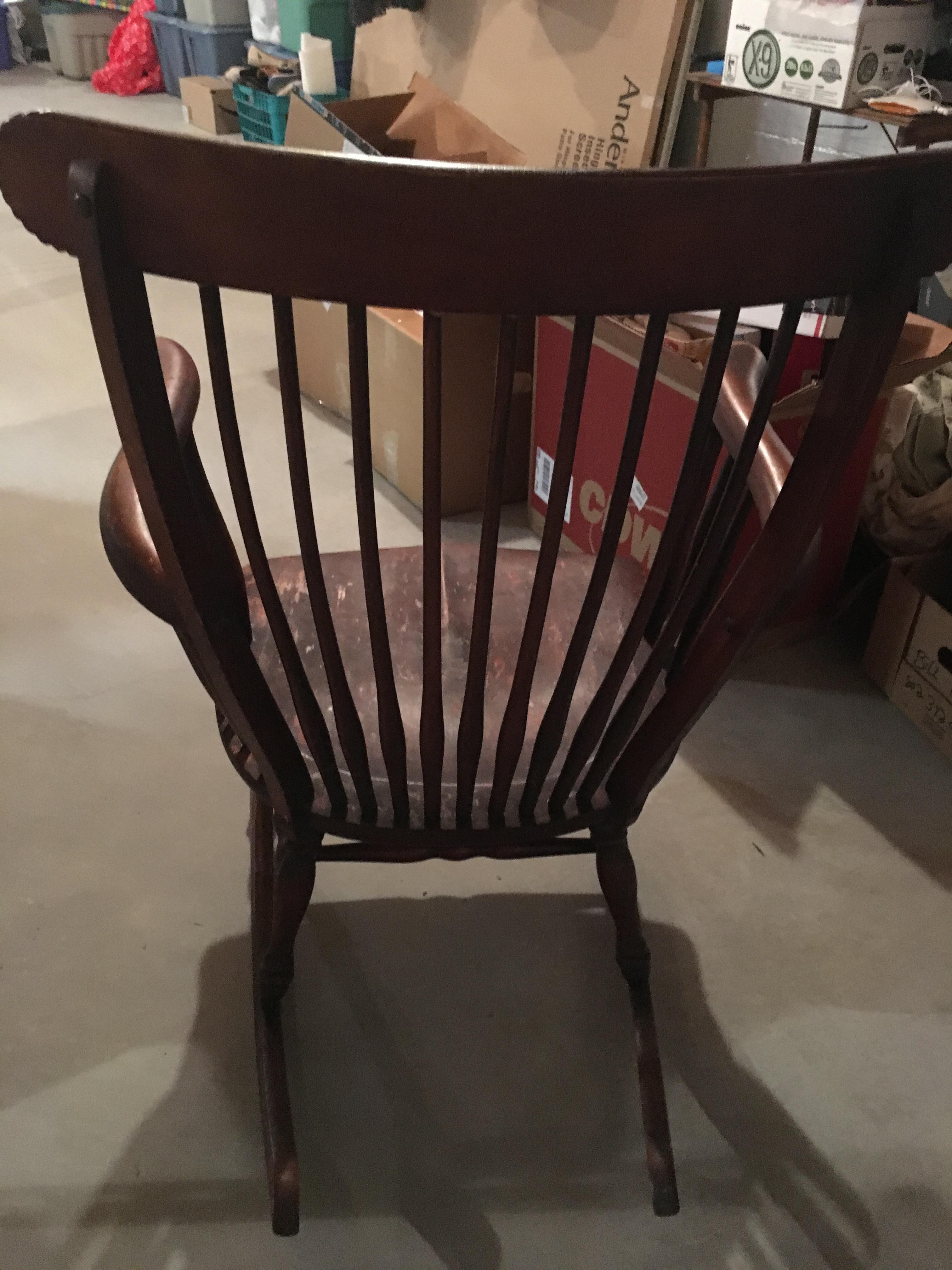 Your Rocker is a "Colonial Revival" example, a 1920's reproduction of a early 19th Century one. They last peaked in value during the 1990's values for them have been in decline since that time. We'd retail one in very good condition for about $200.00., they go at auction often for under $100.00.