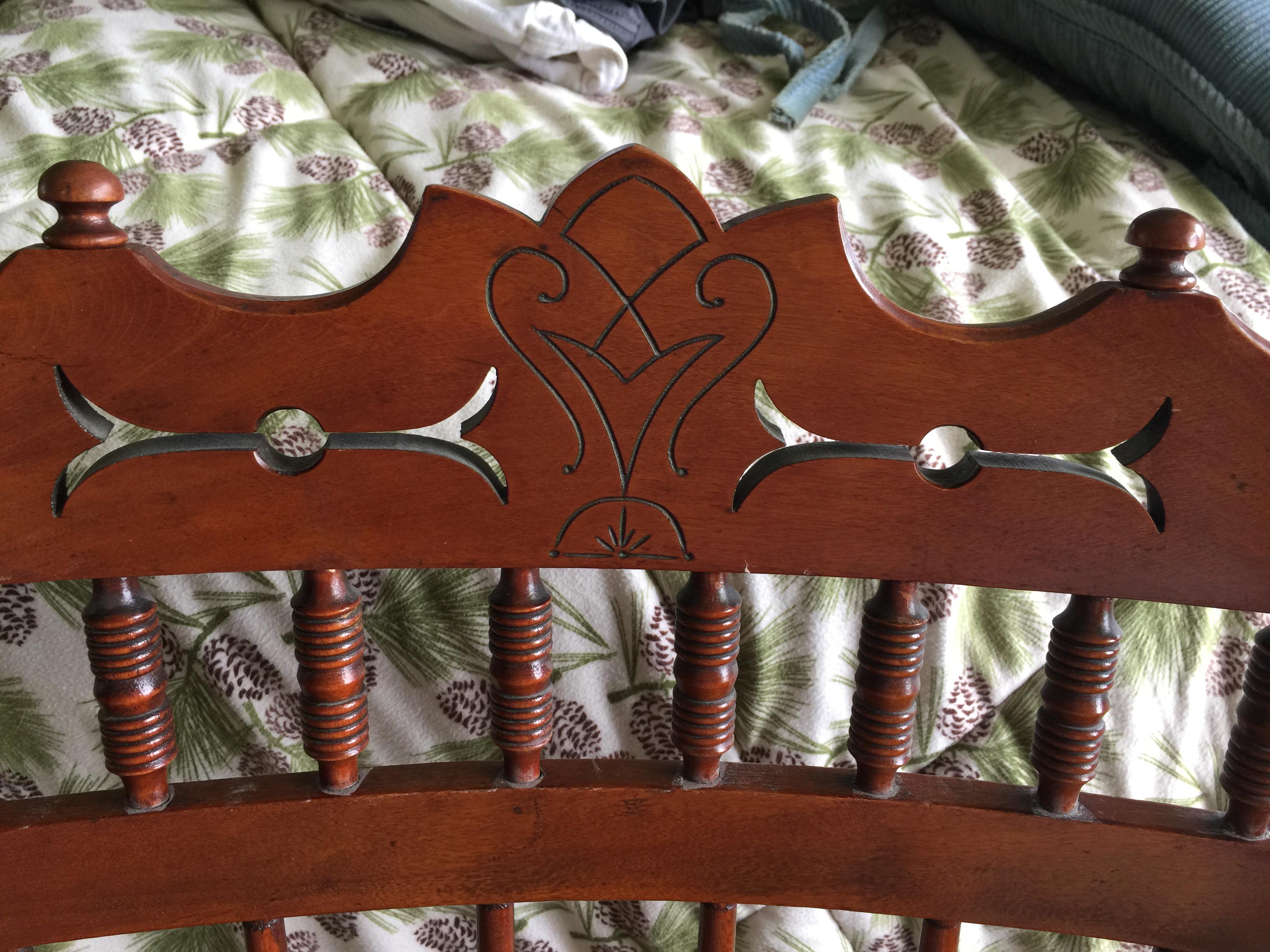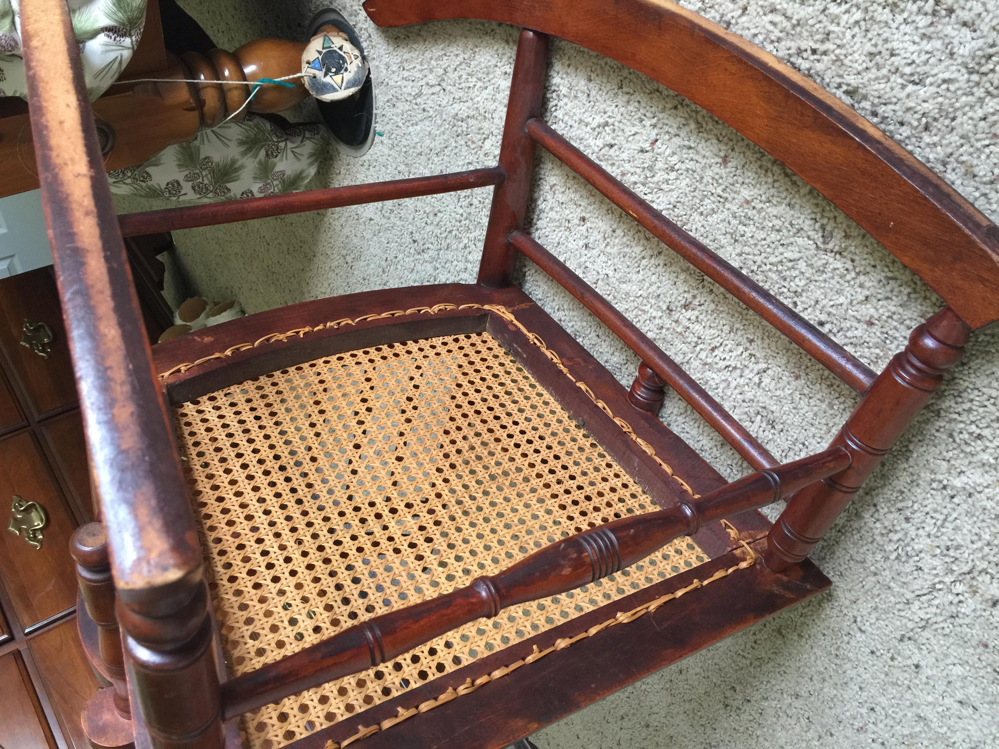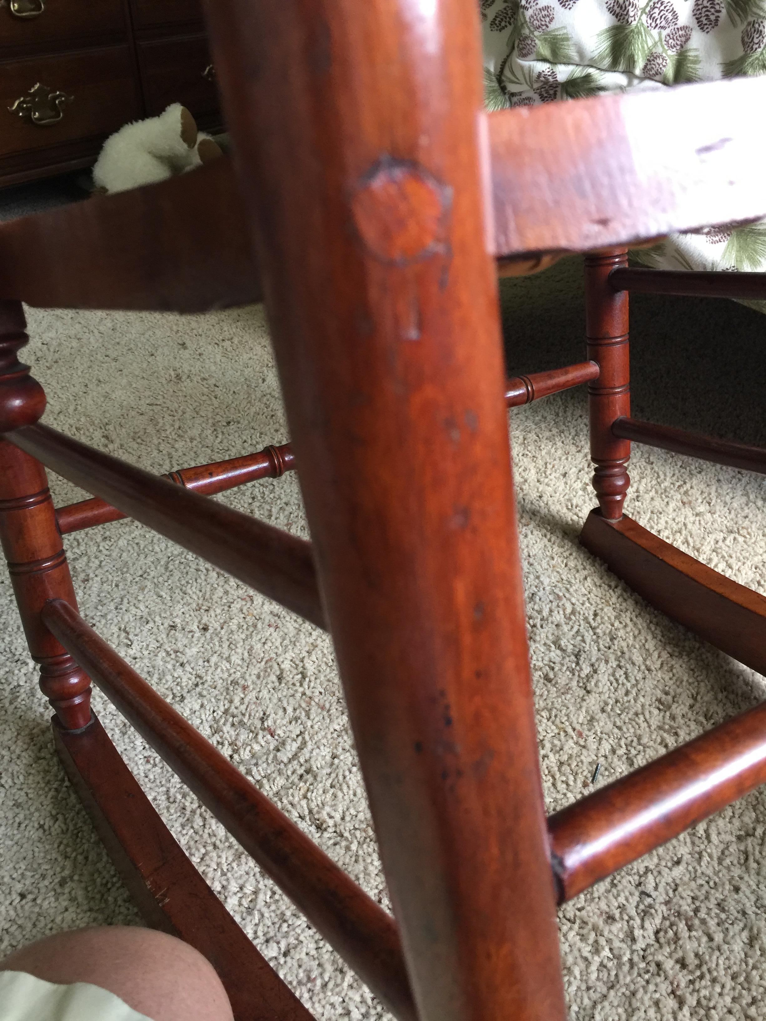 Grandmother's chair. It is not very big, obviously handmade and put together with glue. There are 4 dowels visible holding arm to seat. Some very old looking unsymmetrical nail heads on bottom of seat. I have no idea what type of wood this is. Would love any info I can get.