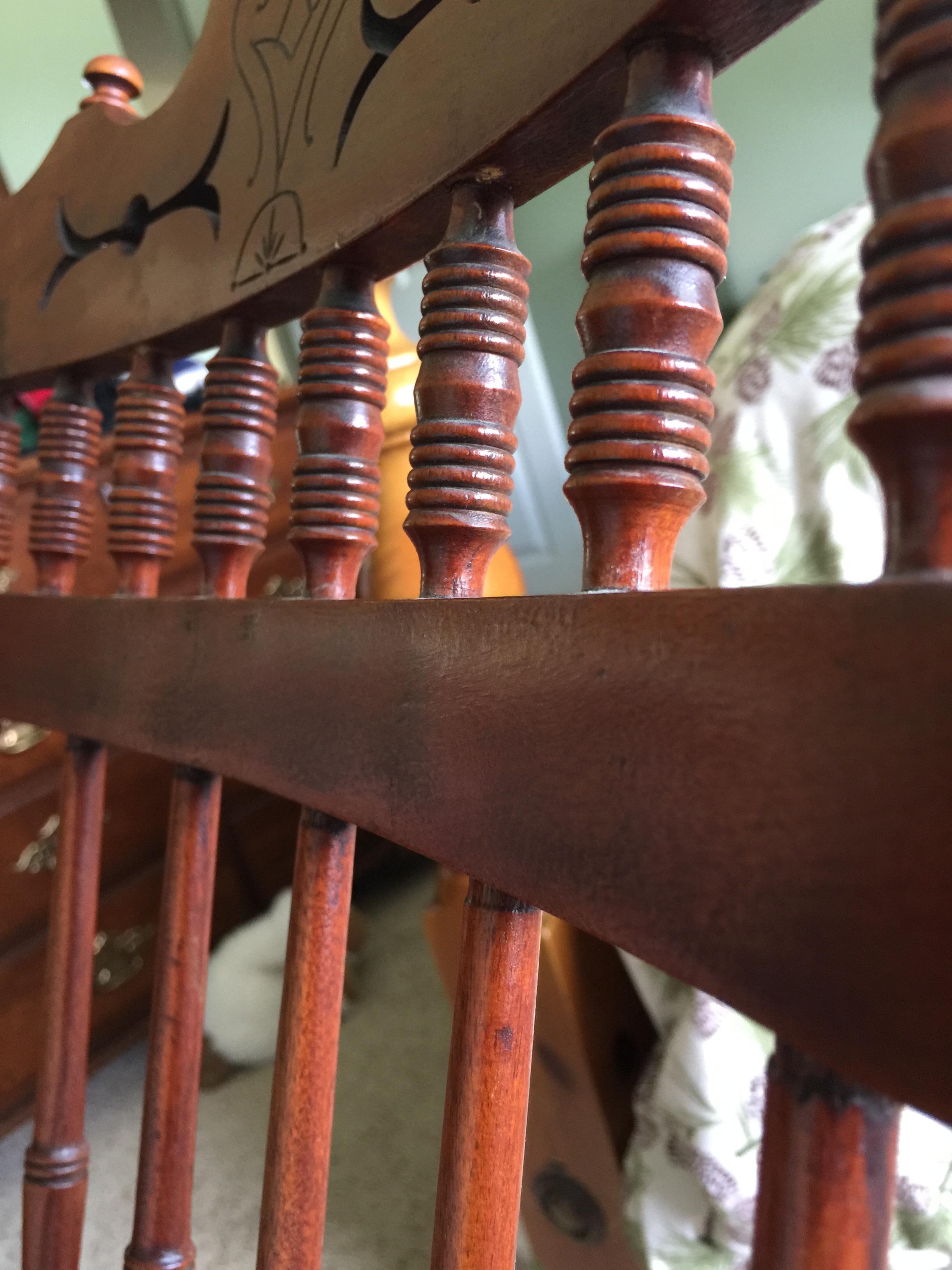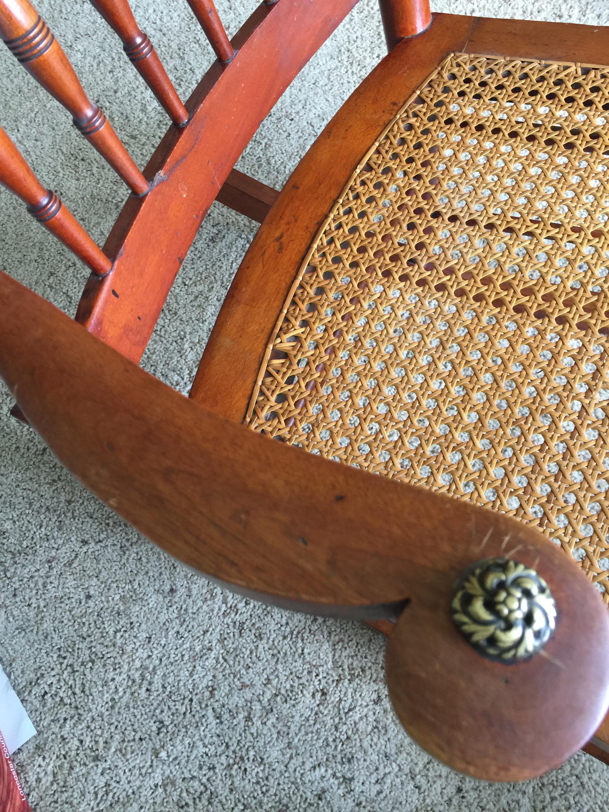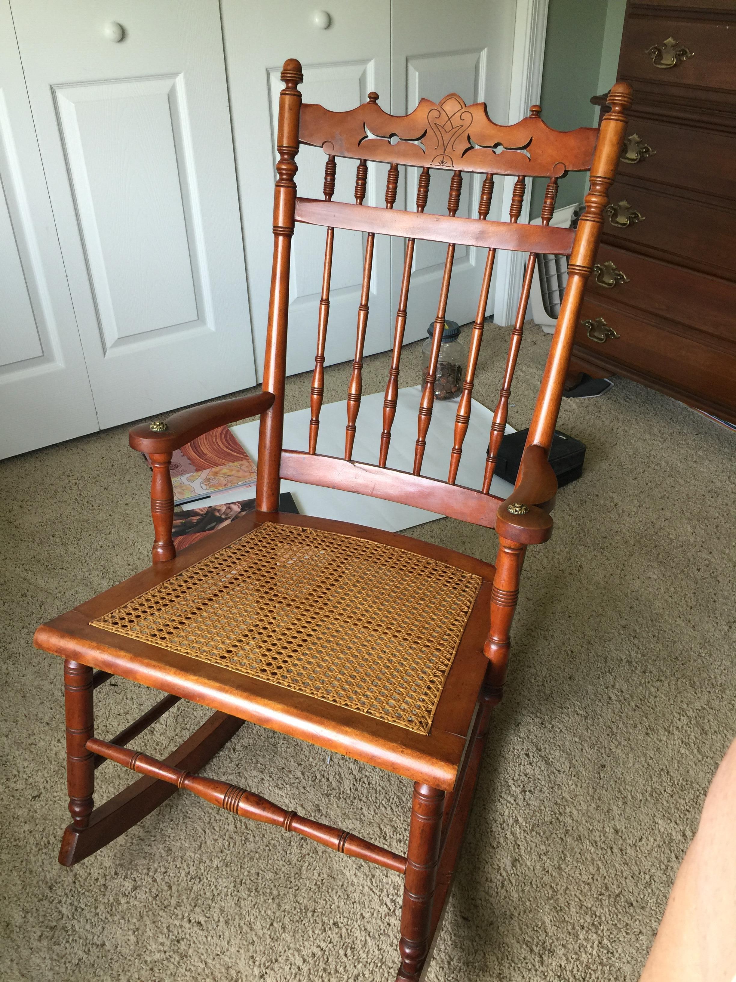 Grandmother's chair. It is not very big, obviously handmade and put together with glue. There are 4 dowels visible holding arm to seat. Some very old looking unsymmetrical nail heads on bottom of seat. I have no idea what type of wood this is. Would love any info I can get.