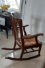 My wife got this antique rocking chair from her grandmother who has been saving it for many years. I cannot find any markings about who makes it, but it looks to be handmade due to the roughness and small glob of glue I was able to find.