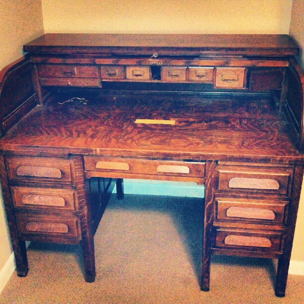 Hello! I recently purchased a roll top desk. I have looked over the entire desk but was unable to find much information. My first find was this: http://www.stickleyera.info/AmericanRetailers_files/image007.jpg It's on the underside of the center drawer. After researching Edwards Furniture Co for a bit, I found they were located in downtown Portland Oregon. I combed the local newspapers for a few hours and found that this style desk wasn't sold until around 1909.