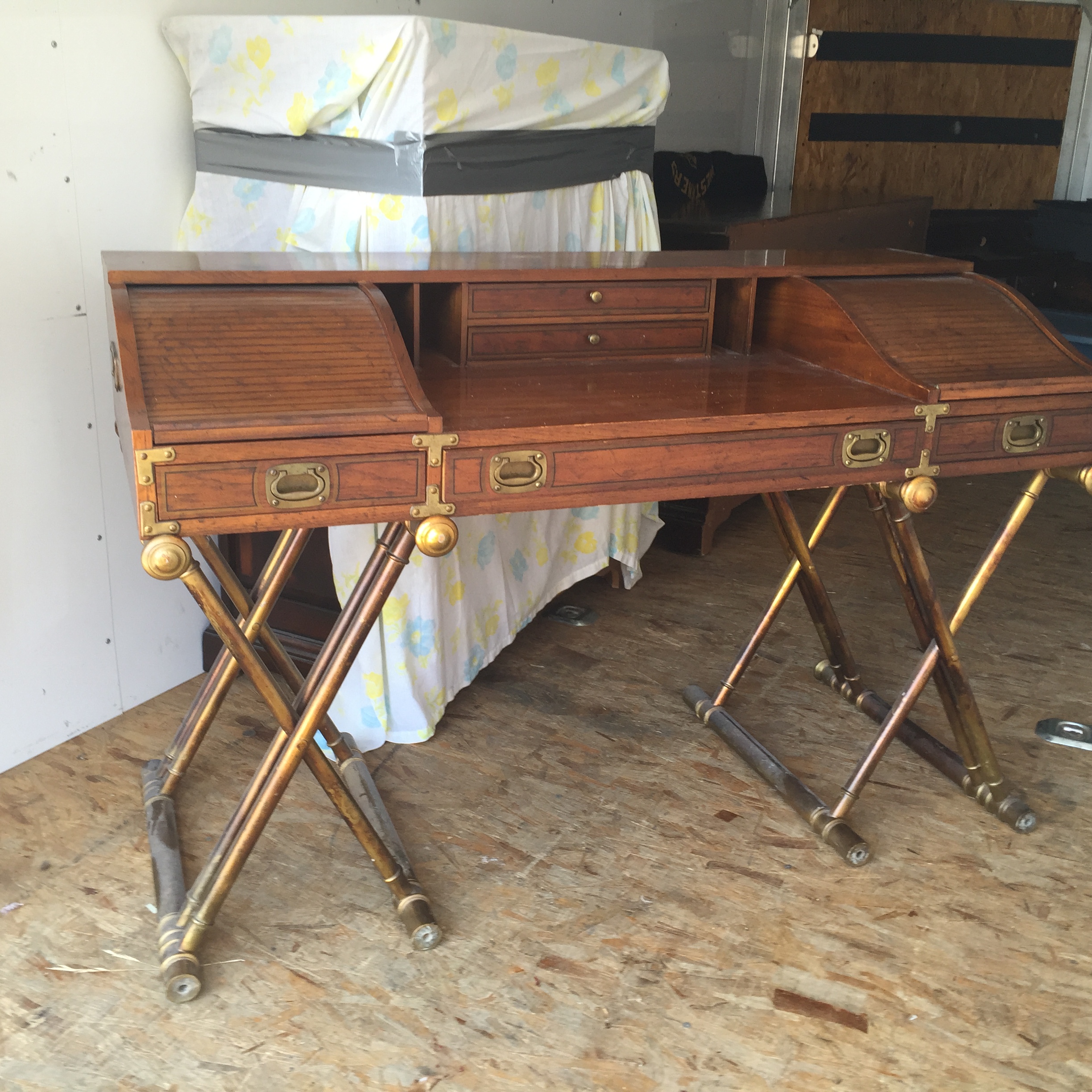 Roll top wooden desk with some brass, needing the value and history if it is an antique