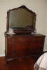 The antique oak roll top desk measures 49 3/4" wide by 33 1/2" deep by 43 1/2" high including the 13" high hutch and roll top unit. The knee hole is 18 1/2" wide by 25 1/2" high. The hutch unit of this desk has 3 center, open, cubby hole slots, 4 letter/envelope "scoops", 2 flat drawers and 1 locking 6" side by 4" high compartment door. The bottom desk section has six drawers total. The left pedestal has three 5" tall drawers complete with wood dividers. The right pedestal has a lower file drawer with the original drawer divider and a spring loaded document tensioner to keep files upright. That pedestal also has an upper 5" drawer with original wood dividers. All of the pulls and handles on this desk are the original "Tiger Oak" wood. The roll top works smoothly. The sides and back have recessed panels. The grain of this oak is beautiful. The deep drawers are all assembled with craftman dovetail joinery.