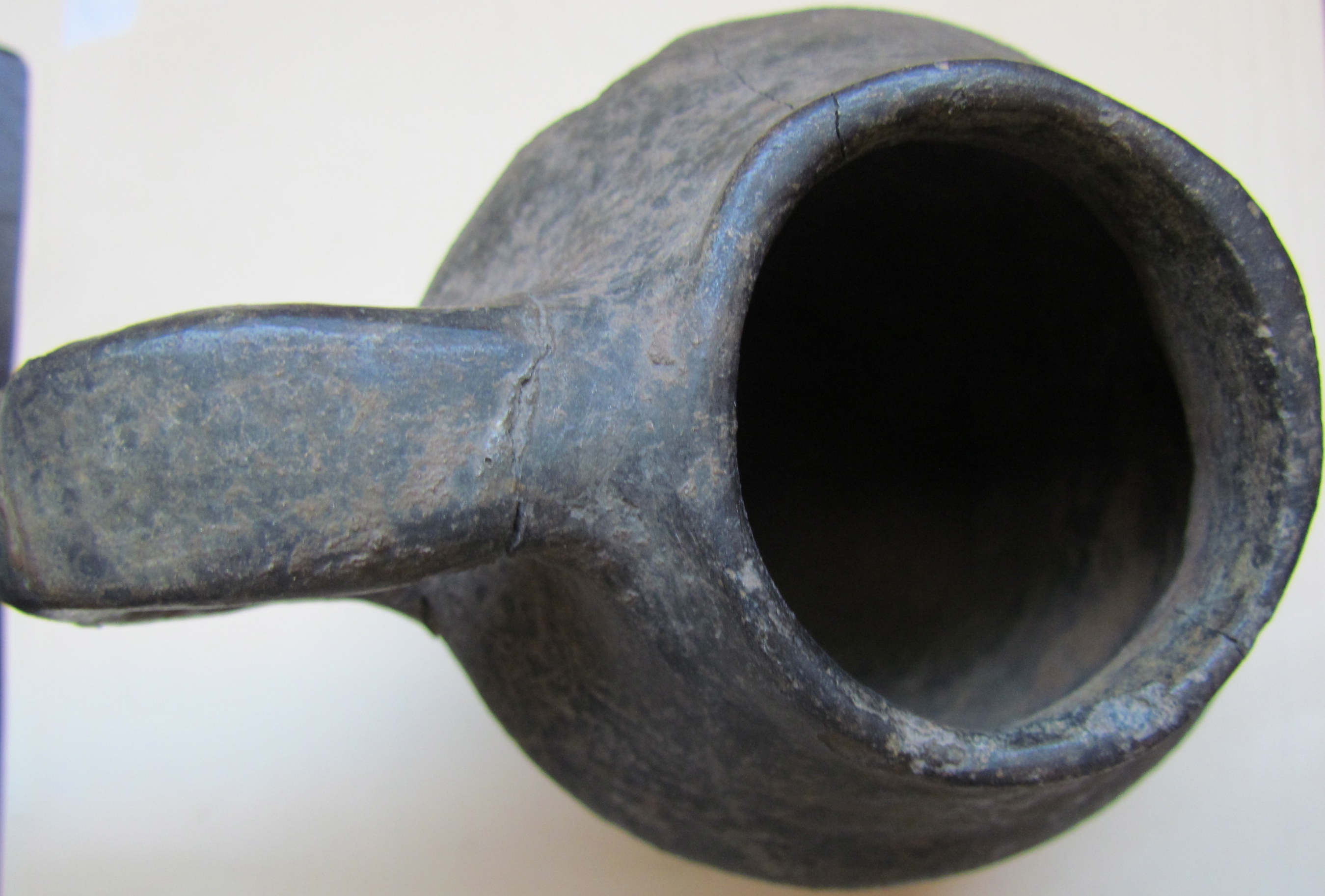 This pottery piece has been in my family for over 80 years. It comes from the Lazio or Tuscany region of Italy, but I do not know if it is Roman, Etruscan or of no value. Supposedly, my father came in possession of this item from a 'Tombarolo', one of those people who search old tombs, caves etc. for possible treasures. The item is about 4.5" in height, 3" in width, and the circular opening is about 2" in diameter.