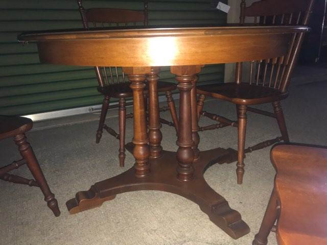 Antique Round Table with Matching 4 Chairs