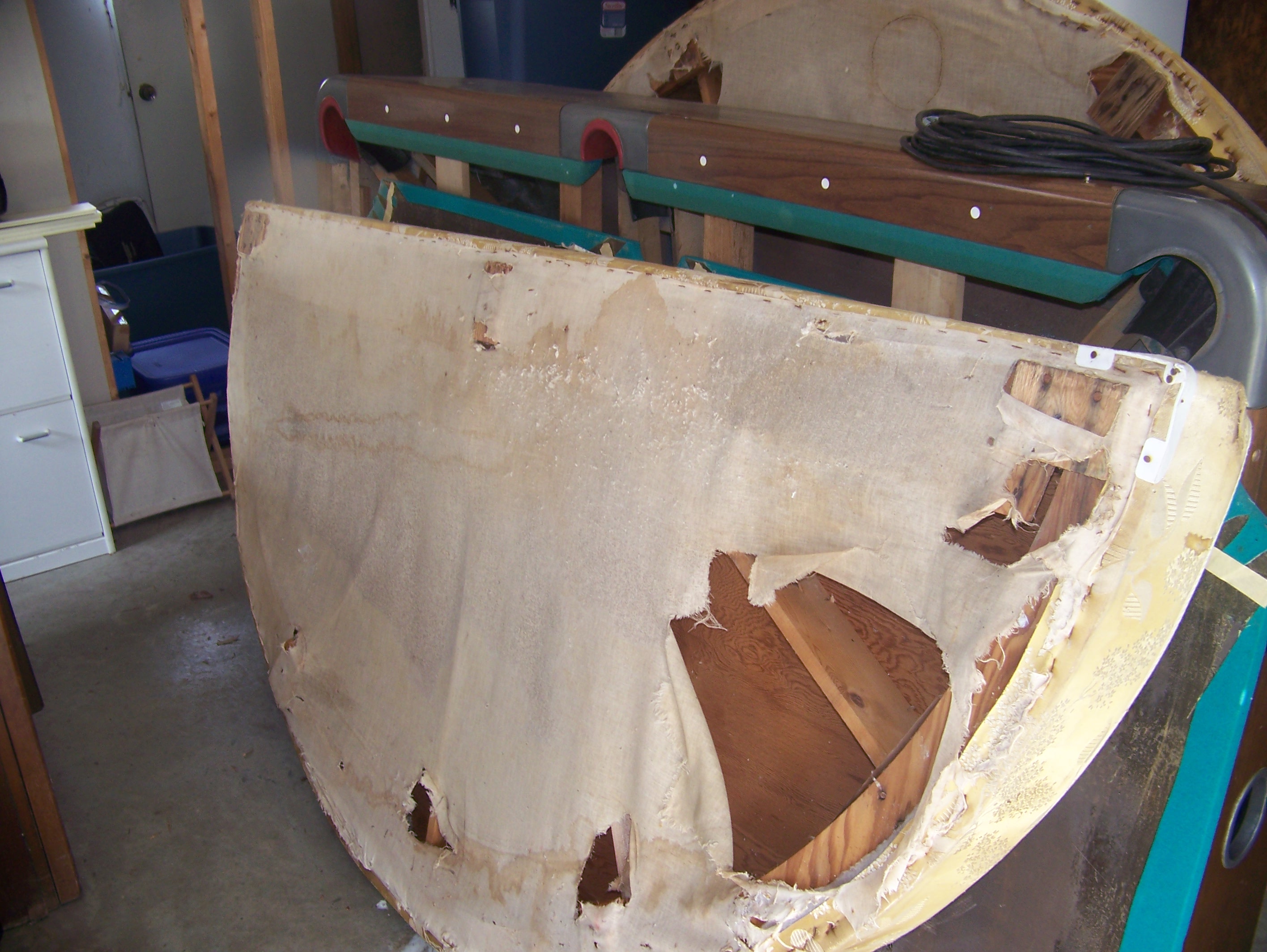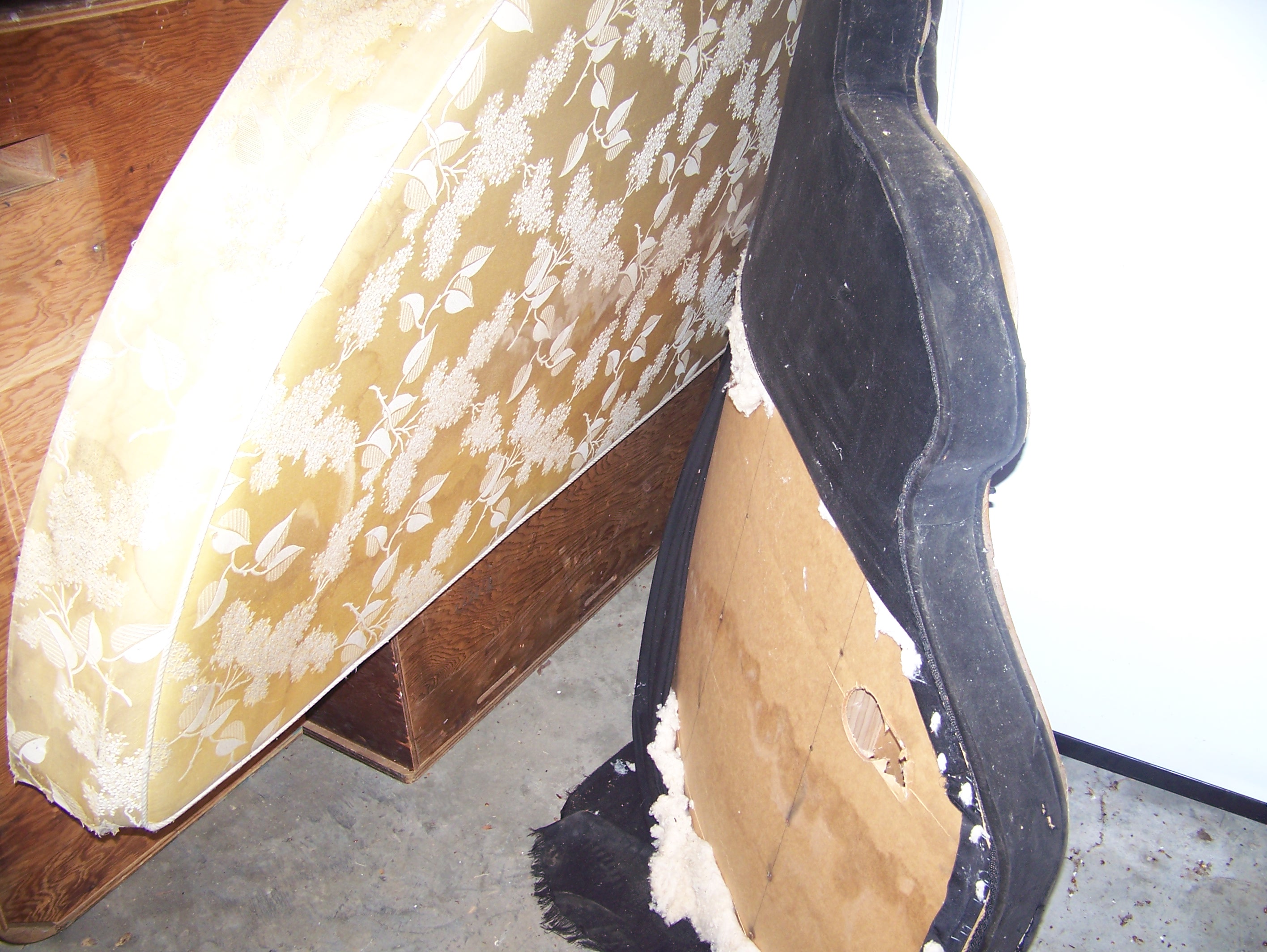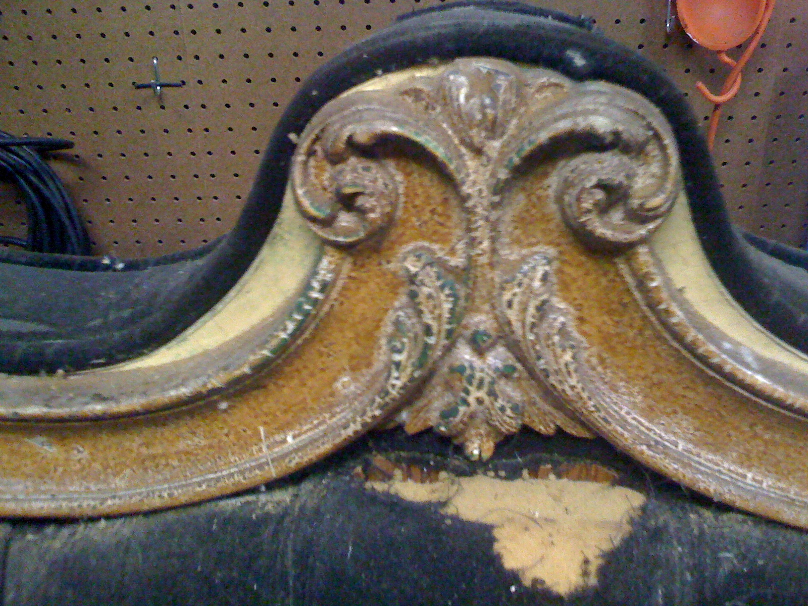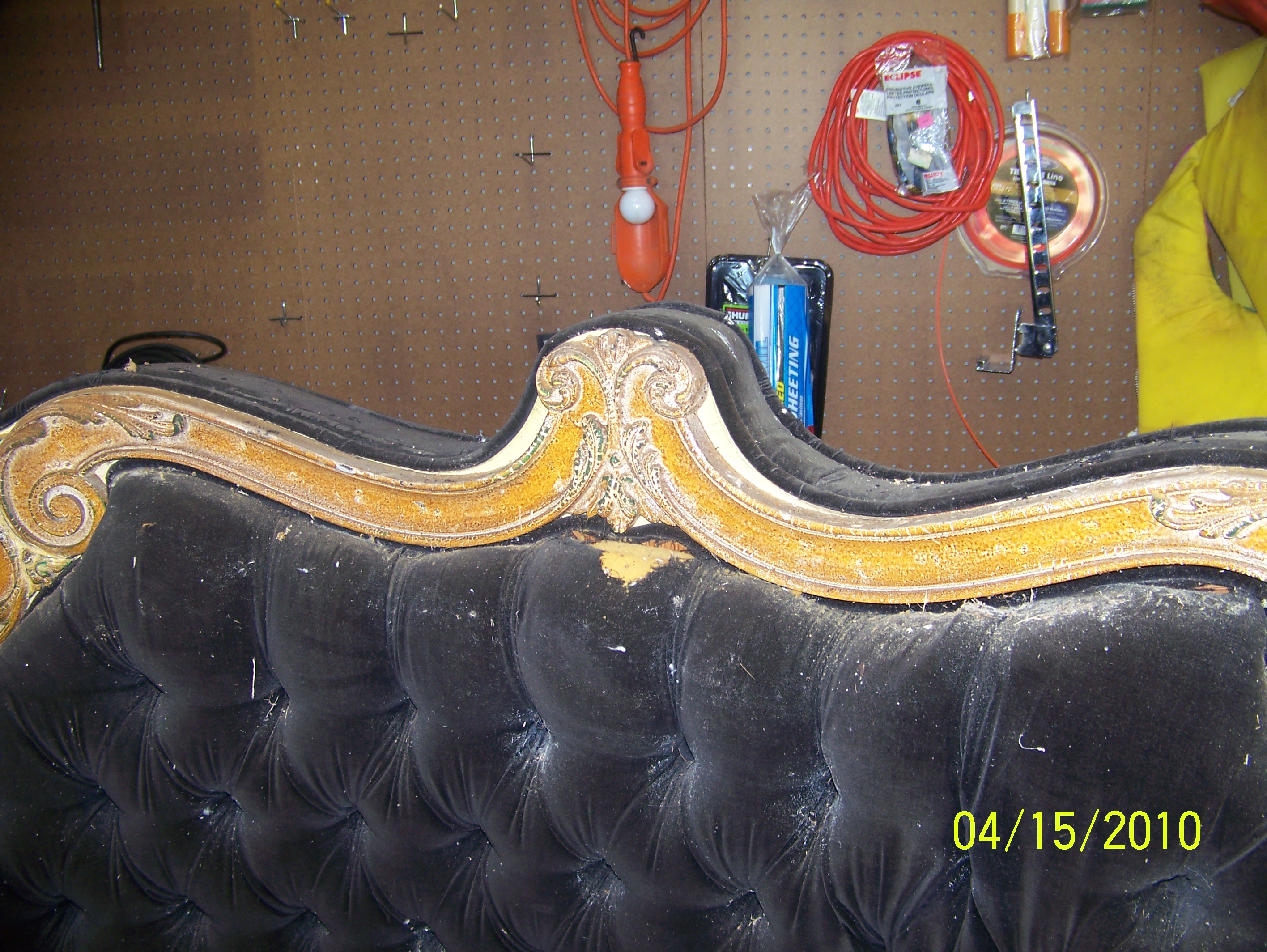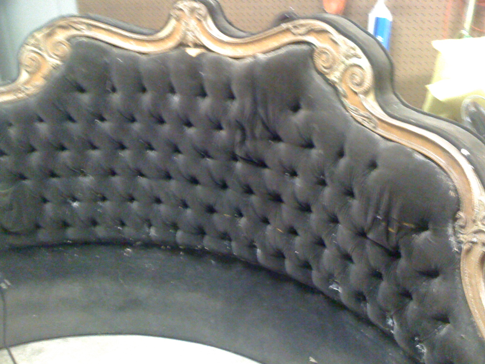 This is a rounded tufted upholstered headboard for daybed wood trim. It comes with 2 half moon mattresses that are stacked for daybed seating/lounging. And for night you can lay mattresses down flat to form a circle, It was a very unusual piece so I brought it home.