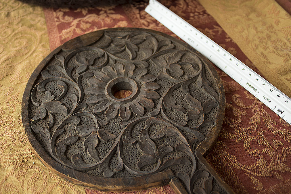 I have what I believe to be an antique hand-carved rug beater, but it has a unique shape, with a much larger round beater area than most. (See Flickr link below for front & back images.)