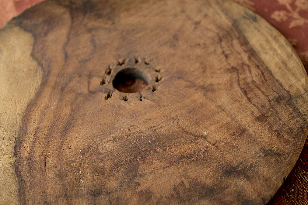 There are small holes around the circumference of the circle, which once held wires. The cross-section of irregularly square-cut wires is still in some holes. If it is a rug beater, I would assume it originally had looped wires on the outer edge to increase the beater’s efficiency.