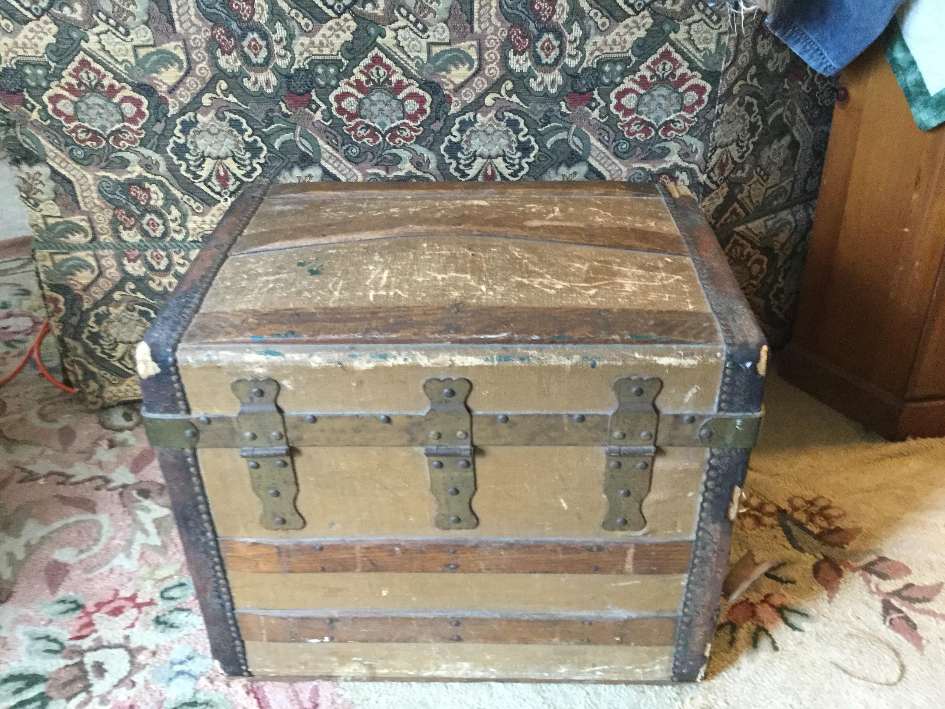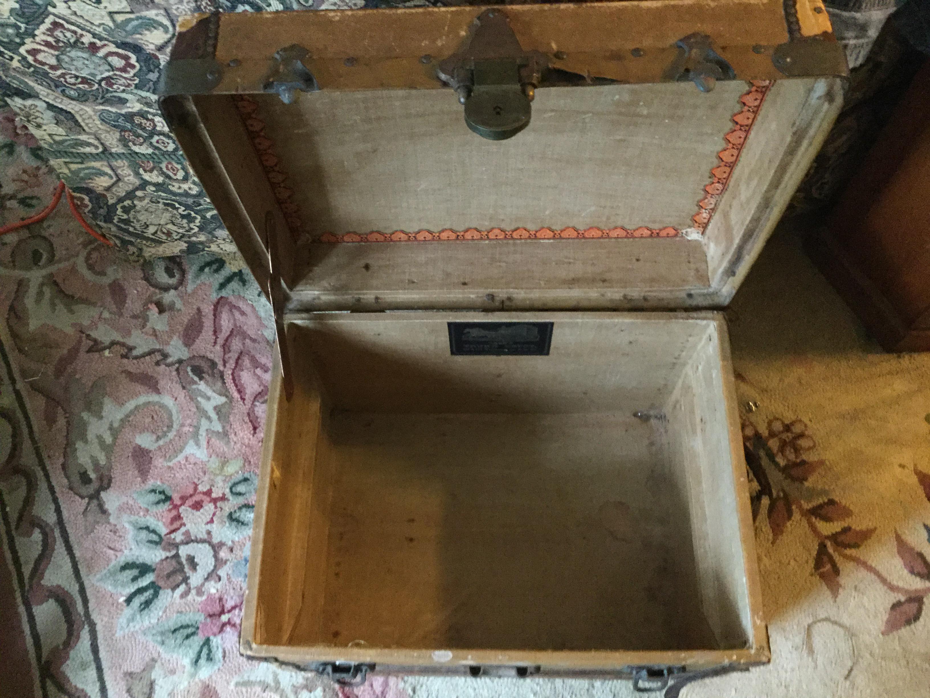 I am I’m possesion of a Sace’s Trunk Depot trunk and I am curious to know how much it would be worth. The condition of the trunk is poor. The leather on the edges of the trunk have freyed and it is all around pretty worn. One of the leather straps on the side had broken off and the other has been torn. The removable box on the inside is in good condition but the flap with a pocket on the front has come unattached from the trunks inside.