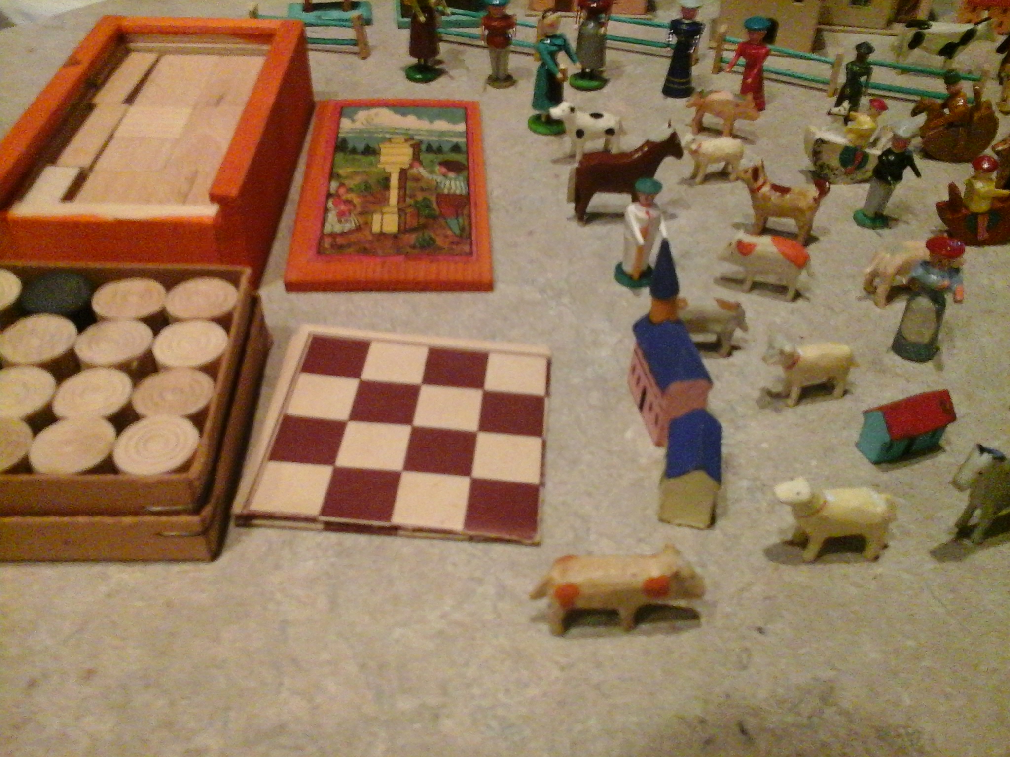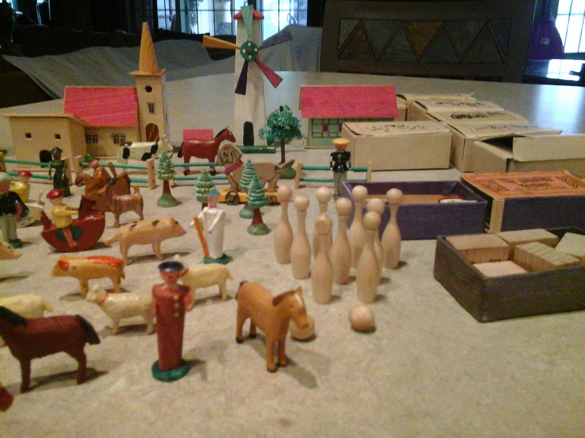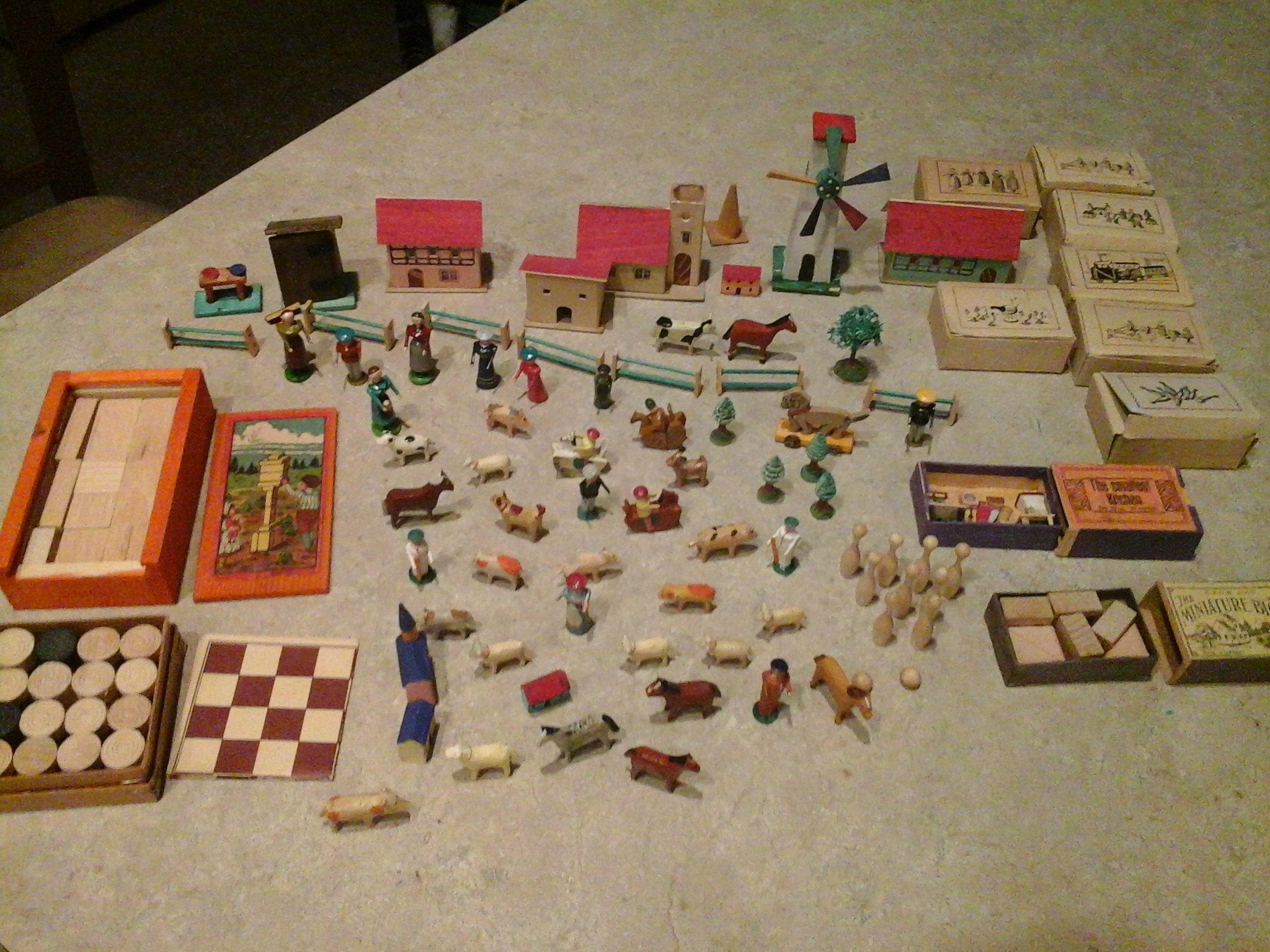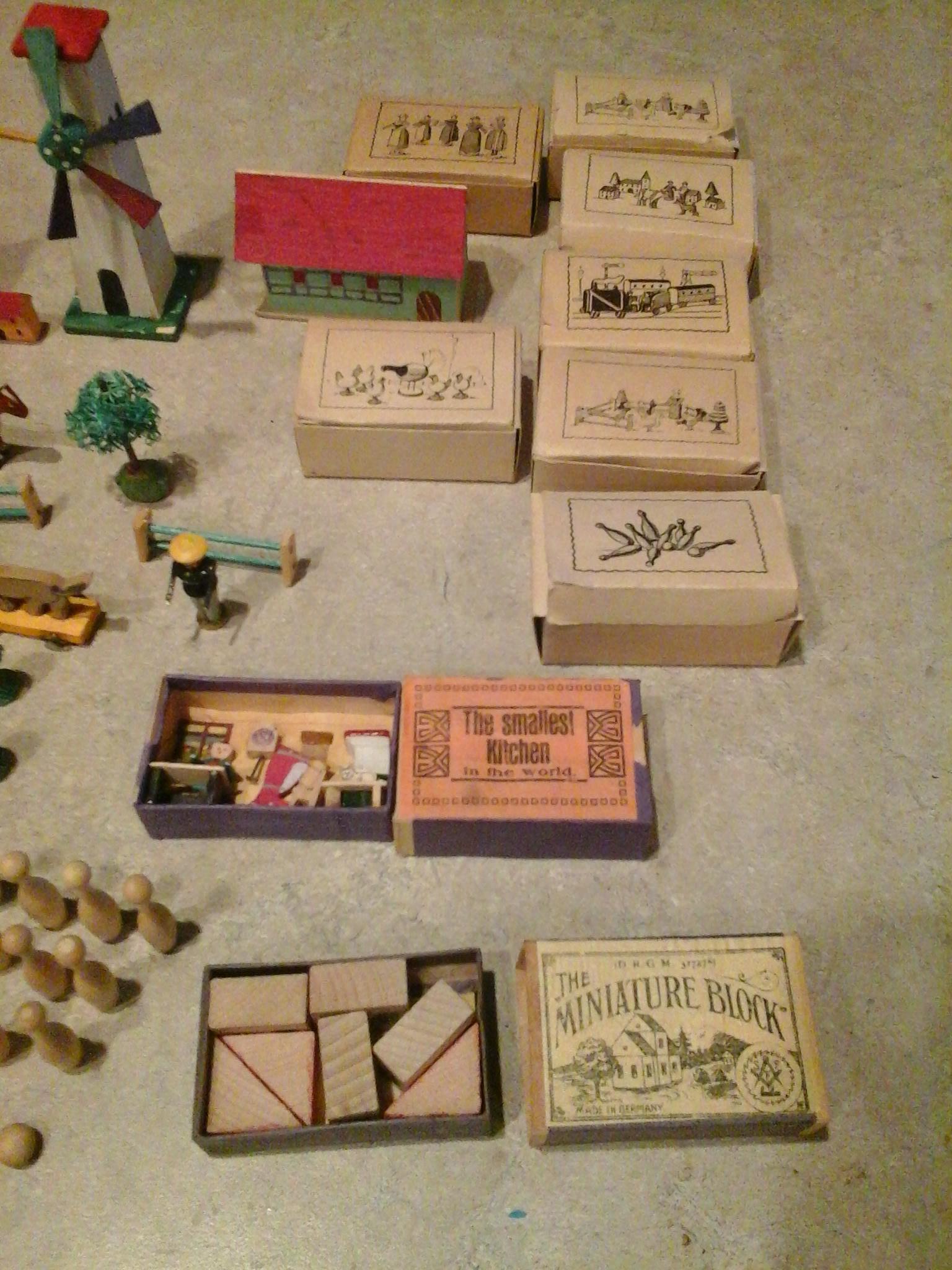 Not exactly sure what I have here? Purchased these at a local auction!! The original box these came in is from Germany and says that this is a sample package (CHILDRENS TOYS MANUFACTURED FROM WOOD). Also says small wooden toys from the Saxon Ore Mountains in return for american help!! Any additional information or possible value would be greatly appreciated!! Thanks
