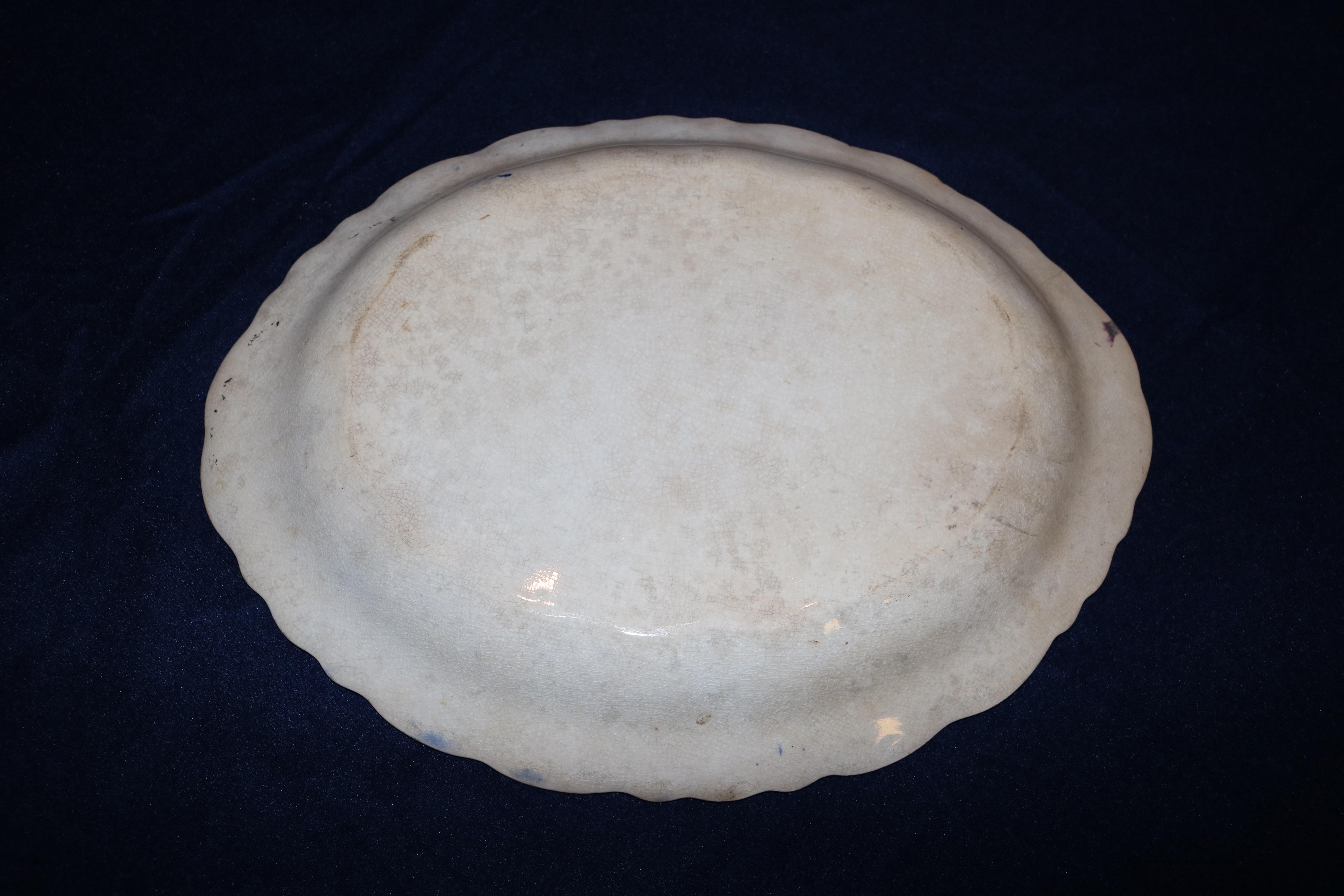 Most of these fish platters are European and date from the third quarter of the 19th century. The unmarked examples sell for less than those by well known makers. We'd retail one like this for about $125.00.