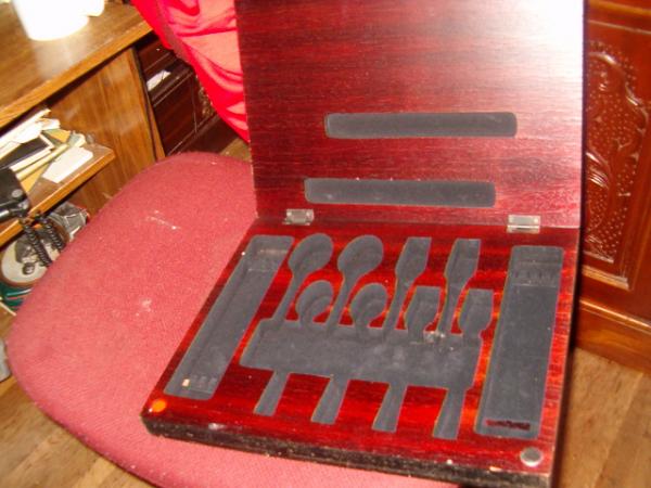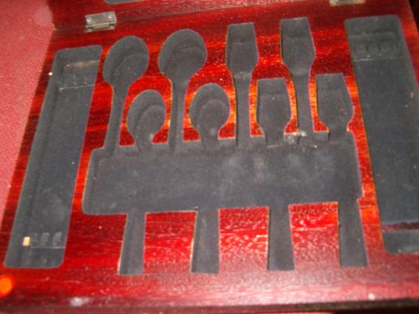 I don't know much about this box,but it appears to be a salesman sample,has places for silverware,box has reddish looking wood,I've had this box about 6 years,I don't remember where I got it,hope someone can tell me what this box is or maker.