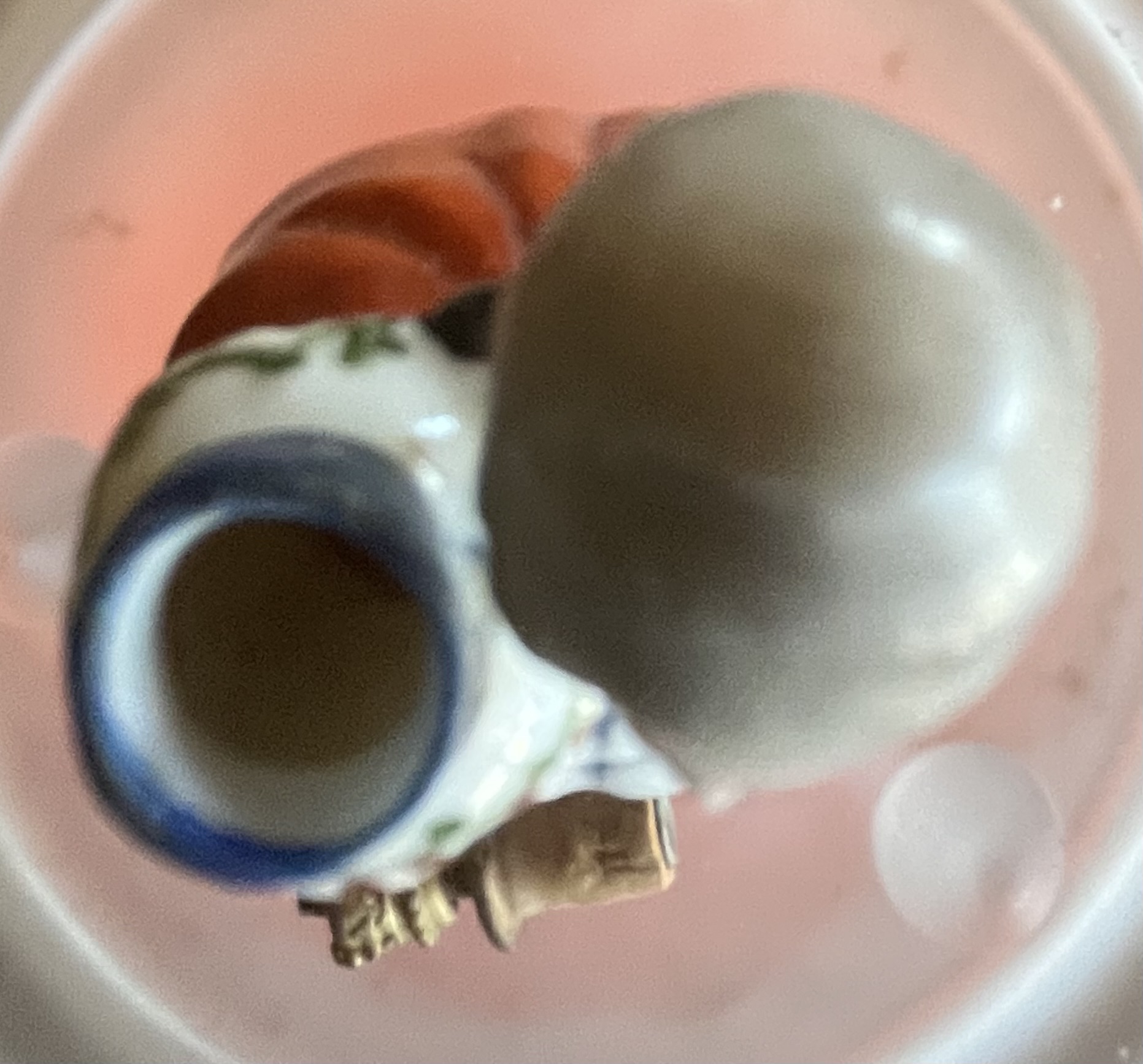 Historical Context: While the exact maker and date range are not specified, porcelain scent bottles like this one were popular in the 18th and 19th centuries, often produced in Europe, particularly in Germany and France. These decorative items were commonly used by the upper class to hold perfumes, reflecting the social customs and fashion of the time.