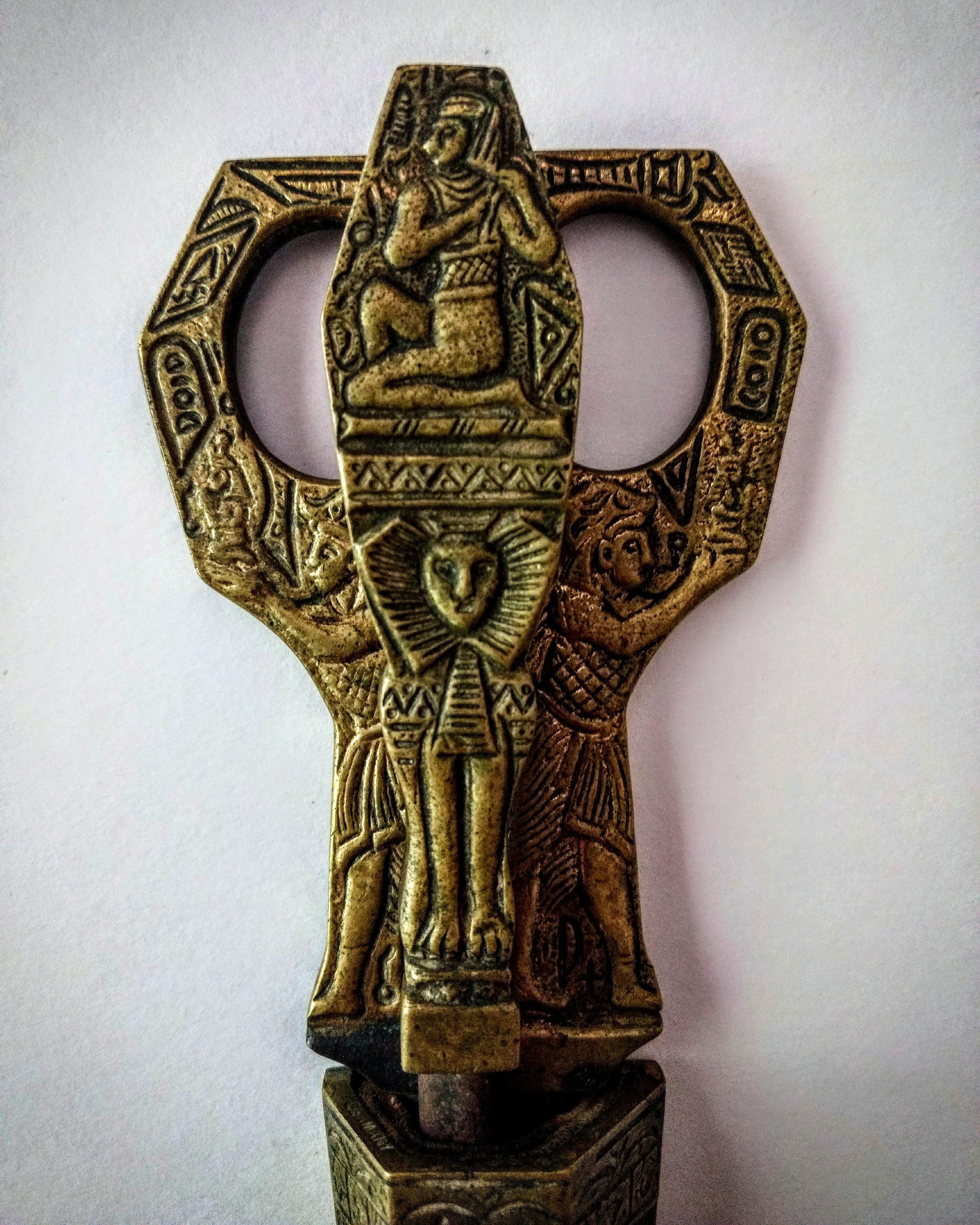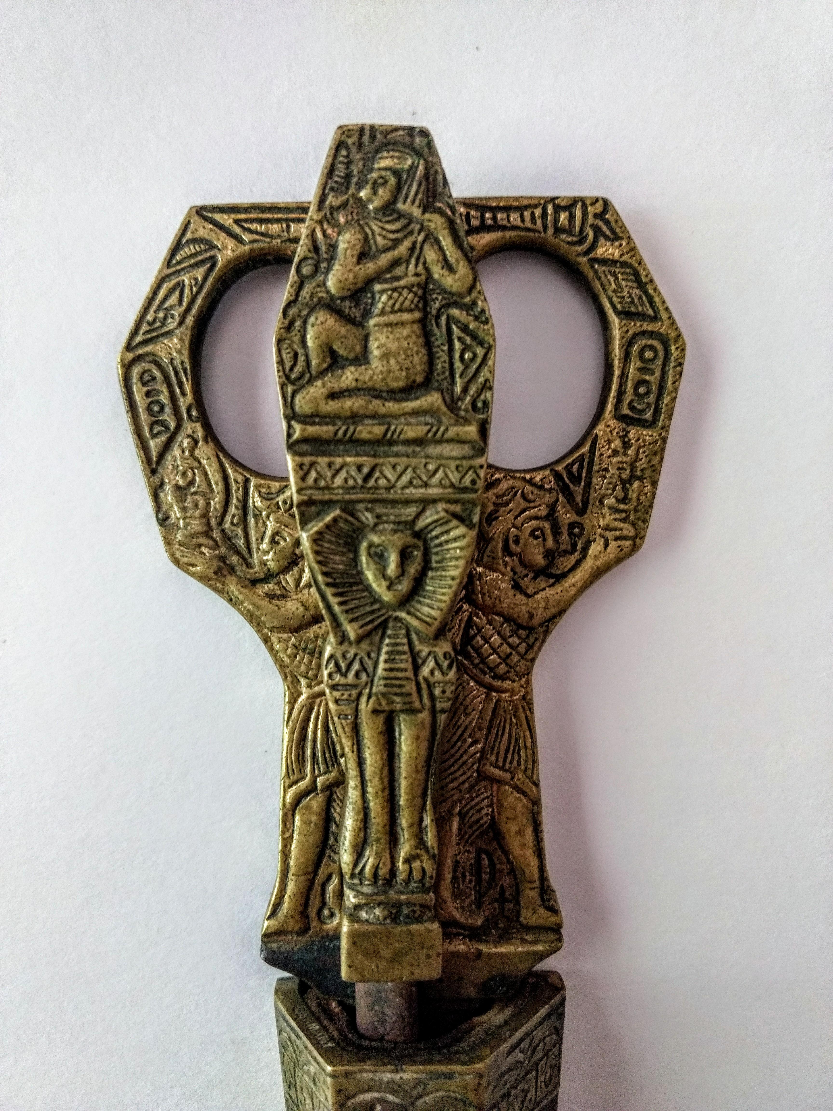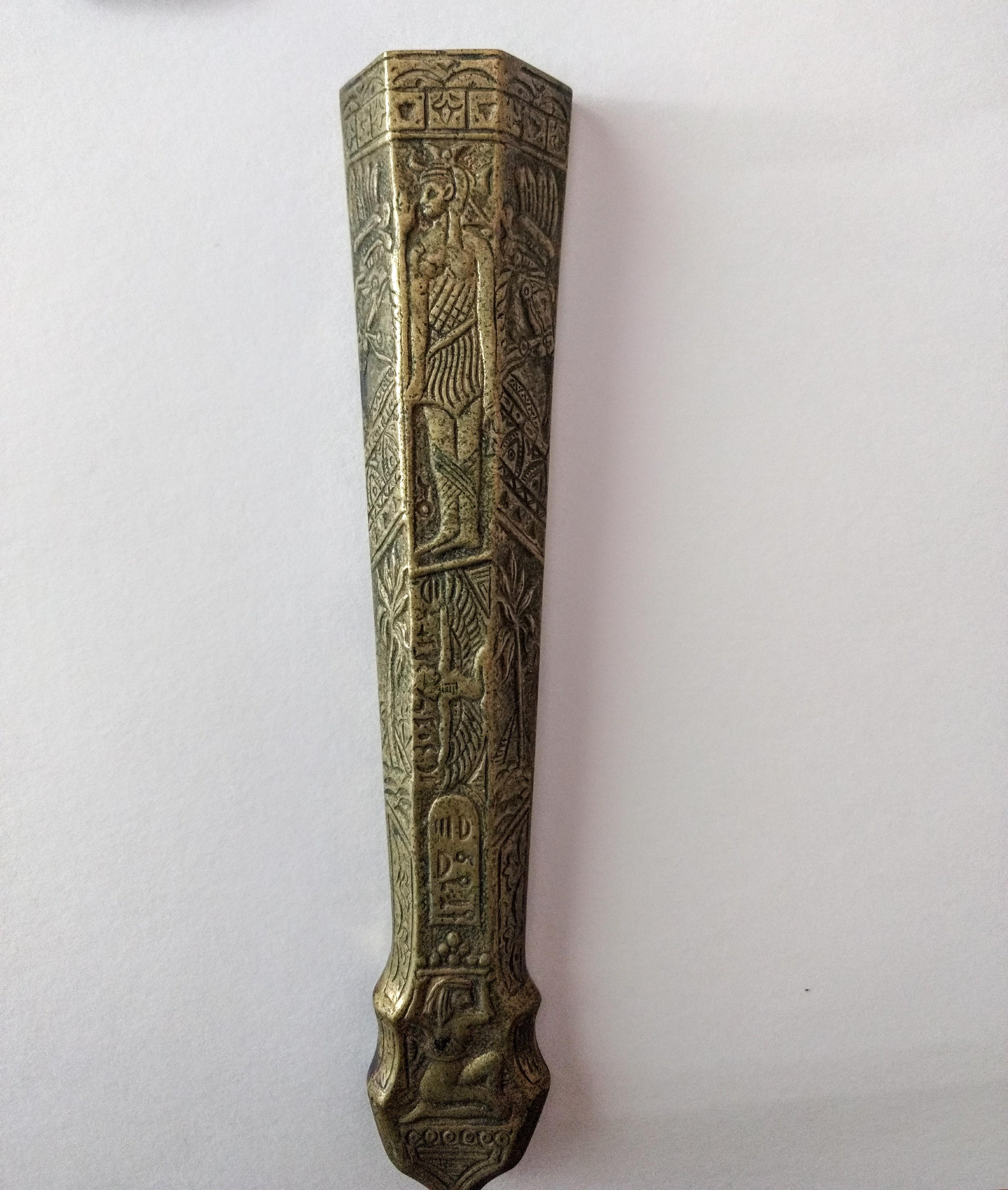 They are brass with a steel blade. Covered in ancient Egypt styled decorations. They are marked Germany and Julius Hammesfahr