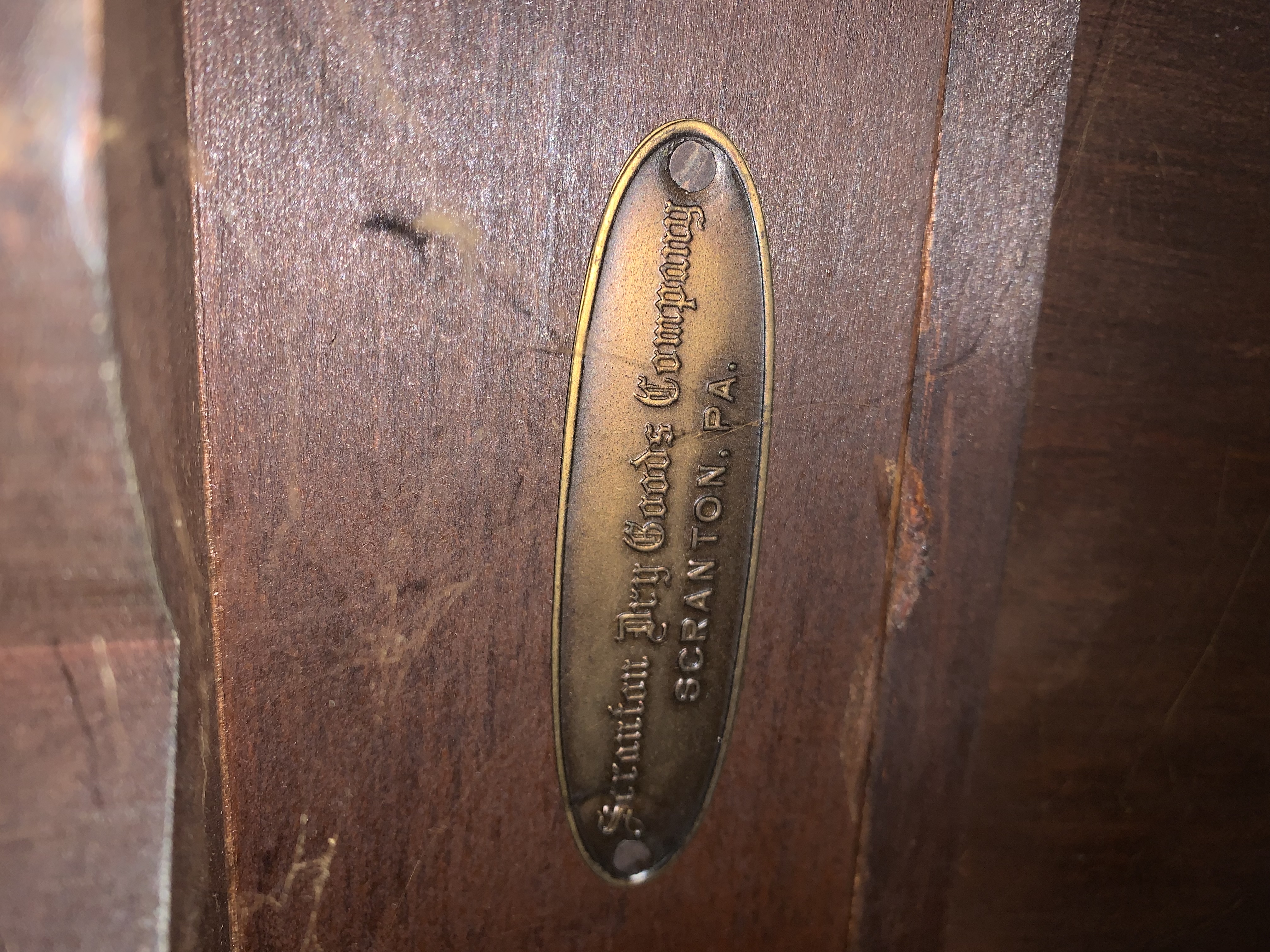 Antique secretary desk. In very good condition. Very few scratches or blemishes. Mark on bottom says ‘Scranton Dry Goods Store’.