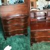 secretary desk . alot of carving . the legs are cabriolle with claw feet . two hair line cracks across front door through the engraving . but all is solid. claw feet on front and two straight on the back . all joints are dovetailed.