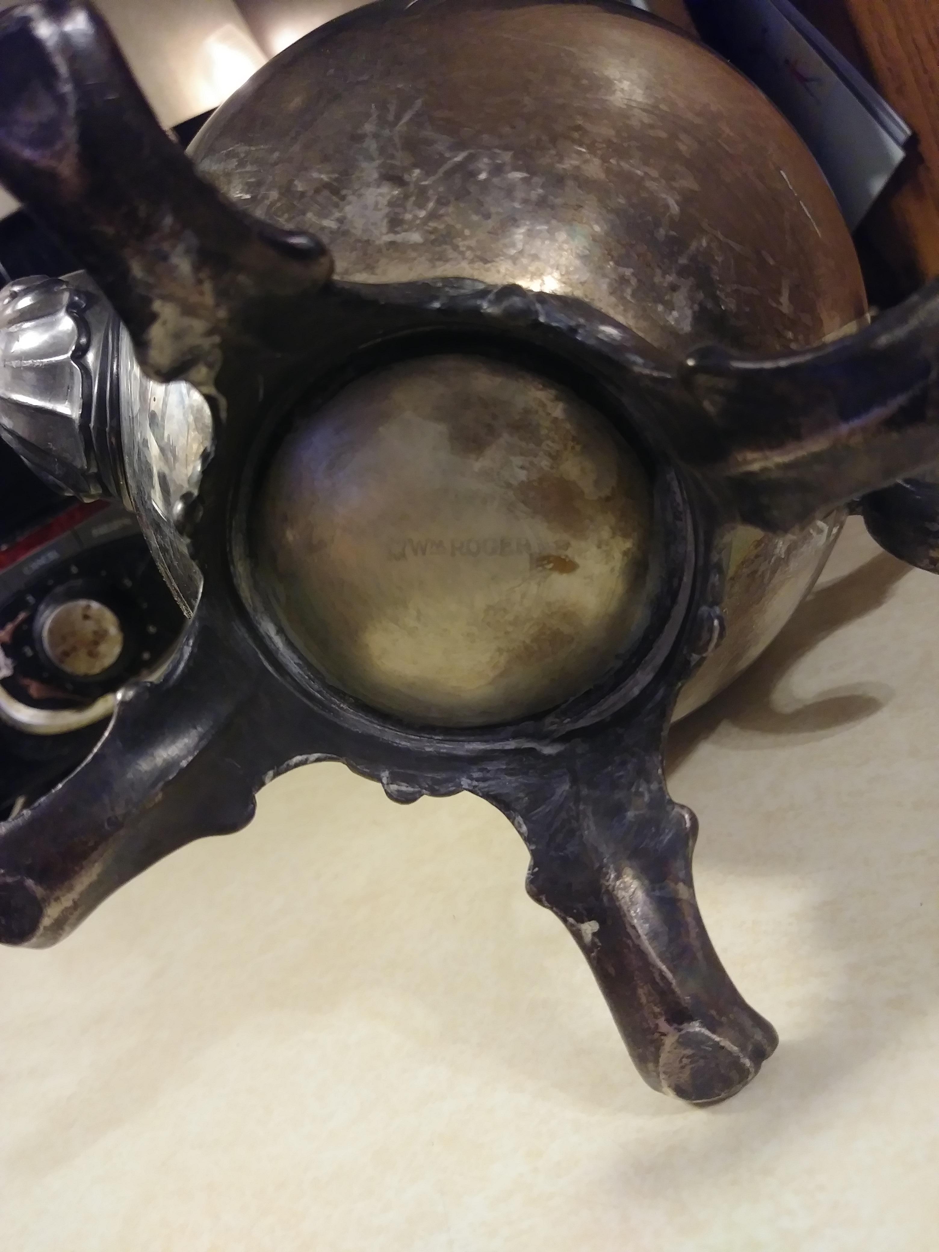 Can you please help? Please don't mind the "cleanliness" as I am unsure how to clean it since I am unsure what it is/made of, etc. The only markings I see are in the bottom: Appears to be a picture of an eagle then WM (the M is slightly raised with an underscore) ROGERS; after the last letter there is a star. If possible, I would like to know the approximate year this was made, location, if it is worth an money/current value, and if so, where I can possibly sell it. Thank you!