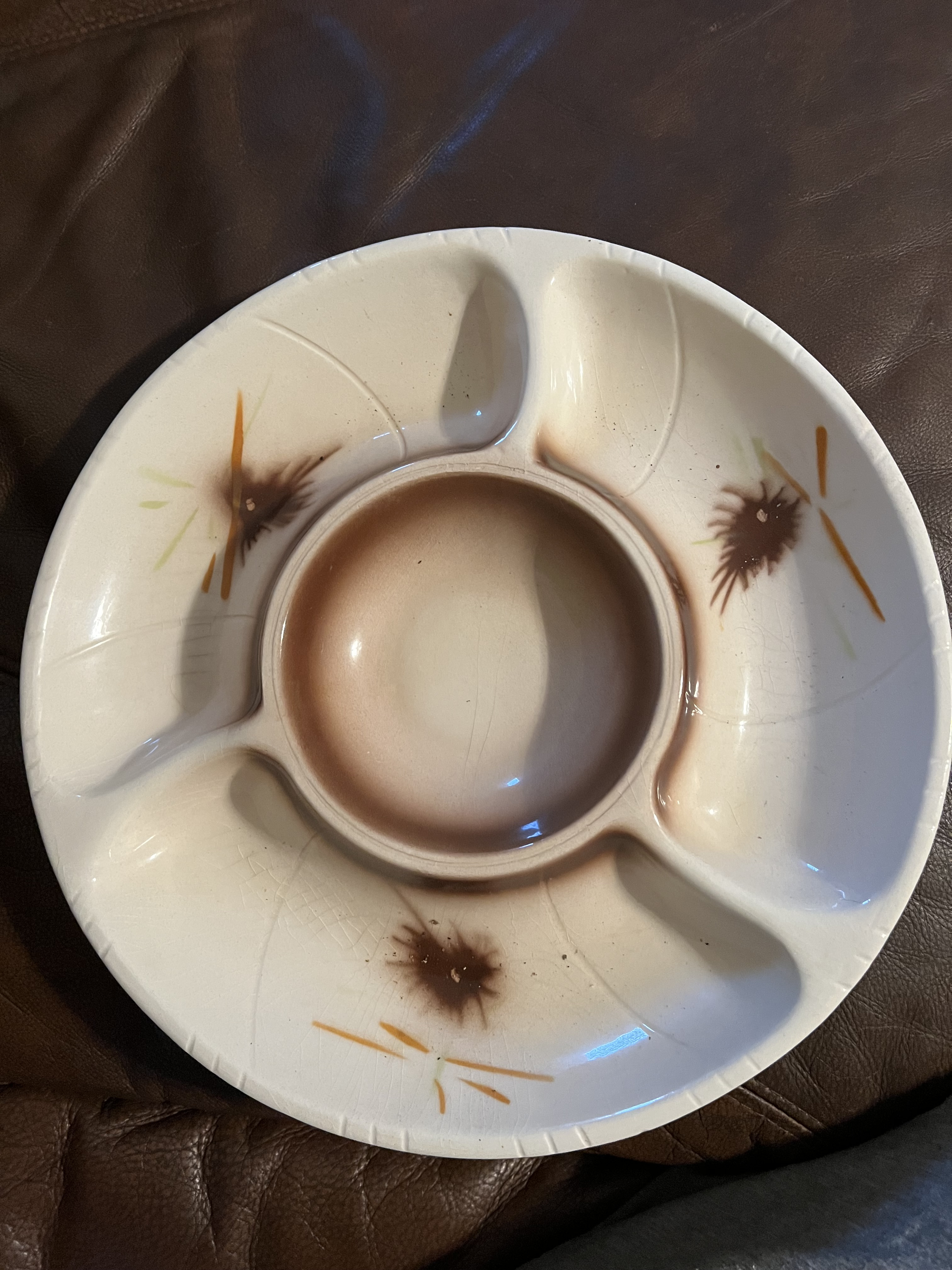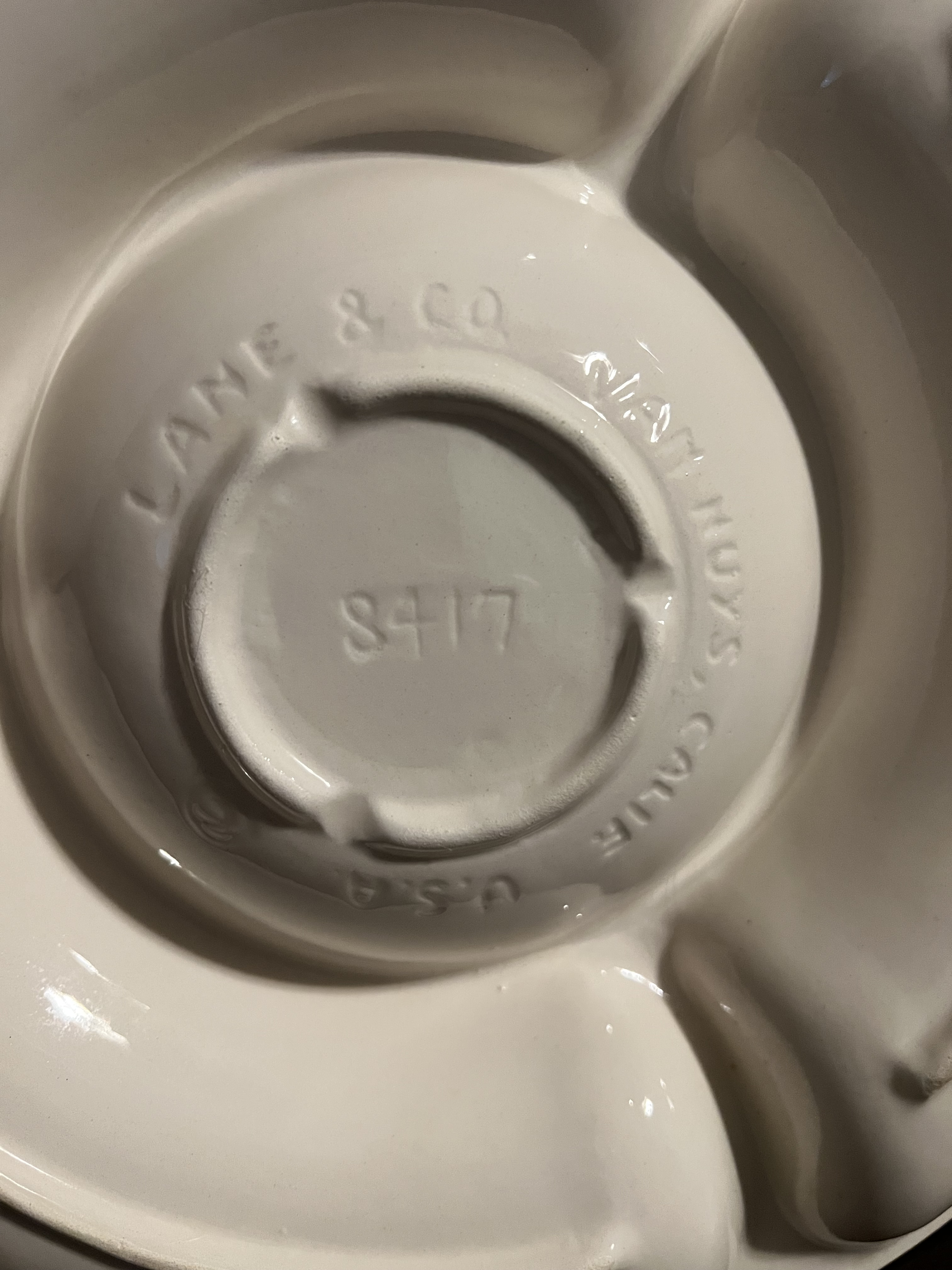 Antique Serving Dish. Made by Lane & Co. Dating to c. 1940-1960. Materials: Ceramic. Estimated value: $40 – $70. Condition: Very Good. The market for mid-century pottery is experiencing moderate demand, with prices generally rising.