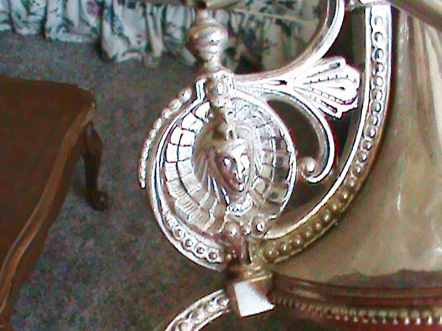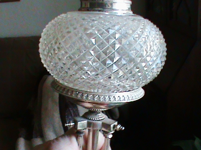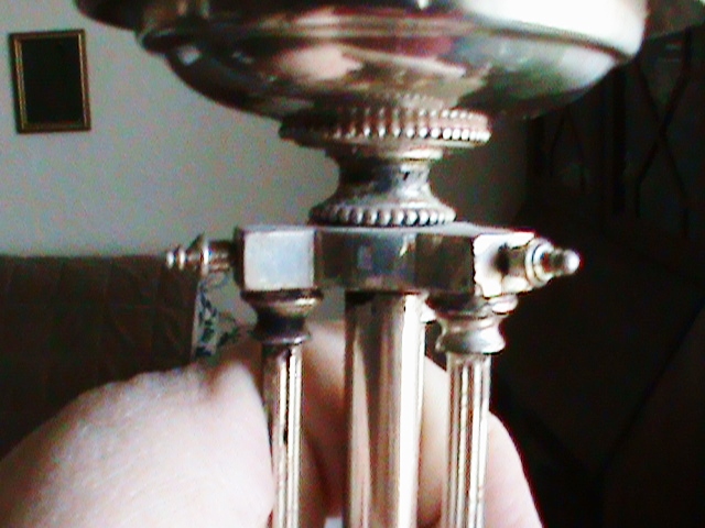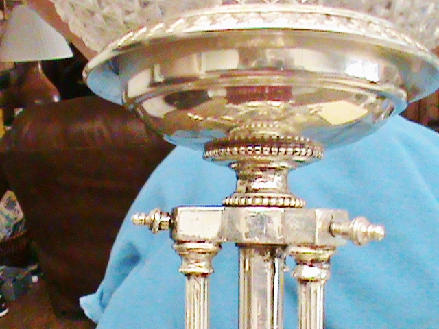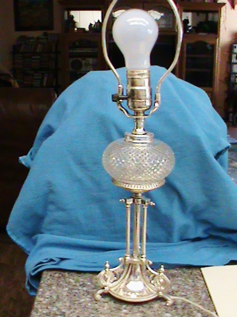 Beautiful set of sliver plate lamps. One works fine, the other's cord has been cut, but I am sure can be repaired. Shined them up with silver polish and everyting metail including the harps and finials cleaned up very nicely. Very intricate and ornate. The measure 19.25" from bottom to top of finial.