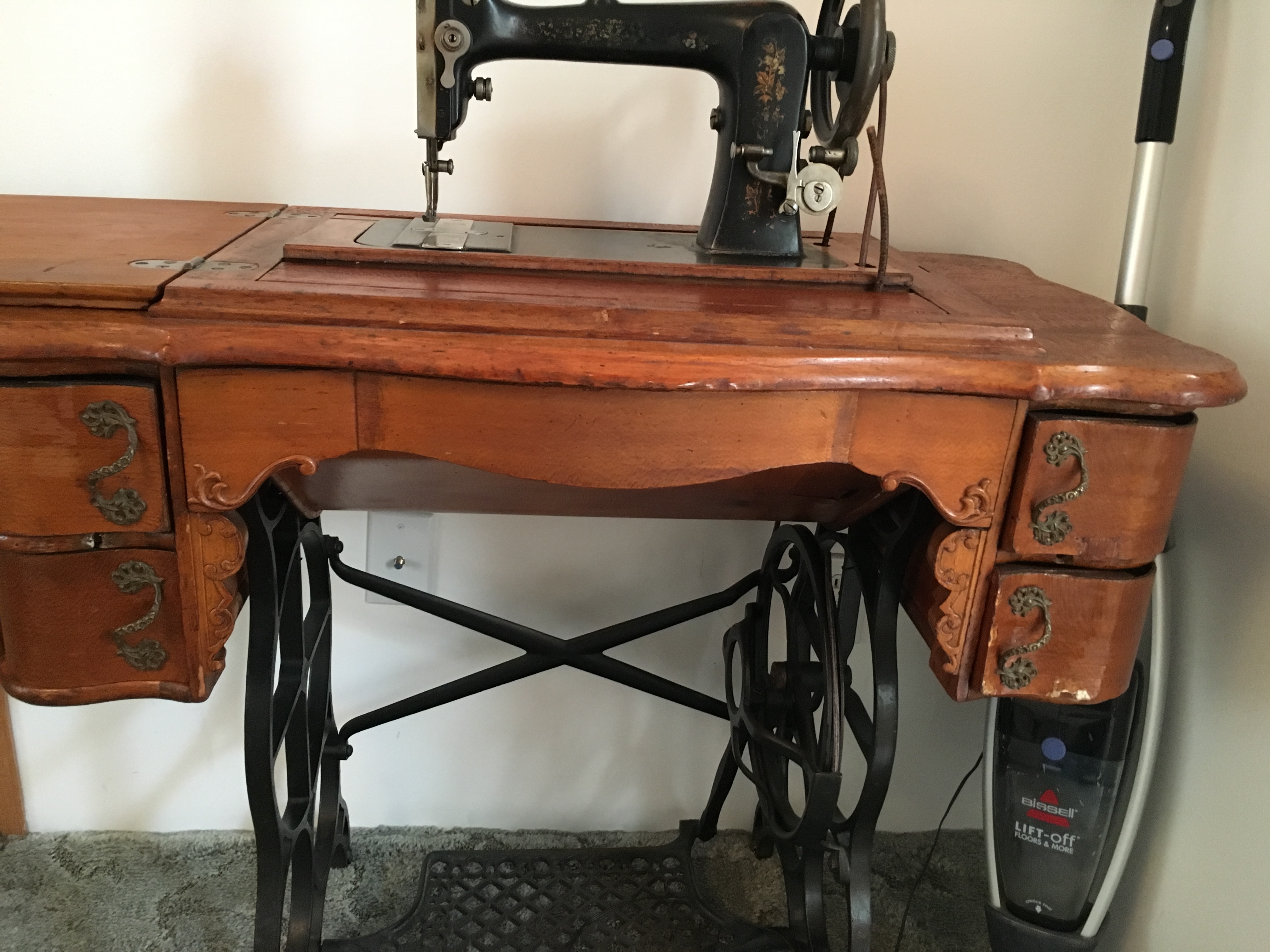 Davis Sewing machine in cabinet. Serial number 1015287