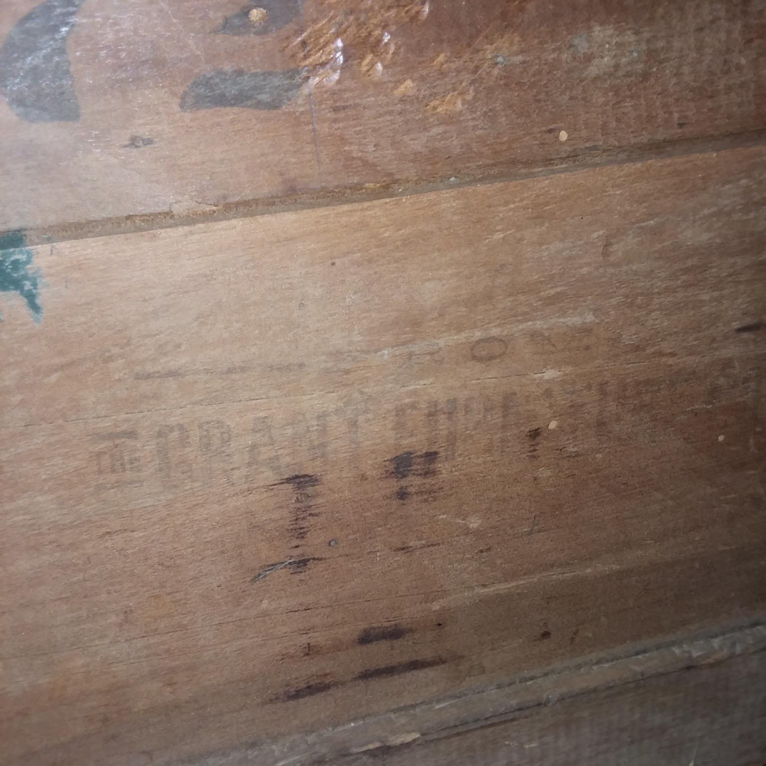 Table has Crescent Line Furniture and the number 172 and The Grant Furniture Co. all stamped onto the back of the table.