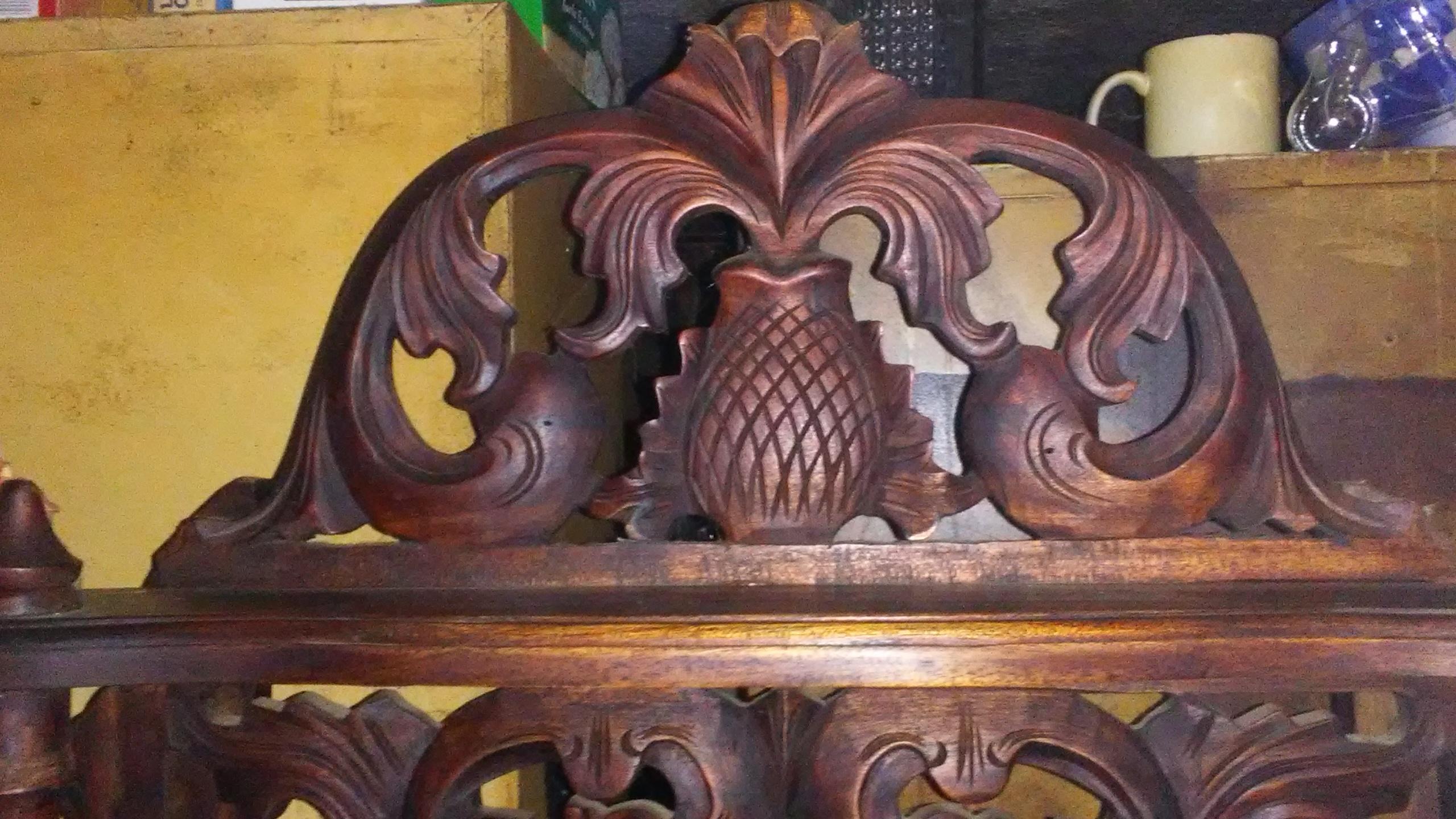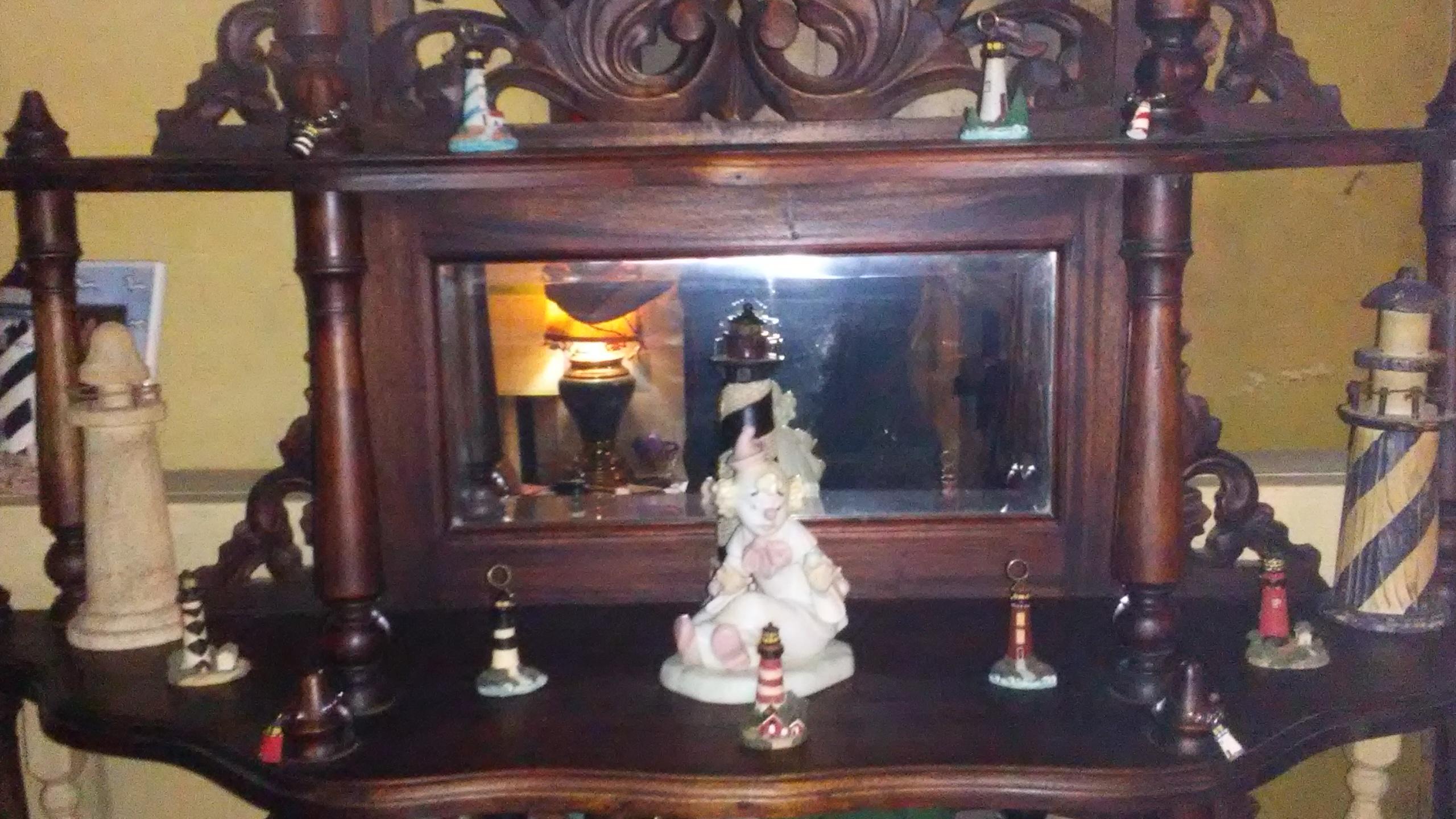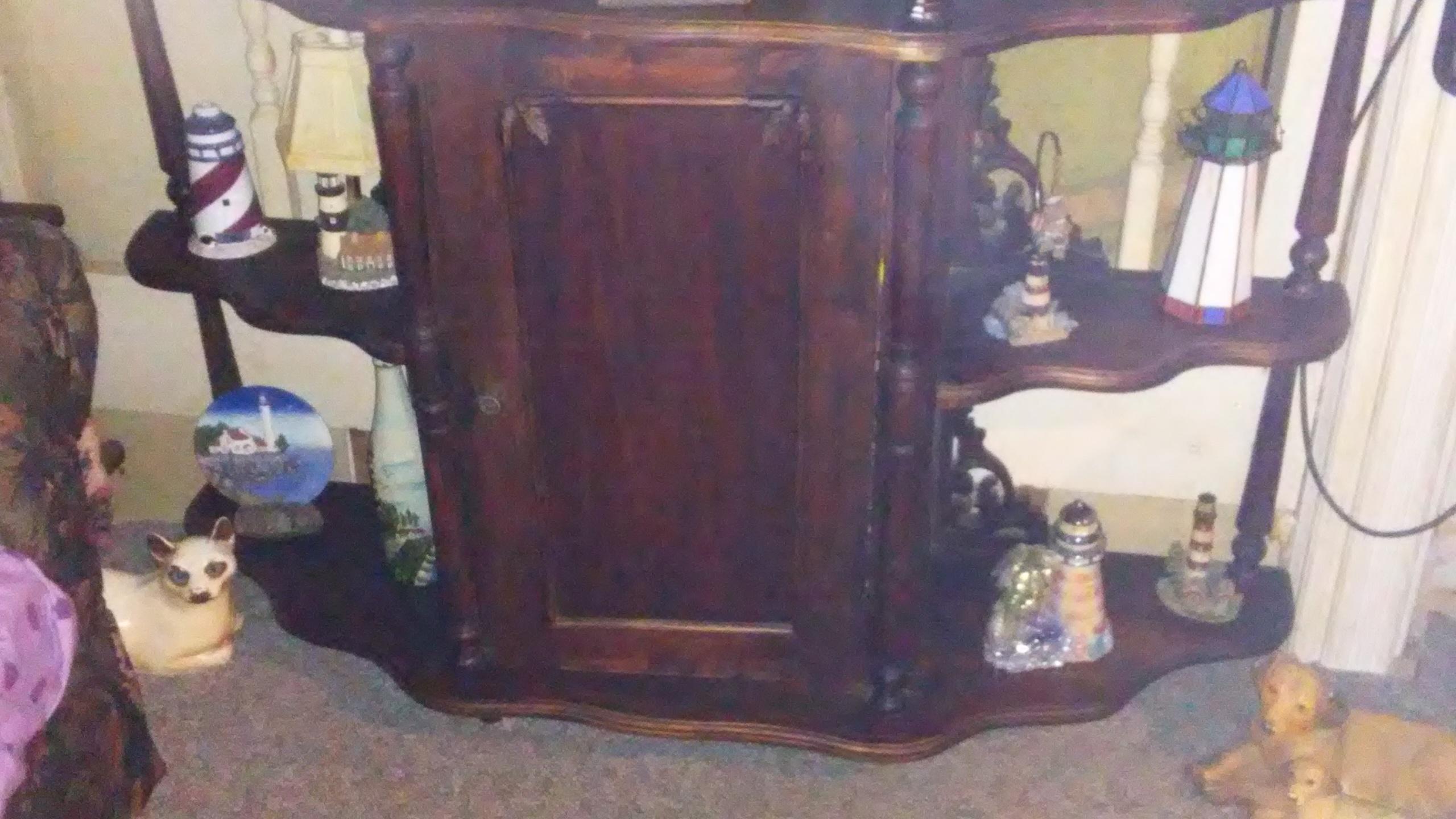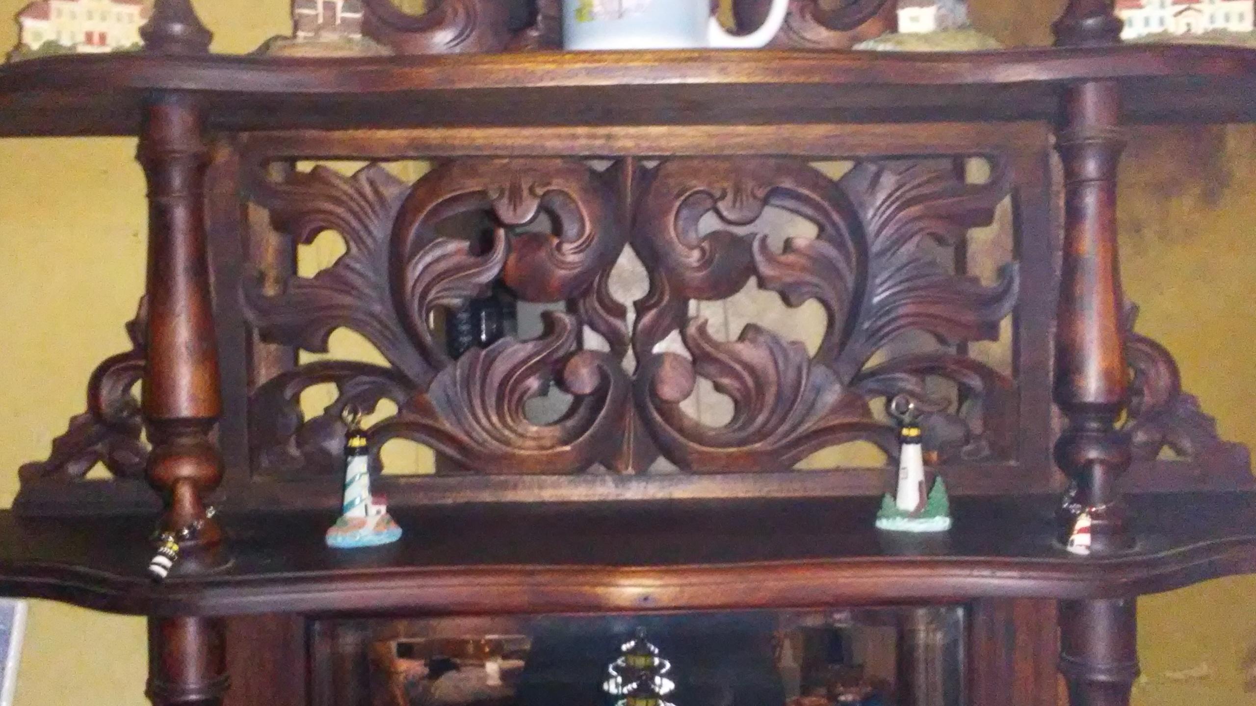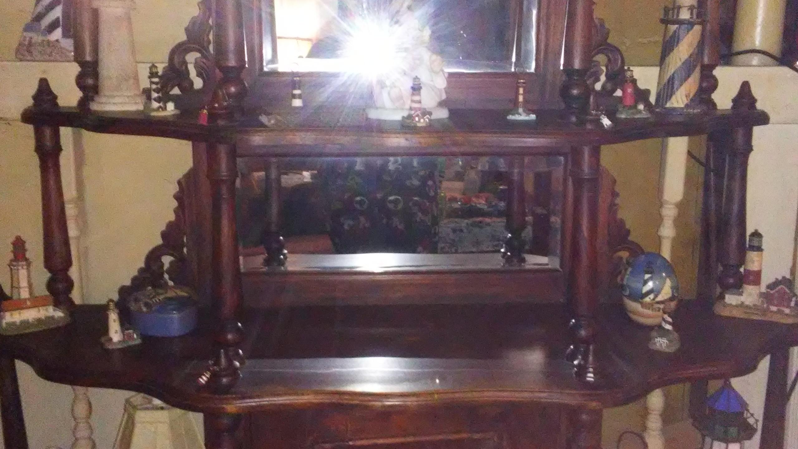 I bought this shelf from a friend a couple years ago for $200. Cannot find a company stamp or logo on it anywhere. Has beautiful, very detailed craftsmanship. Has never been refinished, original hardware and mirrors. Has a couple of flawed places but barely noticeagle. It belonged to my friends mother and she had when she was a baby. We believe it's at least 70 years old but not positive. I've been told the wood is teak by person and dark cherry by another person. Curious if anyone may know anything about this.