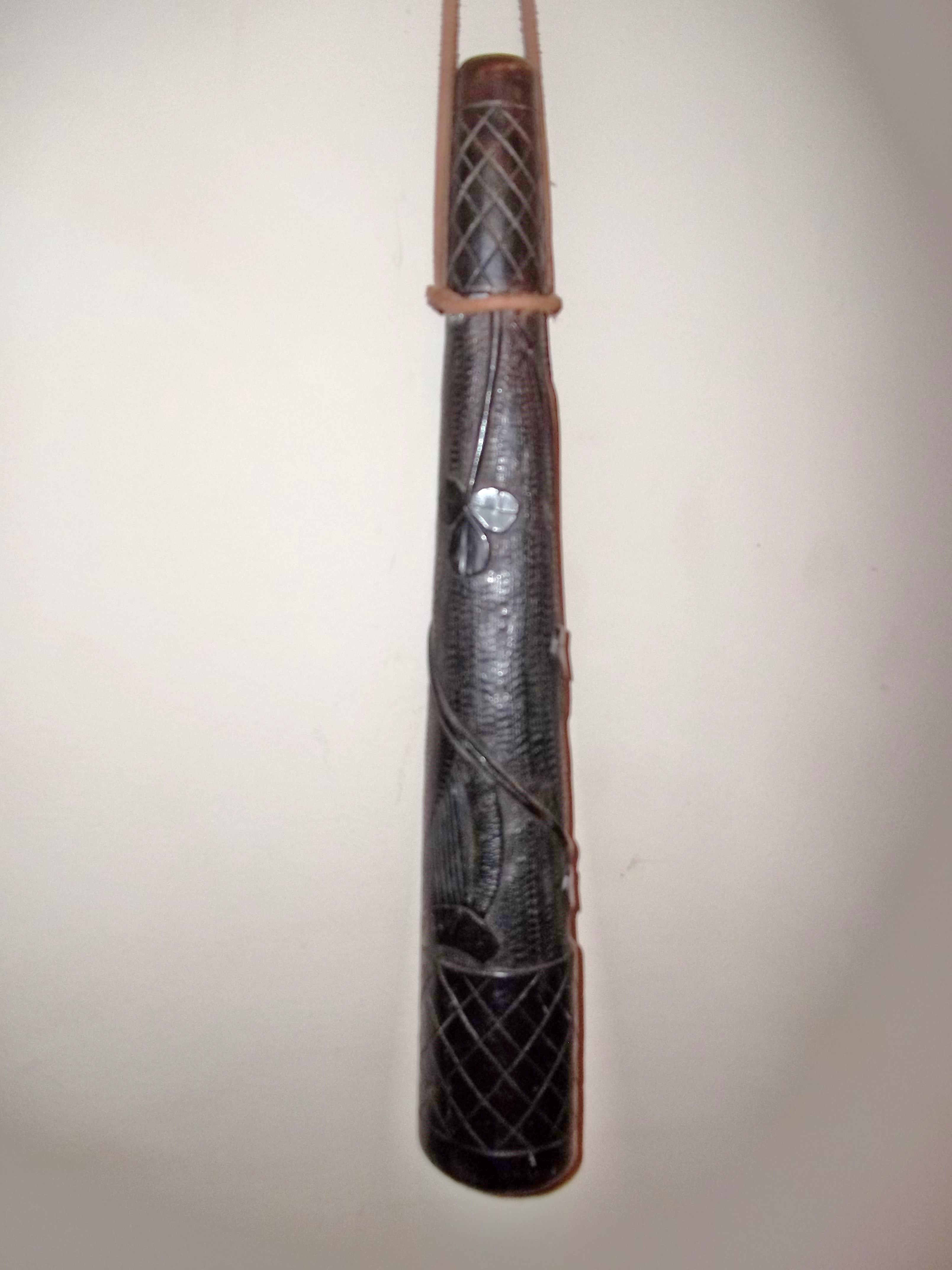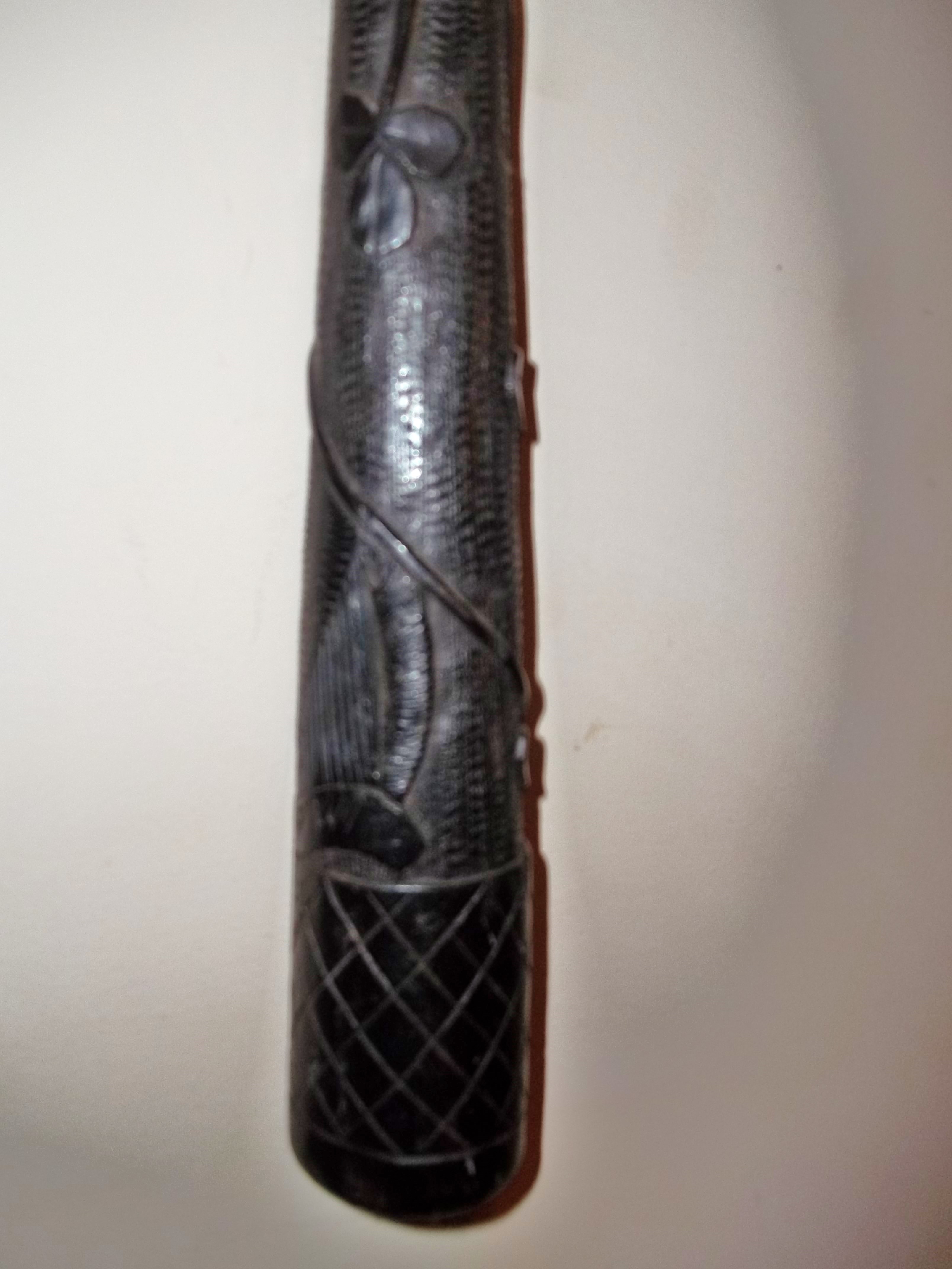 I am told this Shillelagh has been in the family for 200 yrs' It is made froma hard black wood and is carved with shamrocks.