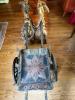 Full sized donkey Sicillian cart or carretti. 49 inches tall, 52 inches wide, 7 feet long with the shafts. The box is 37" long, 30" wide and 14" tall. Made in Palermo,We believe the scenes are the following" "Cristoforo Colombo before board of Salamanca 1486" and "First landing in the new world from Cristoforo Colombo" and"Colombos Egg" or "The egg of Colombos" and "Reception of Cristoforo Colombo at the court of Spain 1493" It also has written on it "fabrica de carri" and "corso vittorio emmanuele" Possbly an area in Palermo? (Our translations) The cart is in excellent condition, with very vibrant colors. A headstall, pad, and harness are with the cart, but show some wear, Very well made, it balances with the shafts straight out, nothing holding them up. We got the cart in the 1970's from a farm in Virginia.