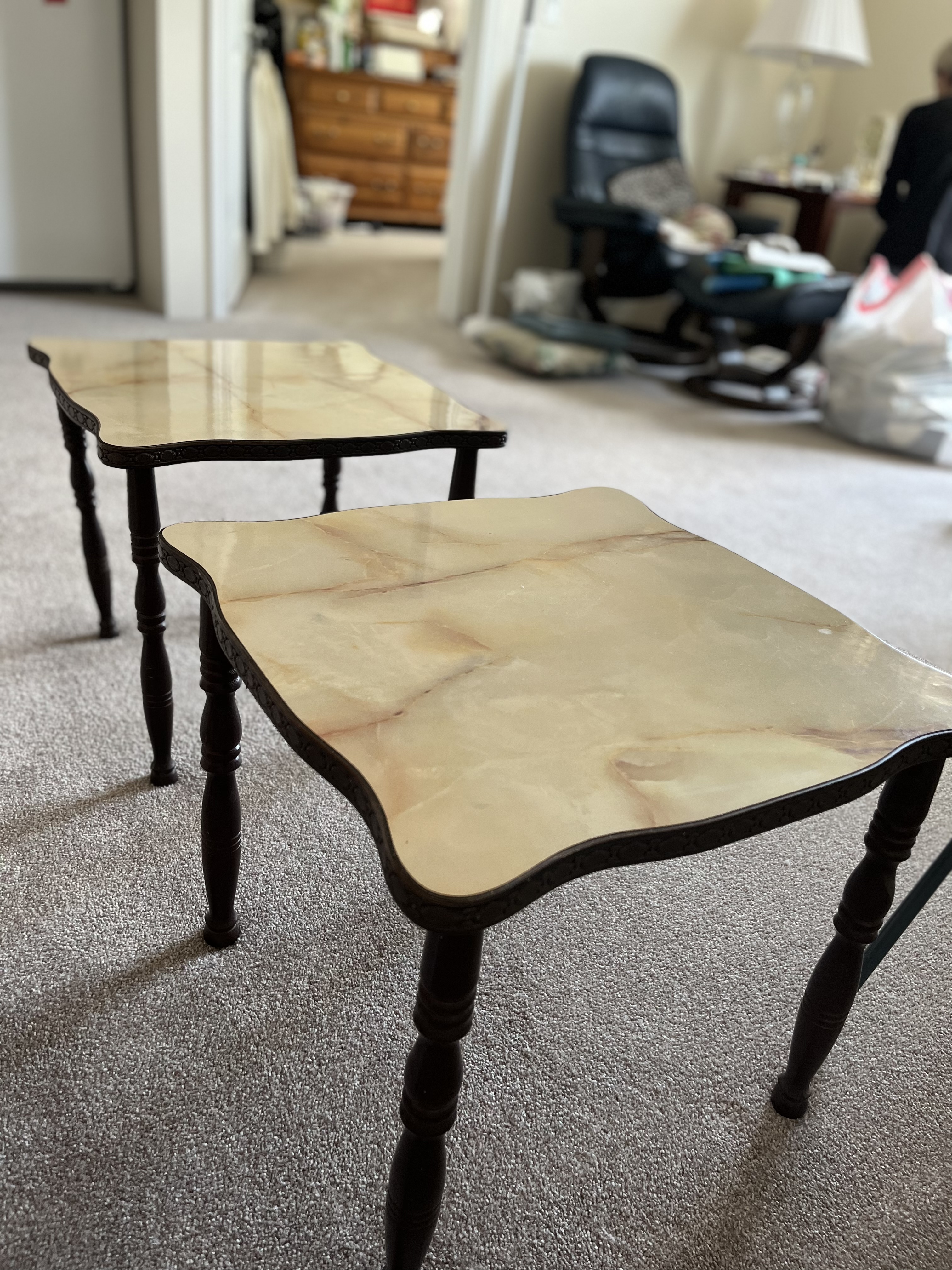 I have recently inherited these two side tables. The house was furnished in mid century modern design so I do believe these to be mid century modern. Although they aren’t marked. I was wondering if anybody help me identify them. Thank you!