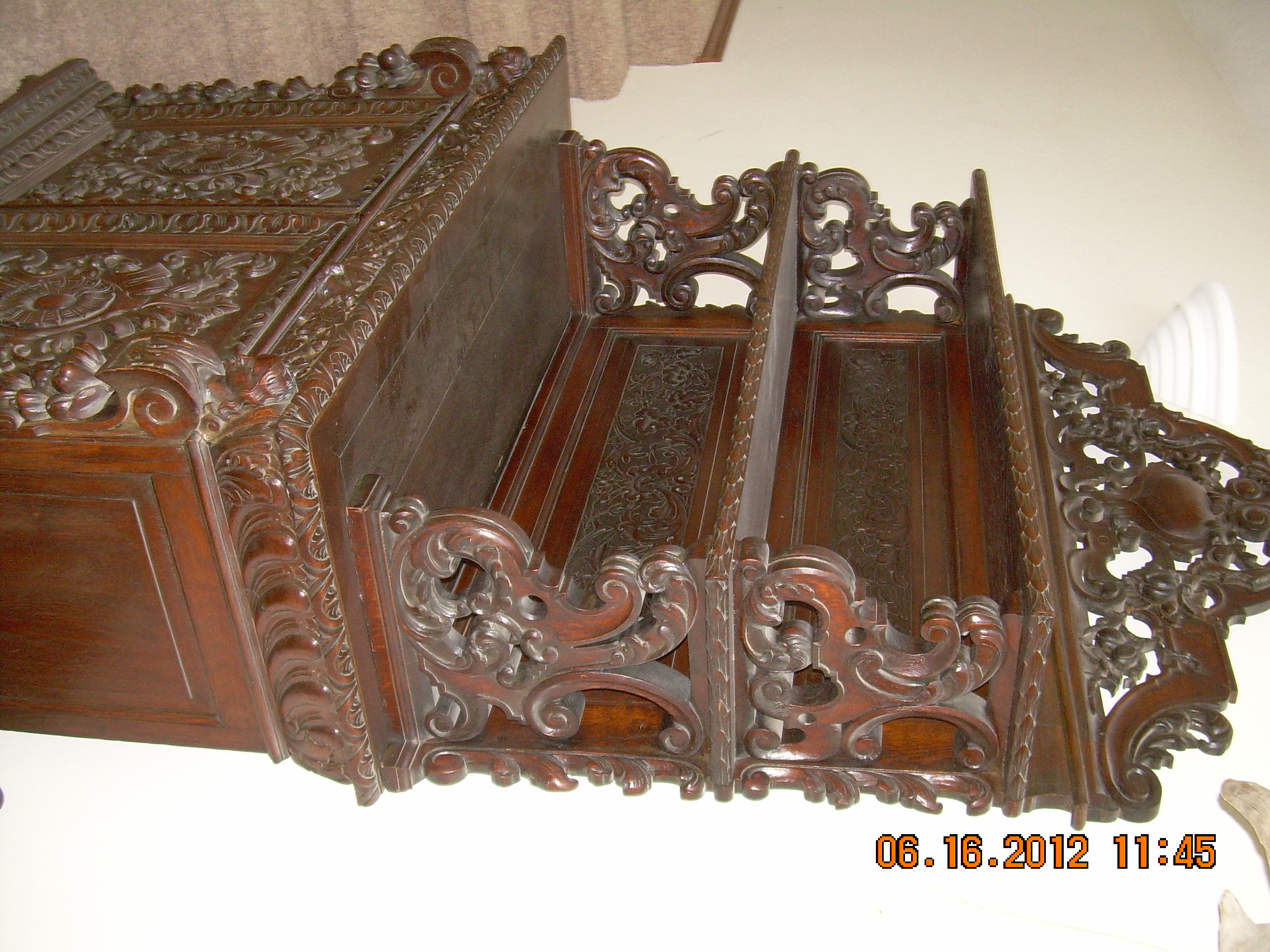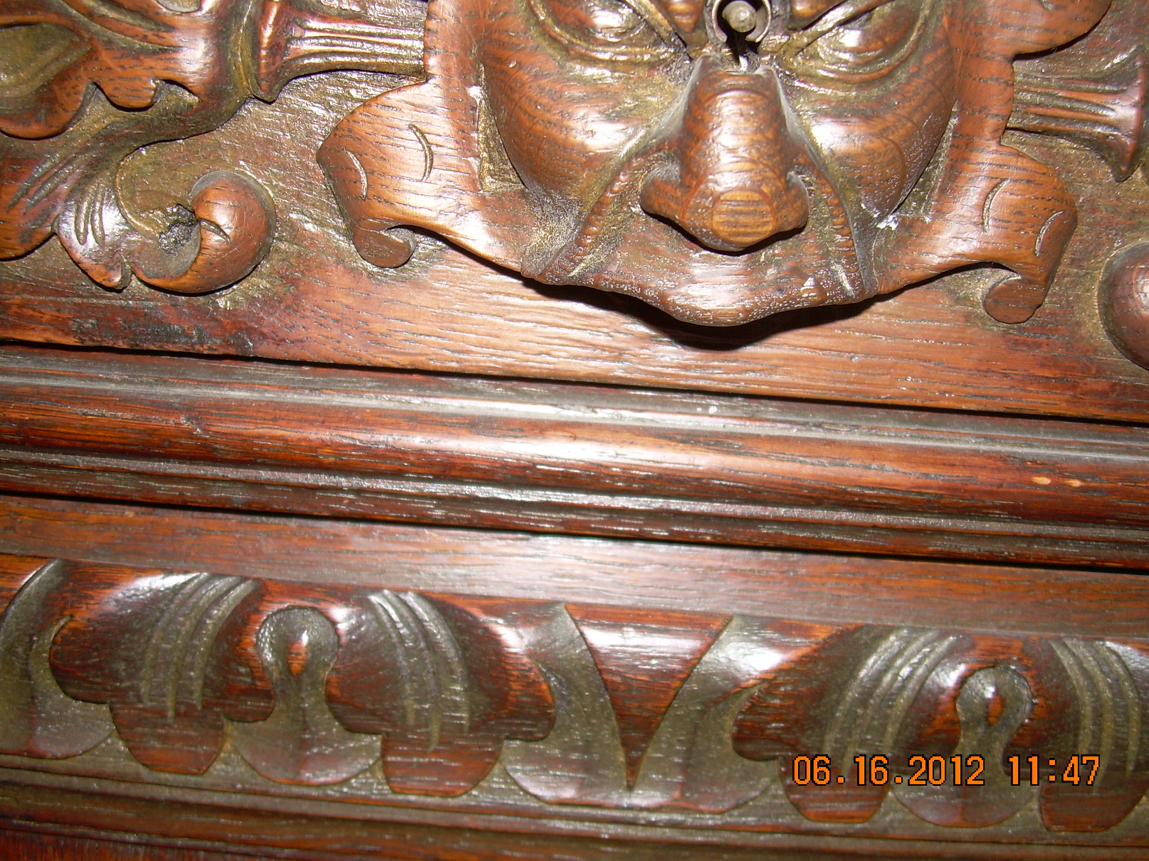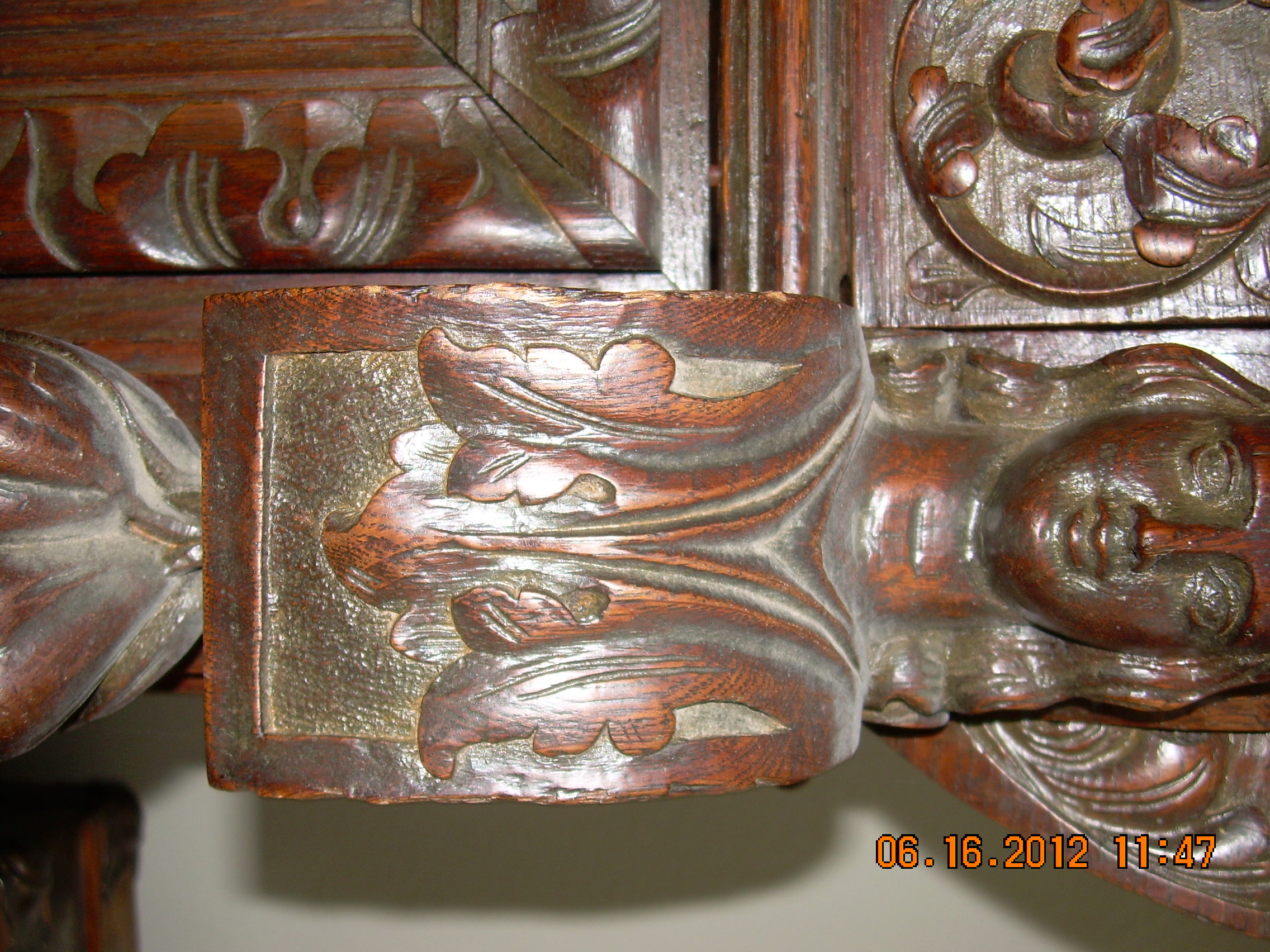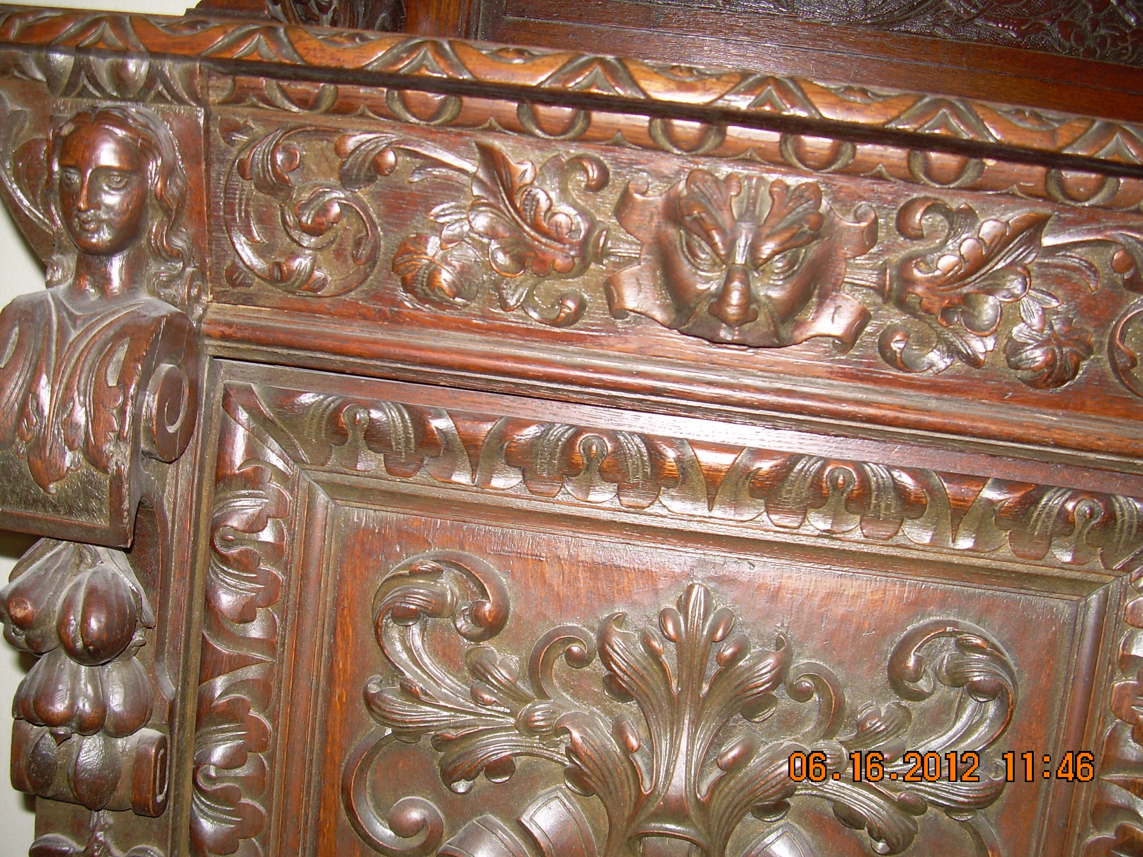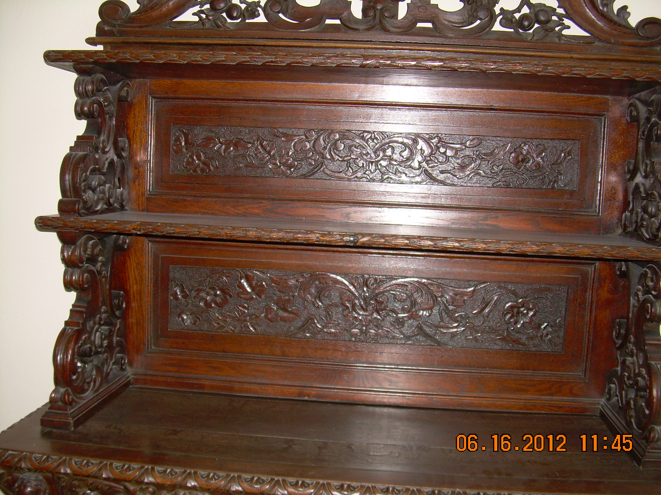 extreamly ornate carved sideboard, no nails screws or metal anyware. said to been made, in mid 1800s, for the Otis family, of Otis elevator fame