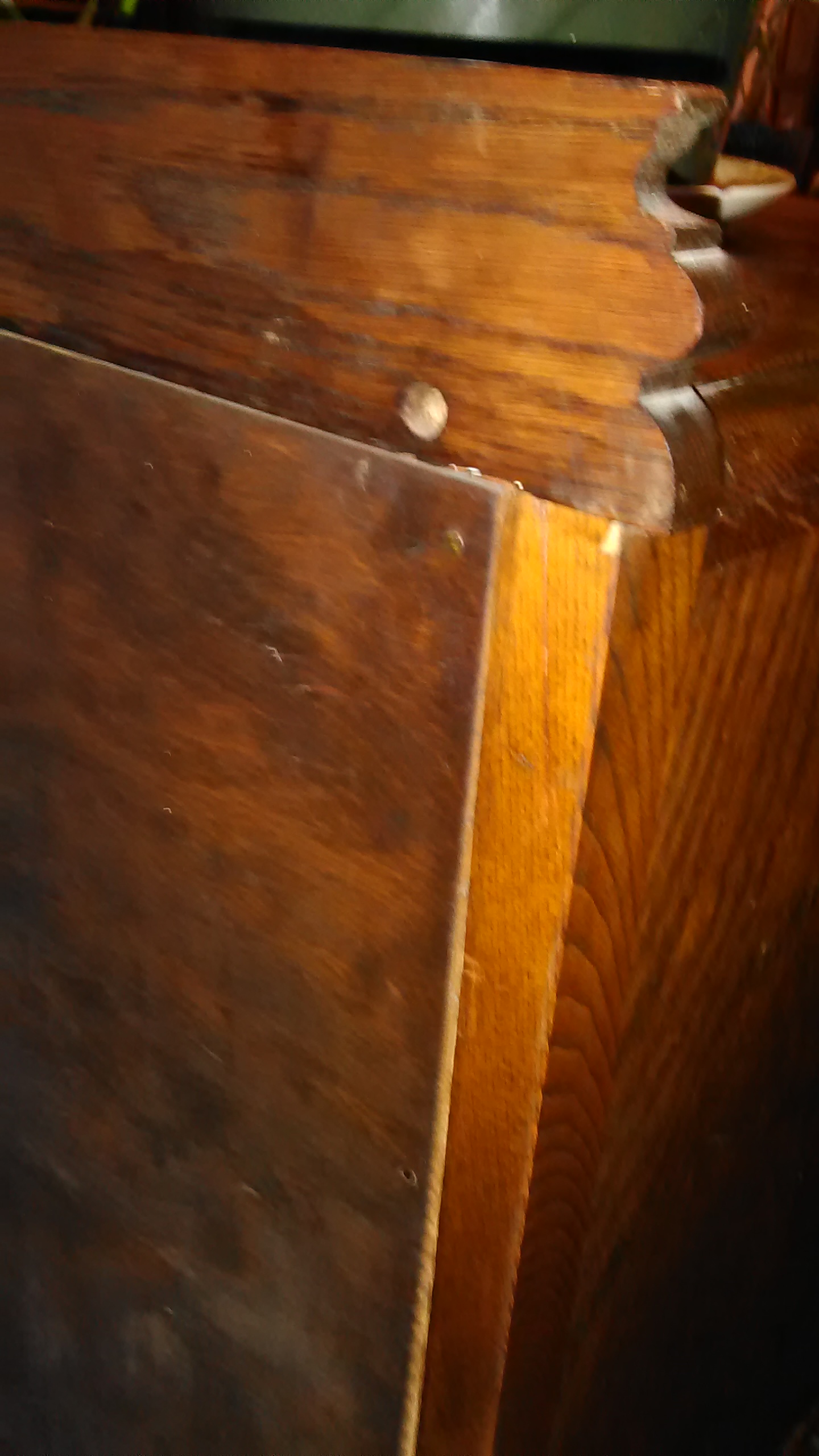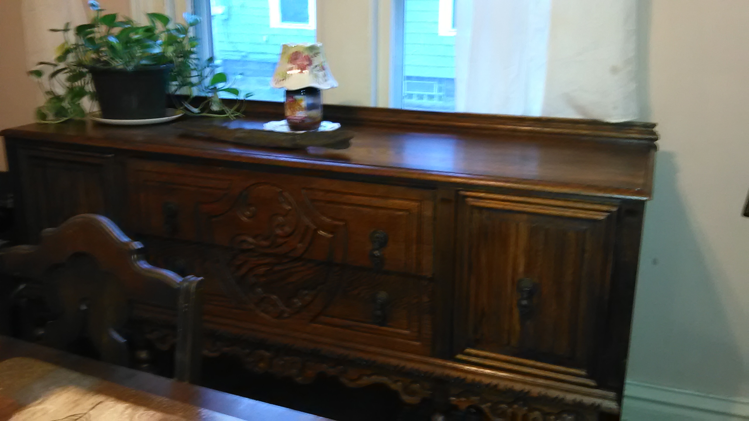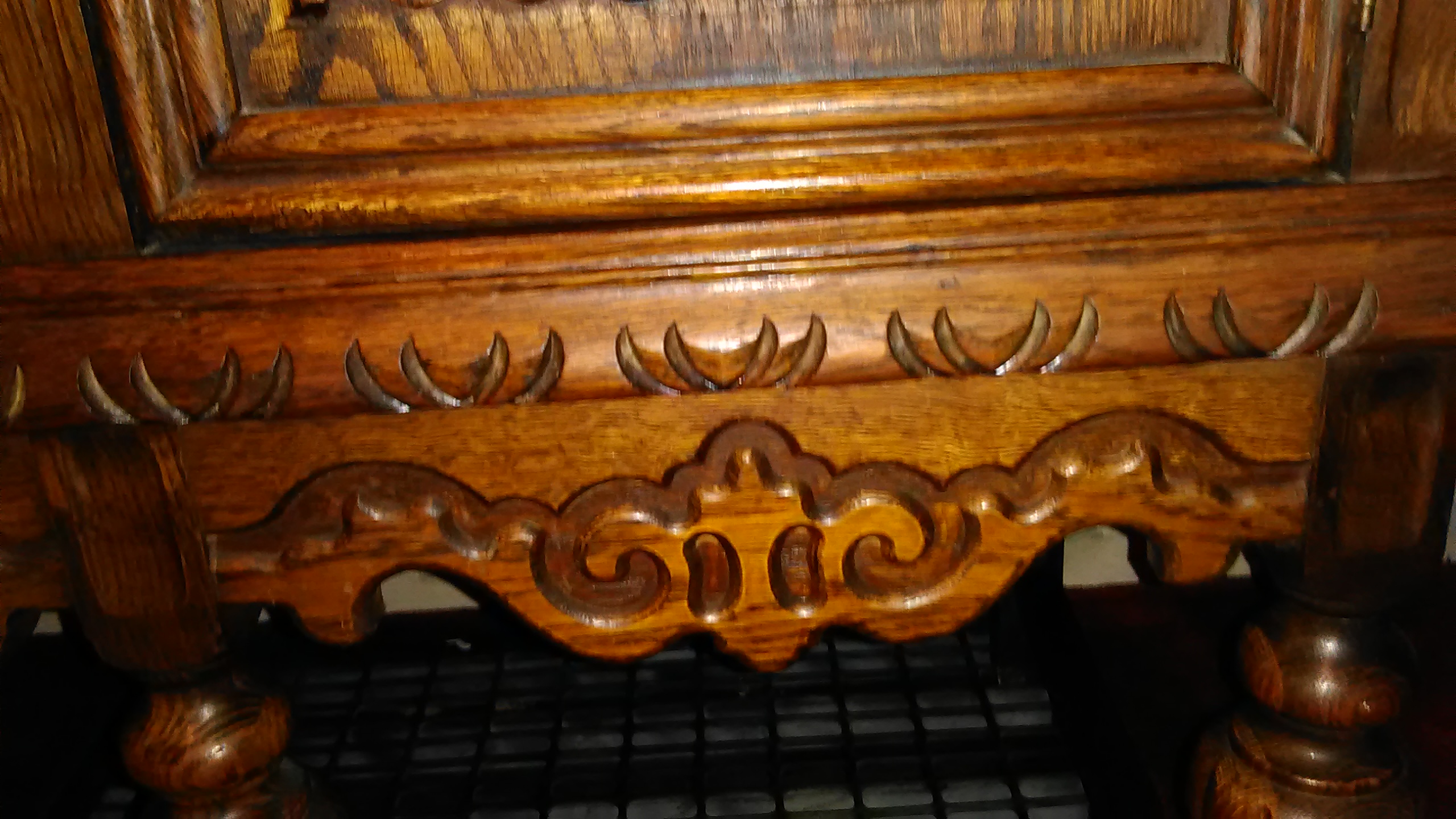 I found this piece I believe to be early 1900,s somewhere around 1940/I believe I'm curious as to what the crest on middle drawers is appears to be a road with waves surrounding it ? It is hand carved I can see the toolmarks I cannot find a name or stamp on it .back is thin wood so us bottom it us tongue and groove construction on the drawers never been stripped just polished very good shape had a crack along grain it is repaired .does anyone know value ? Or what design is ?