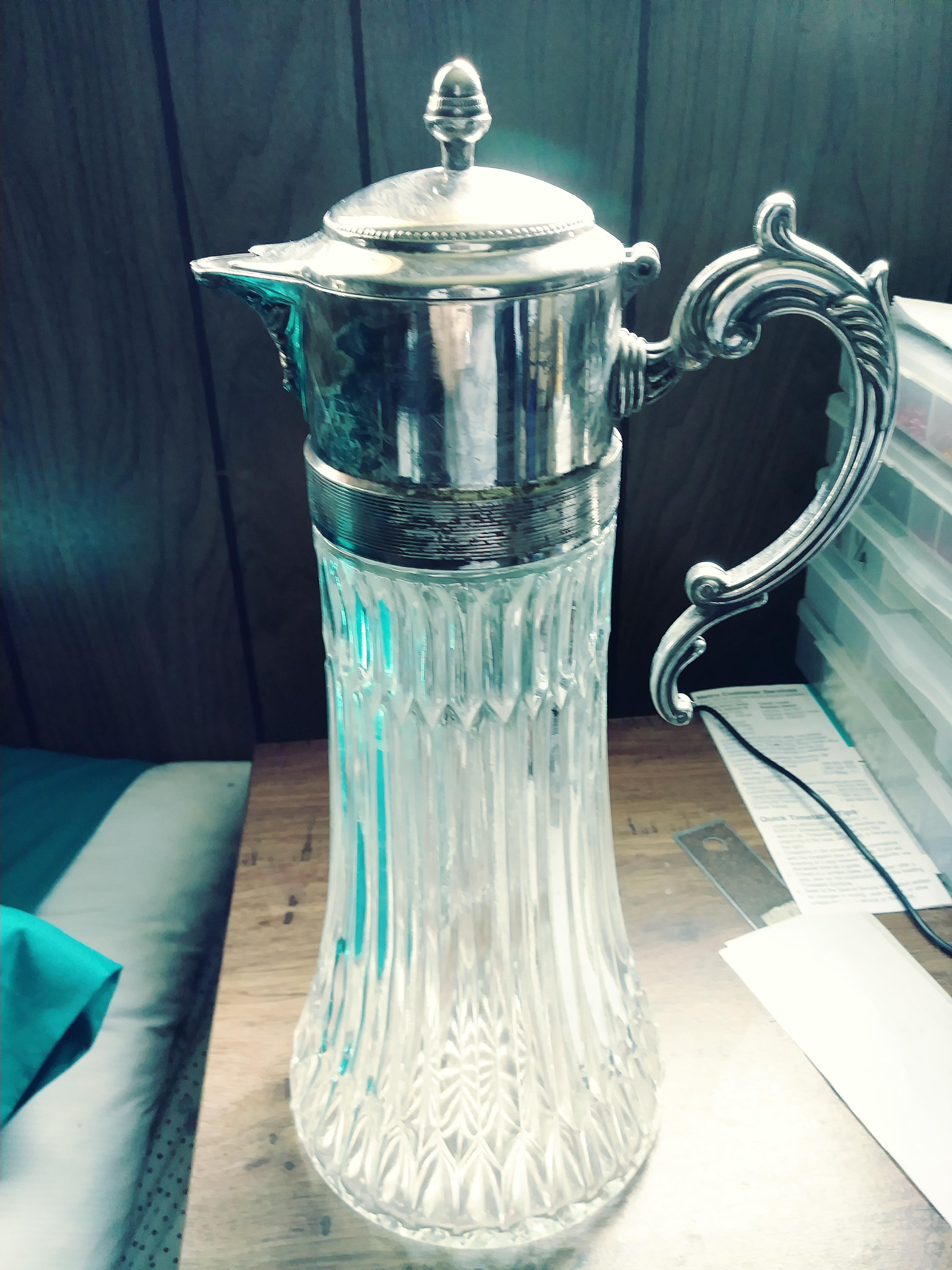Antique Silver and Glass Water or Ice Tea Pitcher