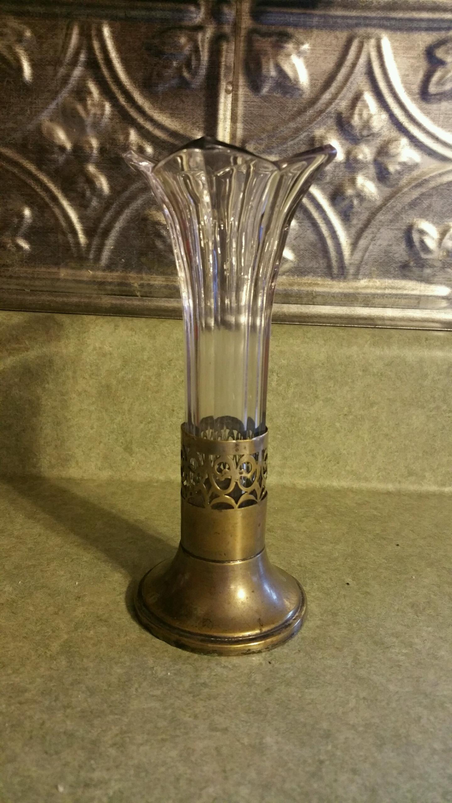 3 inch silver base -decorative witha 7 inches tall flutted at the top.