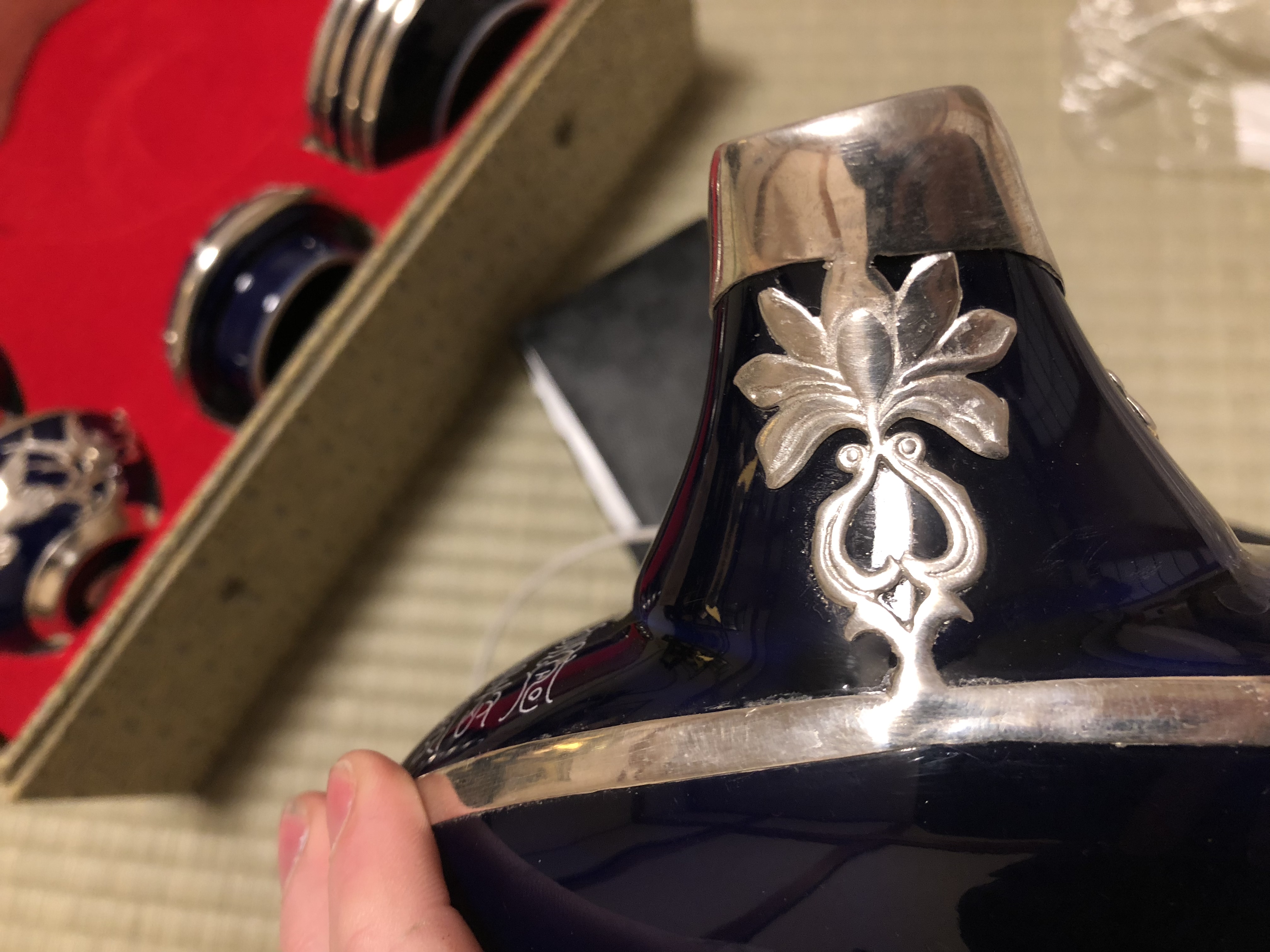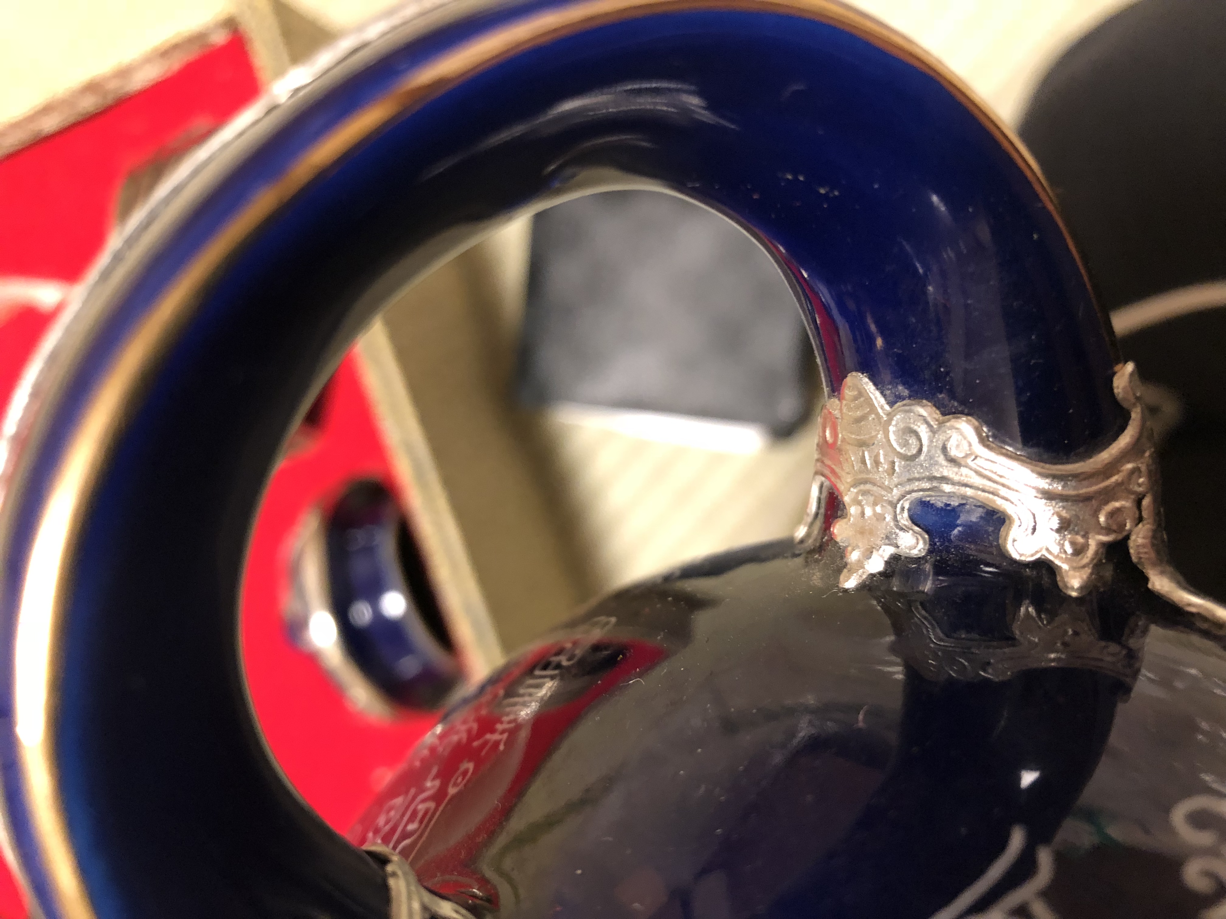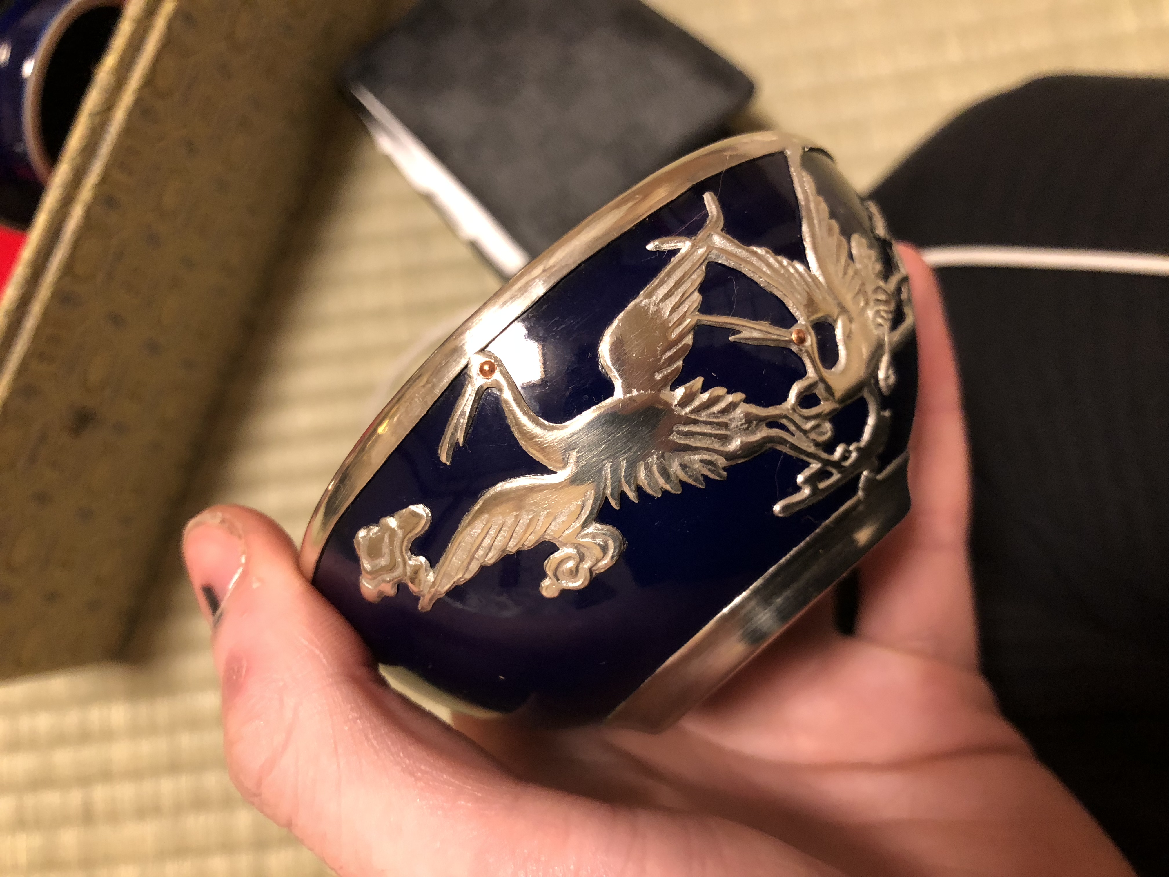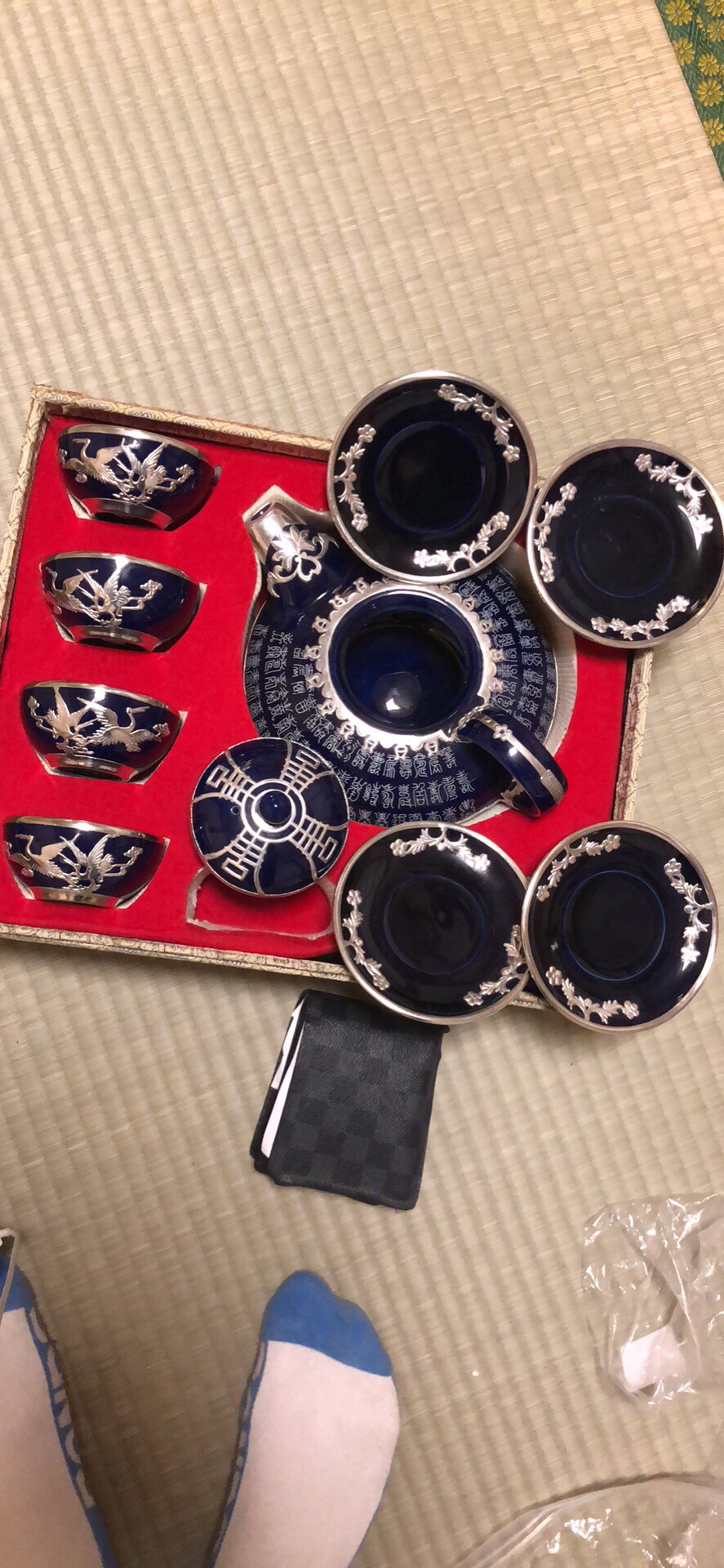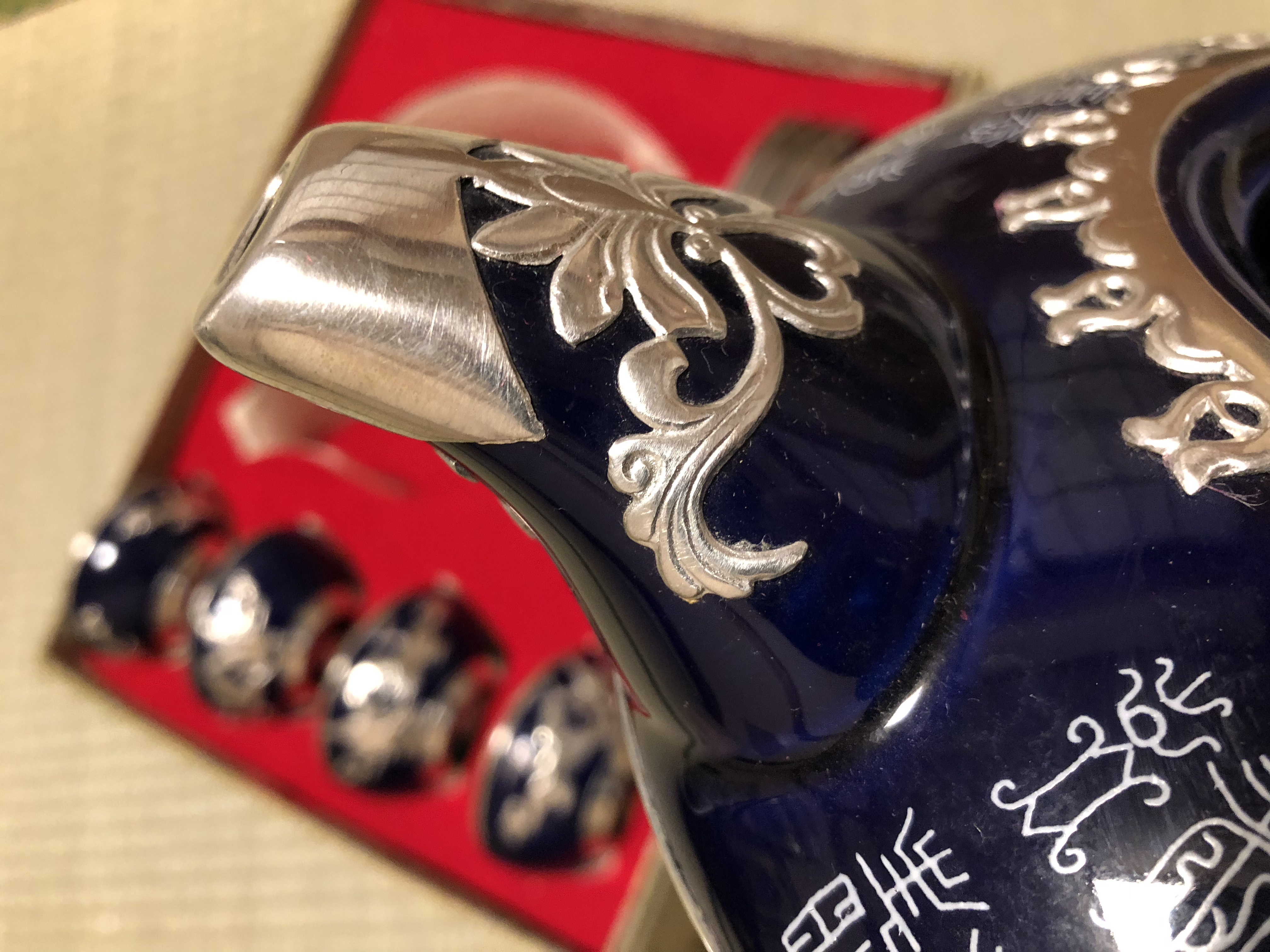 I brought this gorgeous tea set in store in Japan. The item has a solid silver inlay and I haven’t seen anything like it around (including on the internet). NOT SILVER PLATED!
