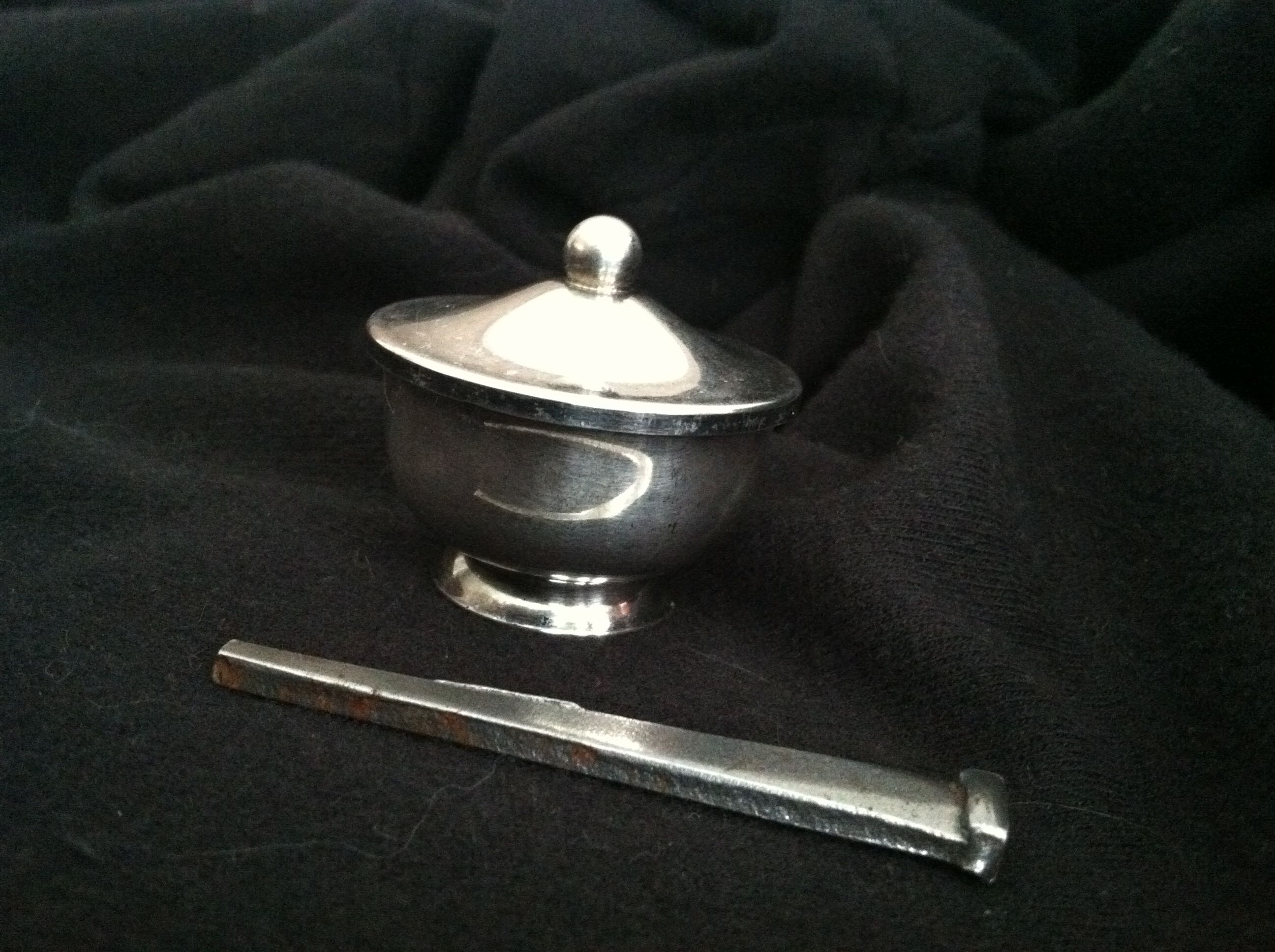 Antique Raimond mini pot with lid, and stirrer.