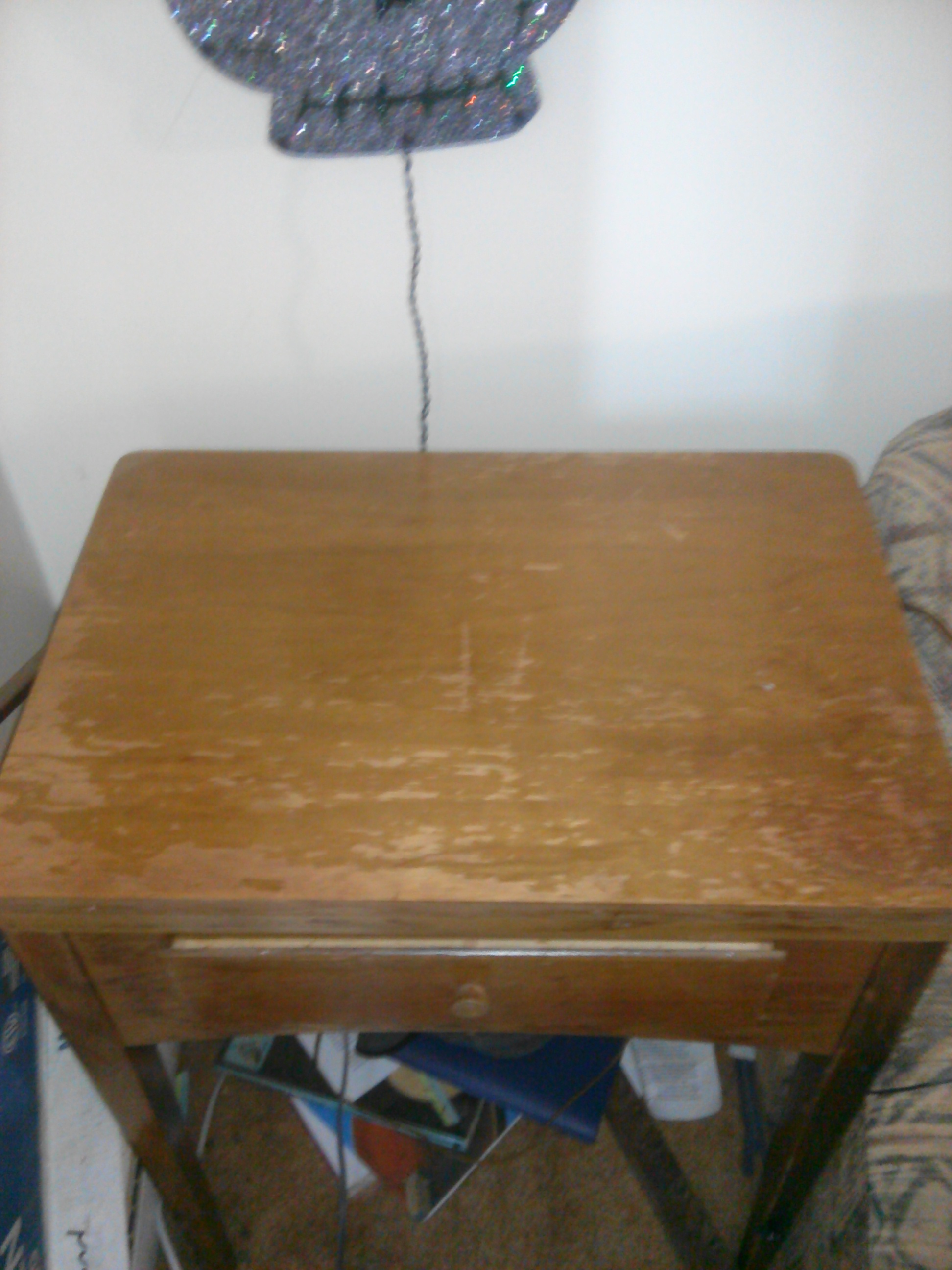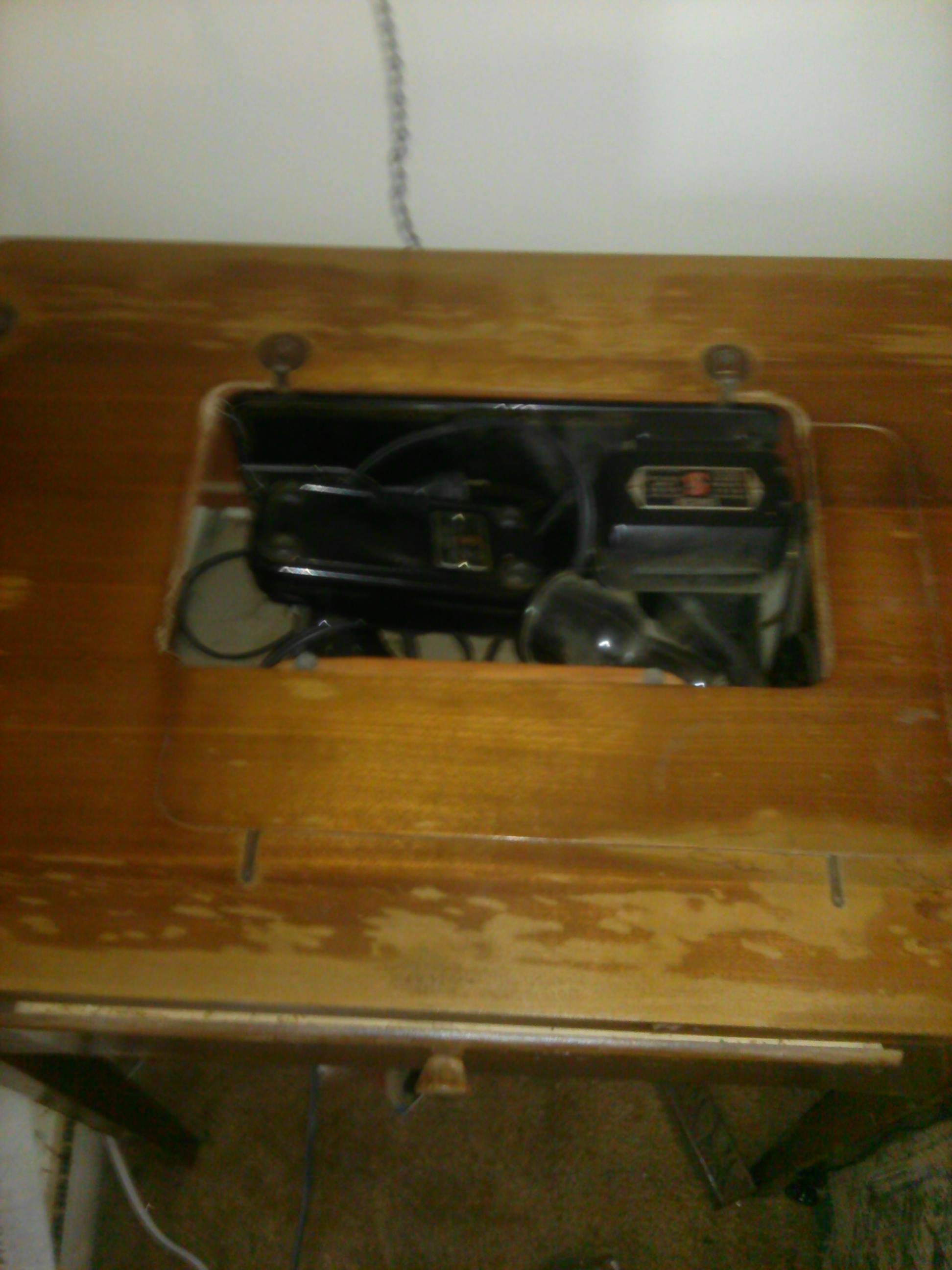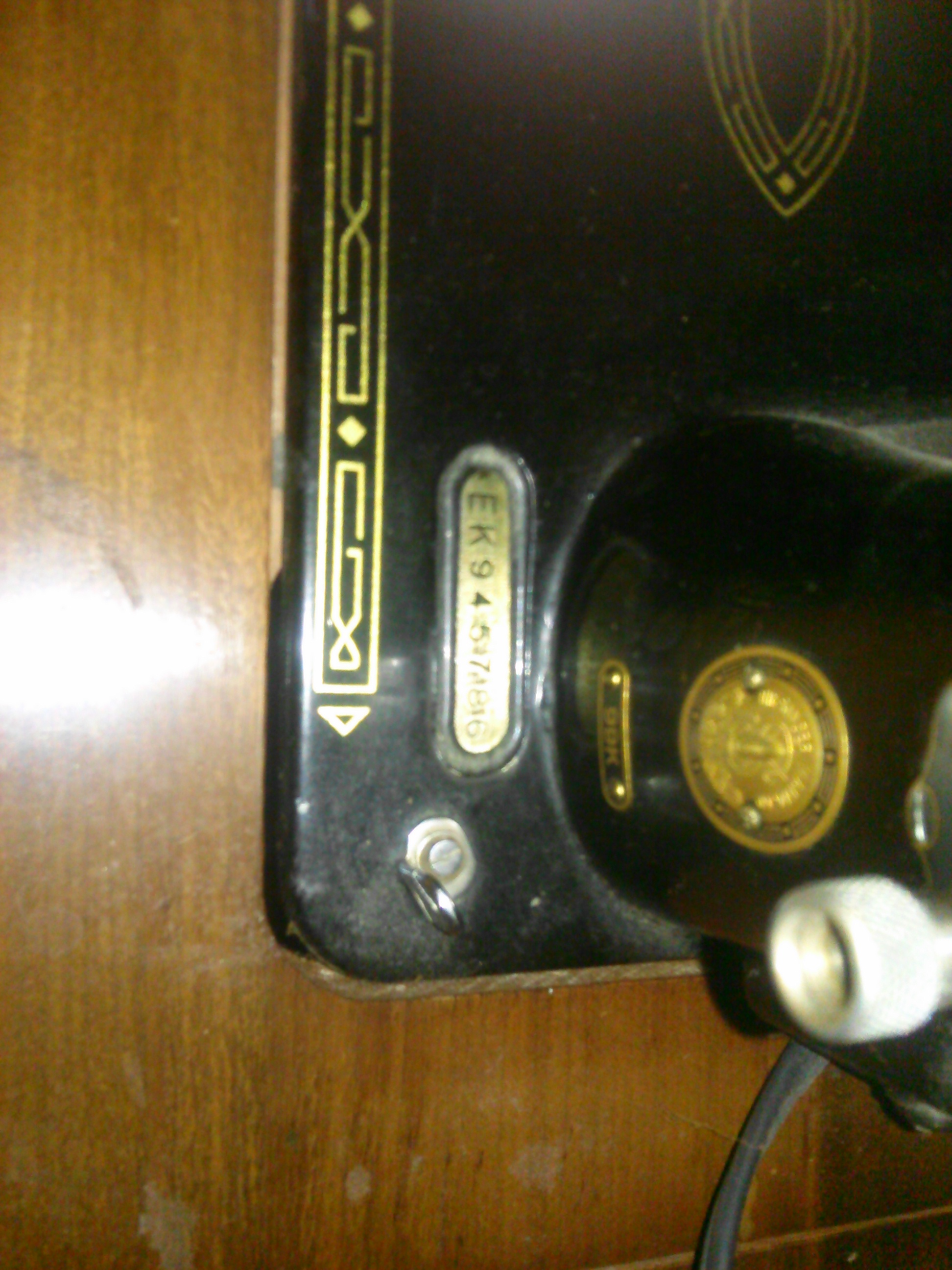 I believe this is a Singer sewing machine from 1937. it is in very good condition, 100% functional. It has a light on the back, plugs into a regular wall socket, and has a foot pedal. It does only have a straight stitch, and with some of the more modern fabrics I use, I require other stitches. The table shows use, and the actual machine could do with a cleaning.