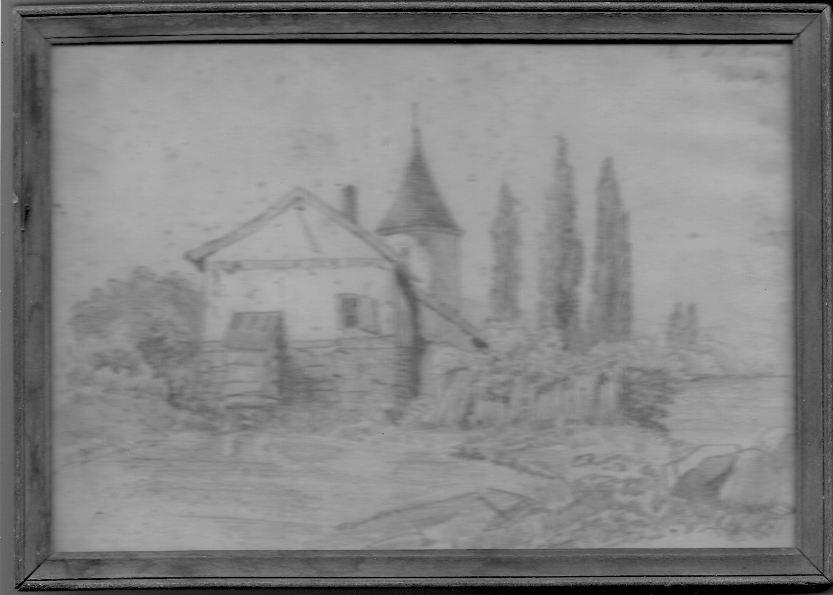 Sketch is 8" x 5.5", appears to be original. It was hidden behind another photo in a very old frame. in the top right hand corner it is signed "? Wilkins No. 4" Question mark denotes a letter or letters I cannot make out -- likely initial or initials.