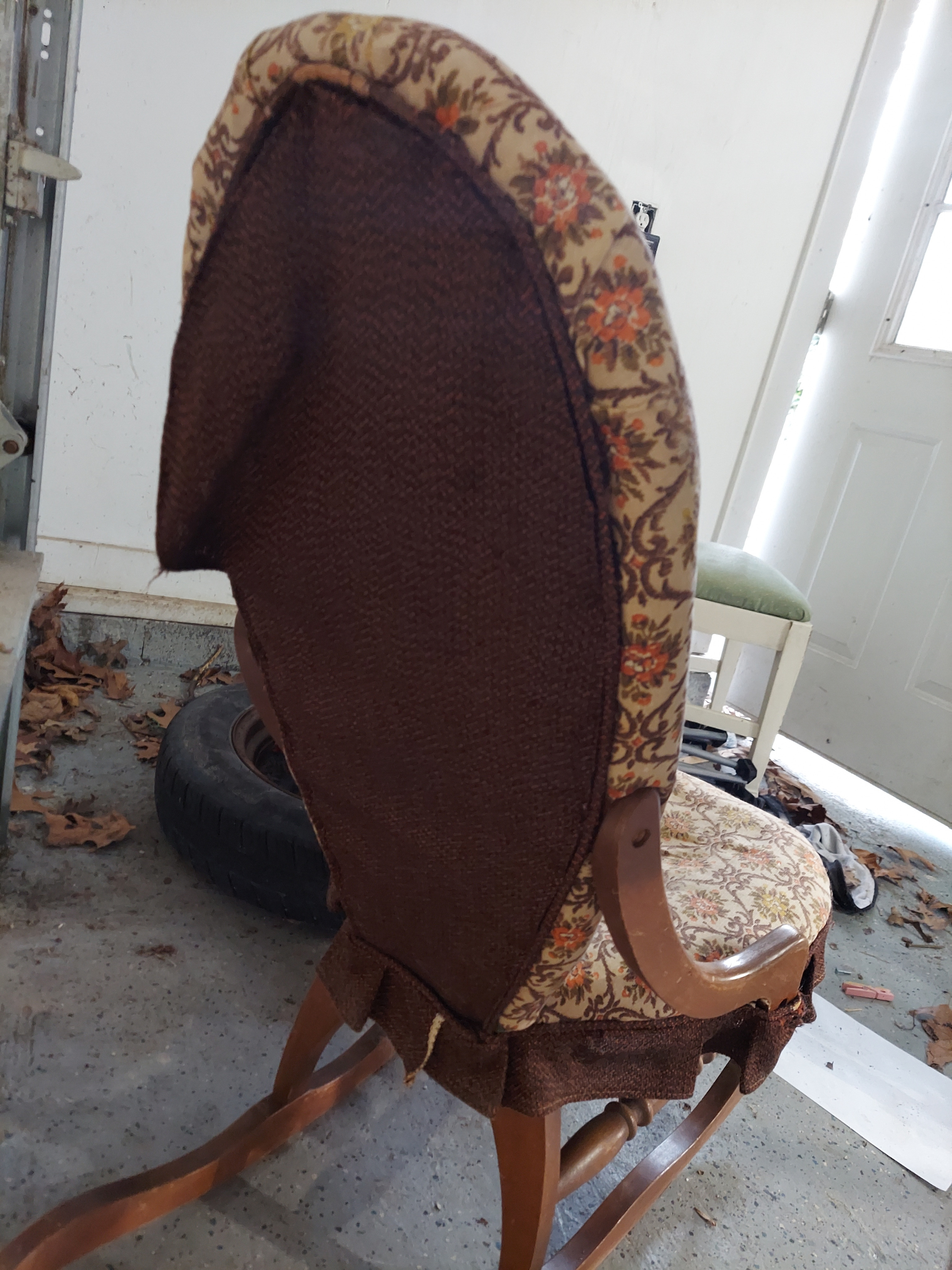 Slipper rocking chair, upholstered, intact
