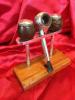 The pipe is discolored from use, but in otherwise good condition. I'm not sure if the pipe stem is original, or not. It seems to be made from Bakelite and it is no longer shiny, so it certainly seems like the correct material and age.