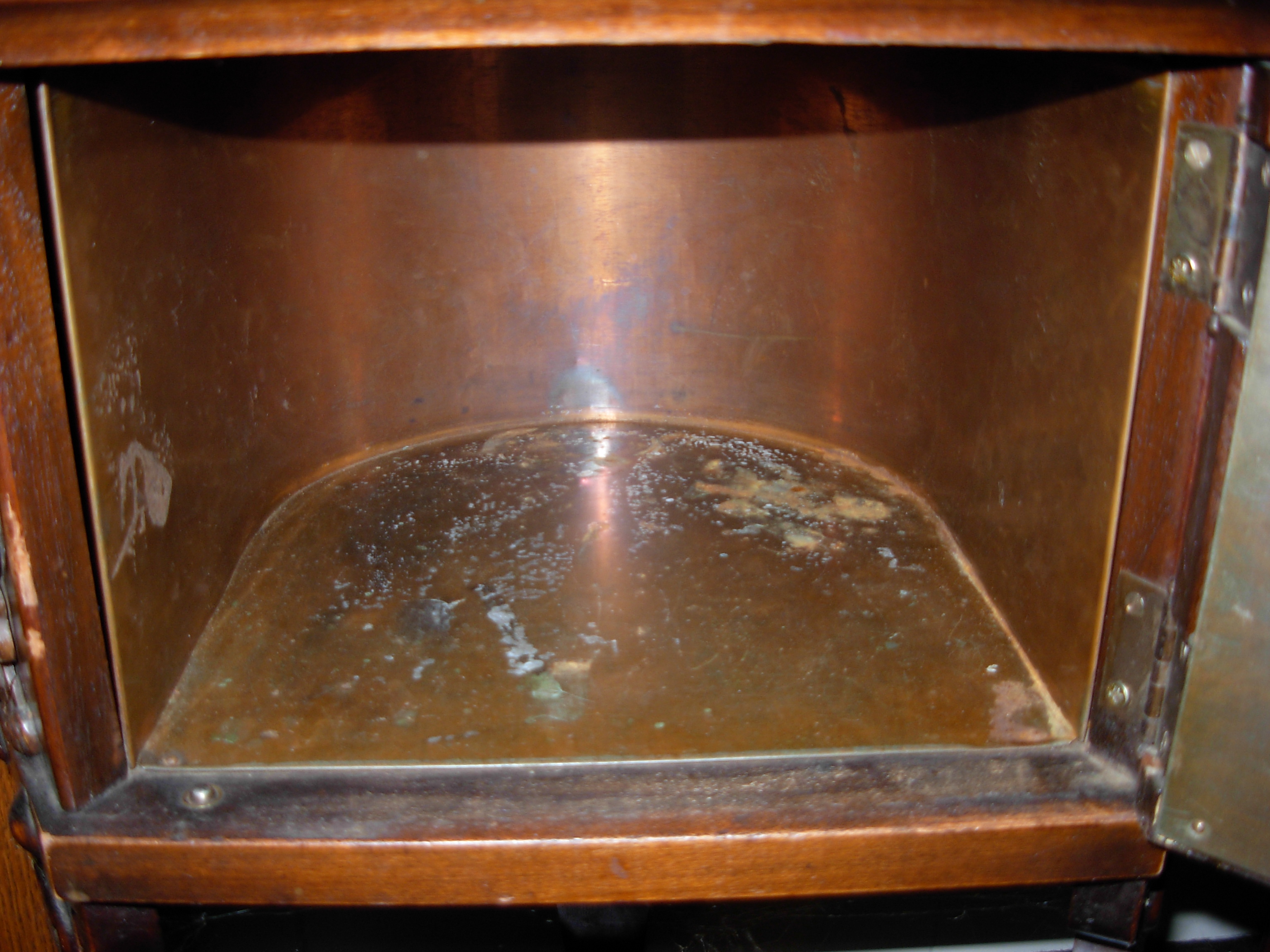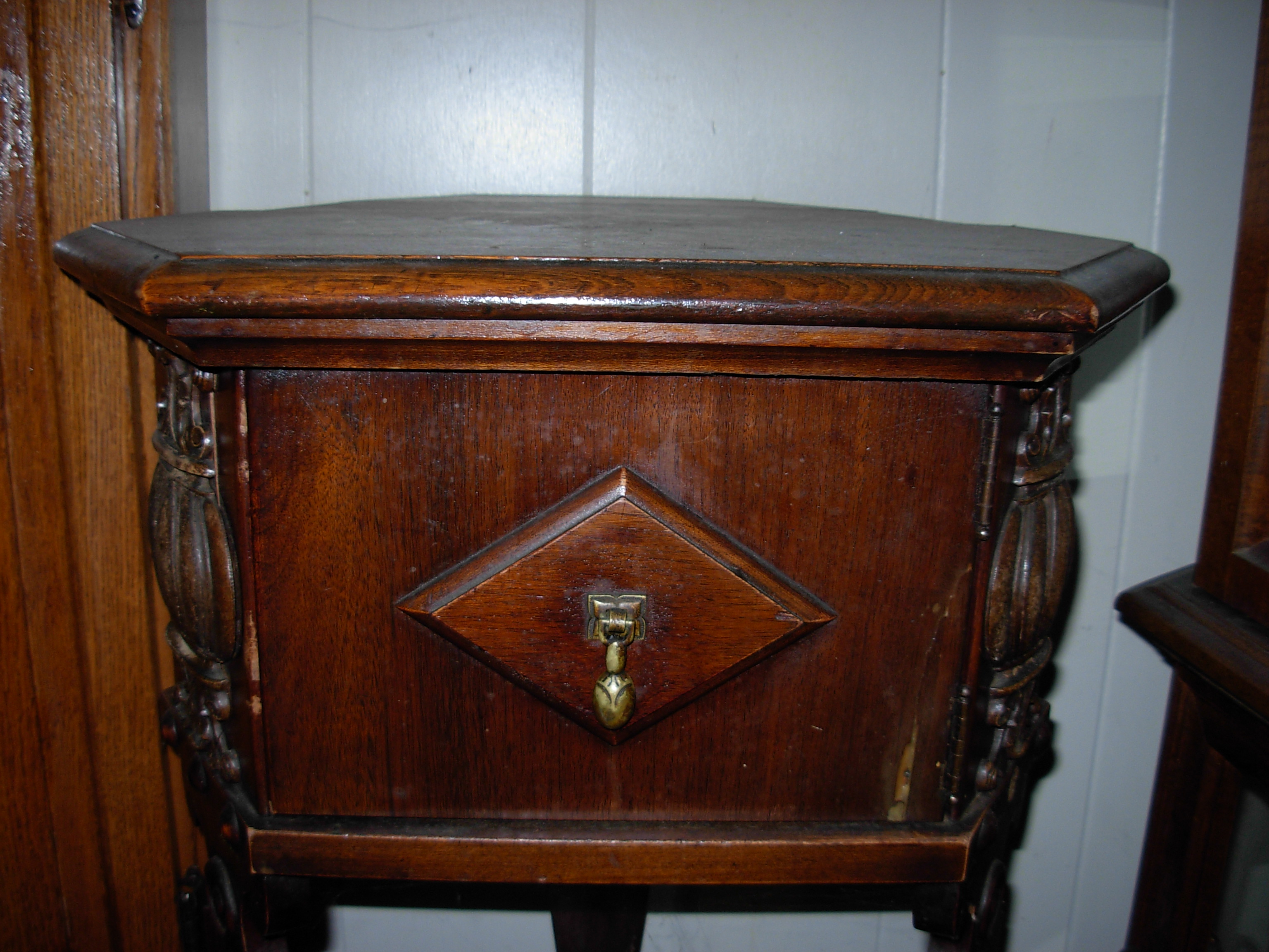 I don't see much money here. These copper lined smoking cabinets are fairly common and the three legged feature really doesn't add or subtract to value, there are quite a few styles. Similar pieces have sold for as low as $20 and as high as $150 at auction depending on condition and beauty. This one falls into the $35-60 range IMO.