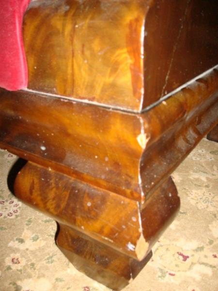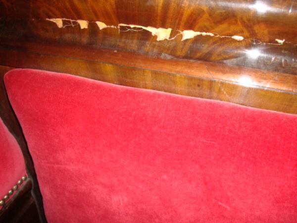 Was in bad condition with original horsehair stuffing coming out and wood lifted. Had item refurbished. Unfortunately, moving the item several times, the movers cracked the top back portion, which is again in need of some repair. Would like to know a bit more about it and the actual name or style and what it may be worth.