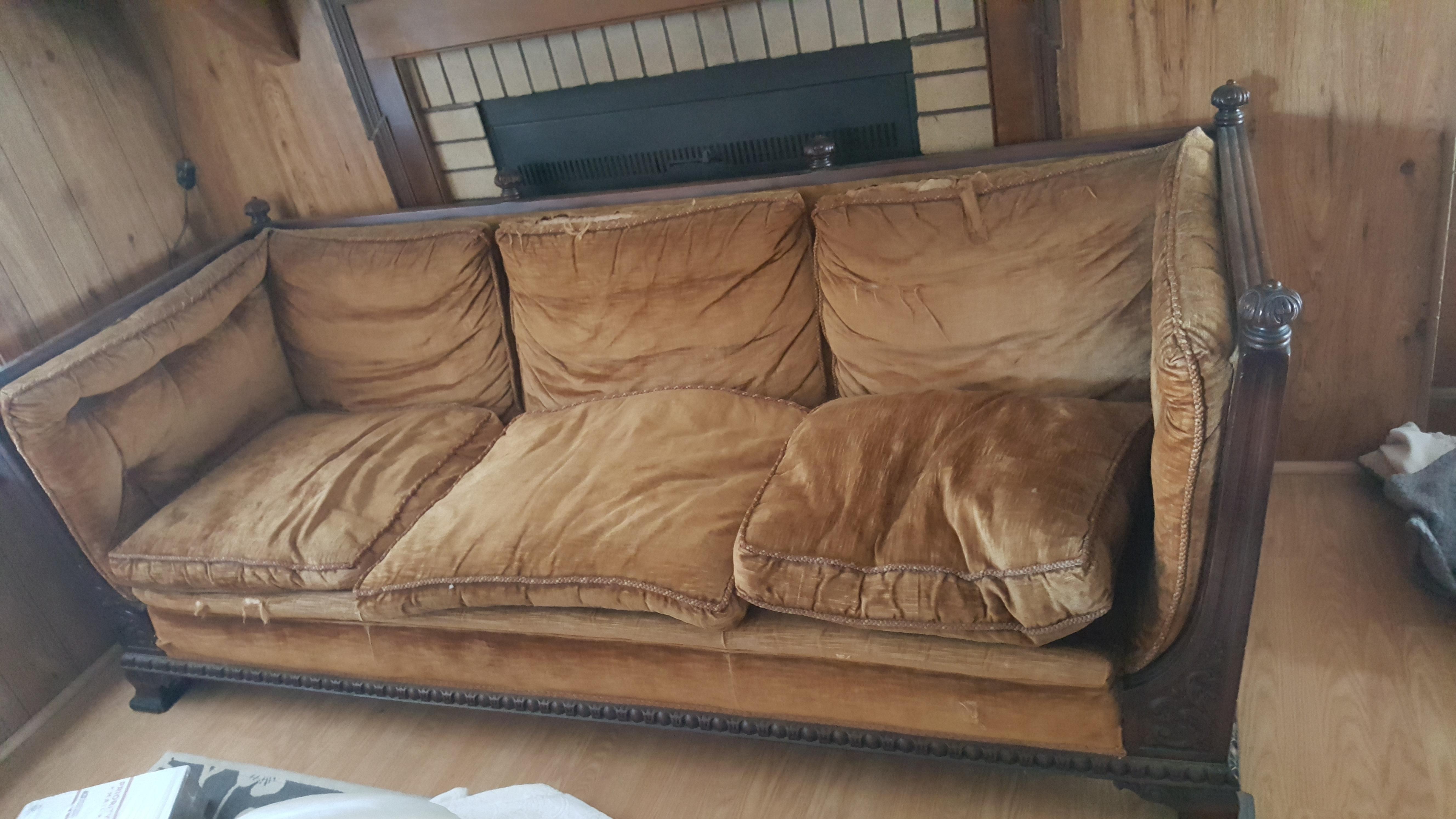 I believe they are 100+ years old but I truly have no idea what they are worth. The chair has been redone I believe but the sofa is original.