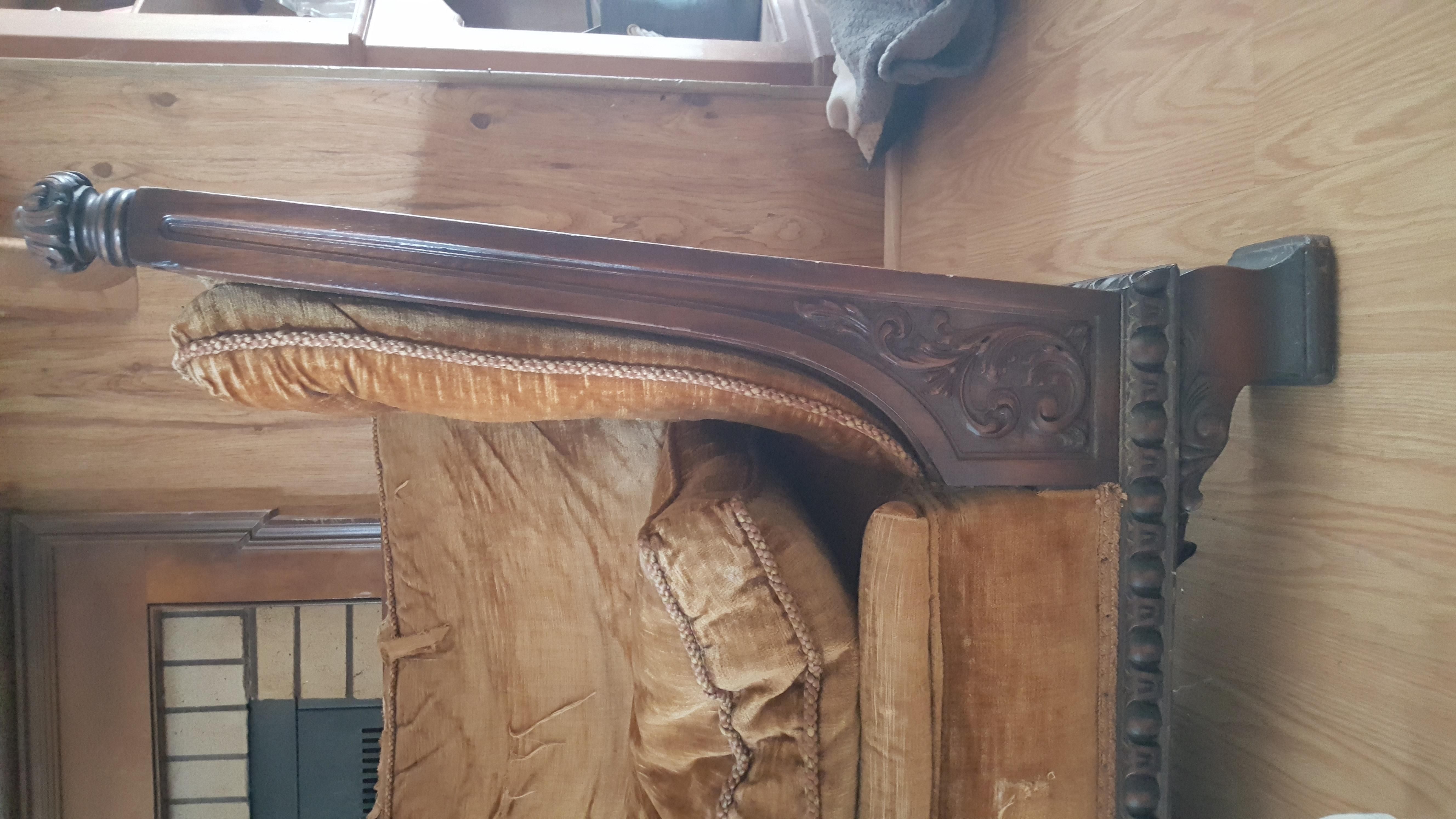The wood is in excellent condition. I also have the original down to read stuff the pillows.