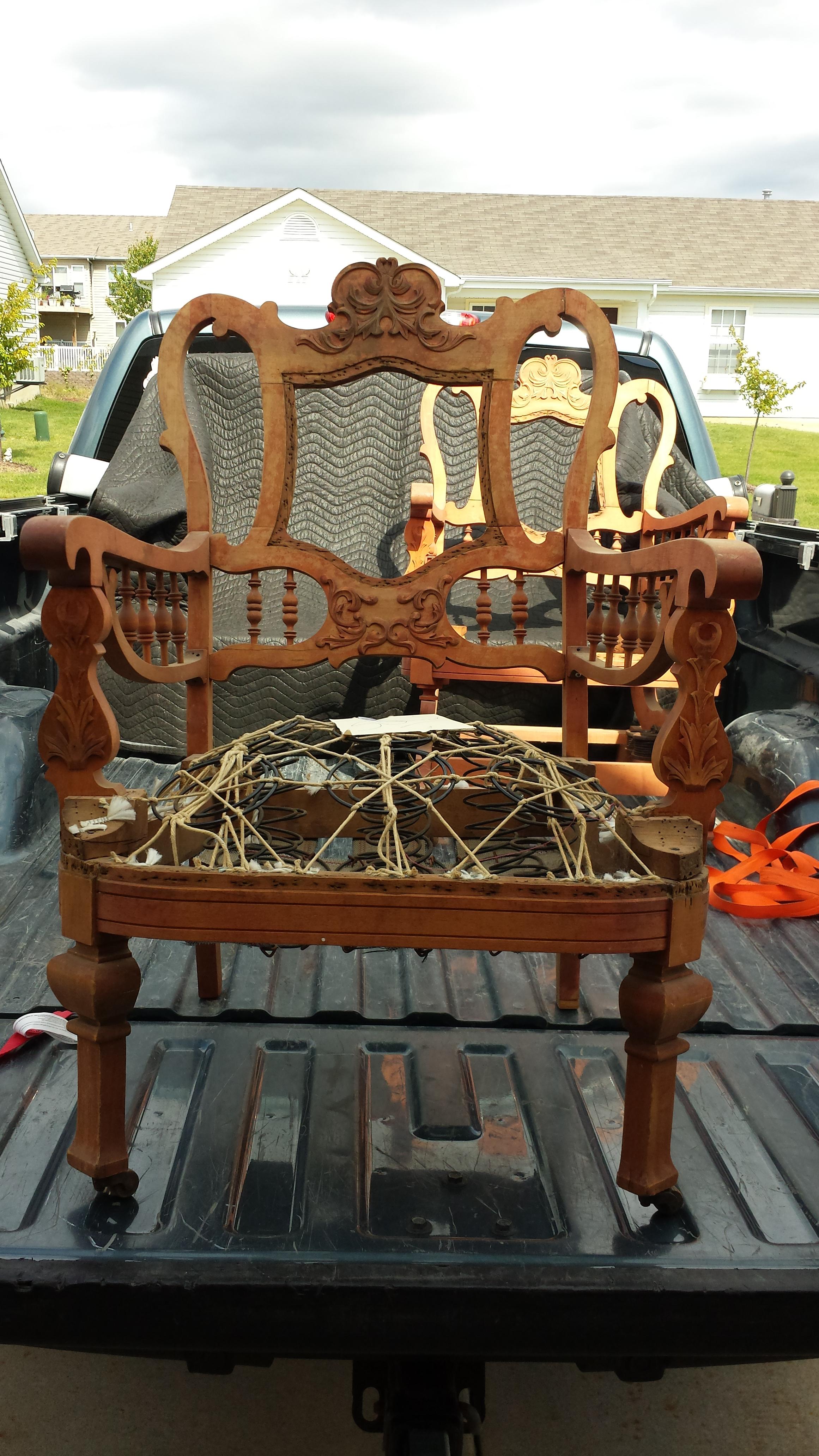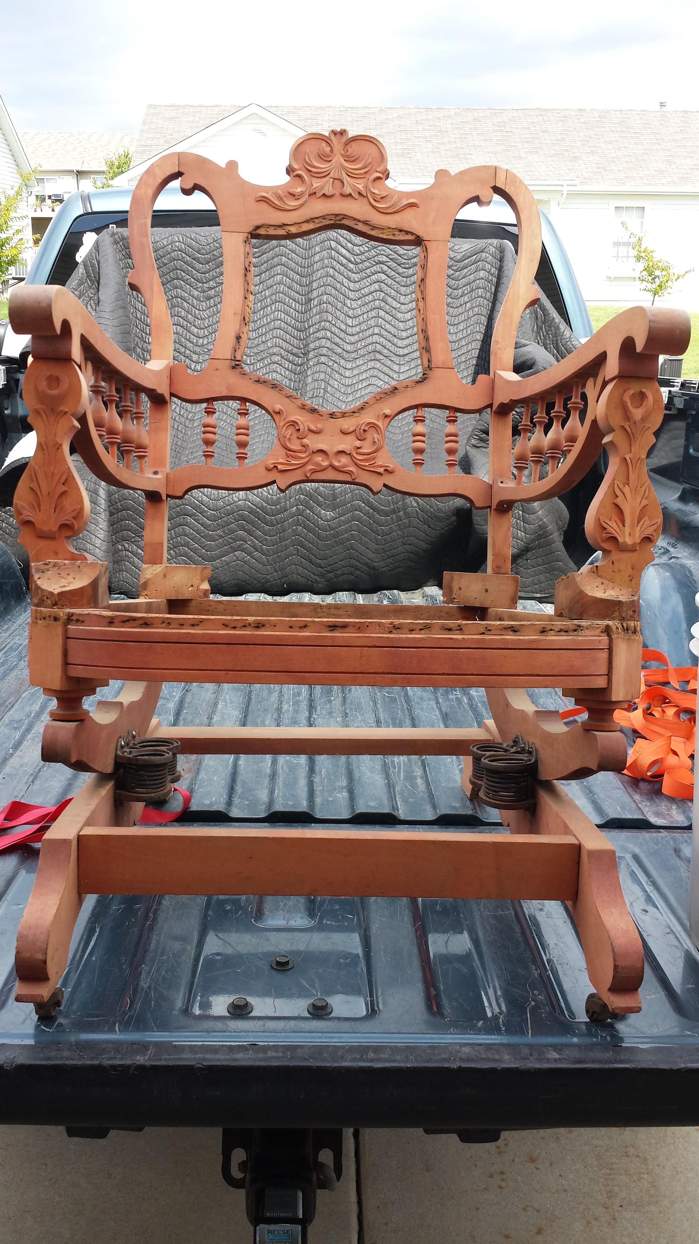 I need help identifying this furniture. It was brought to me to re-cover. I need the right timeframe and style, in order to get the right finish and fabric.