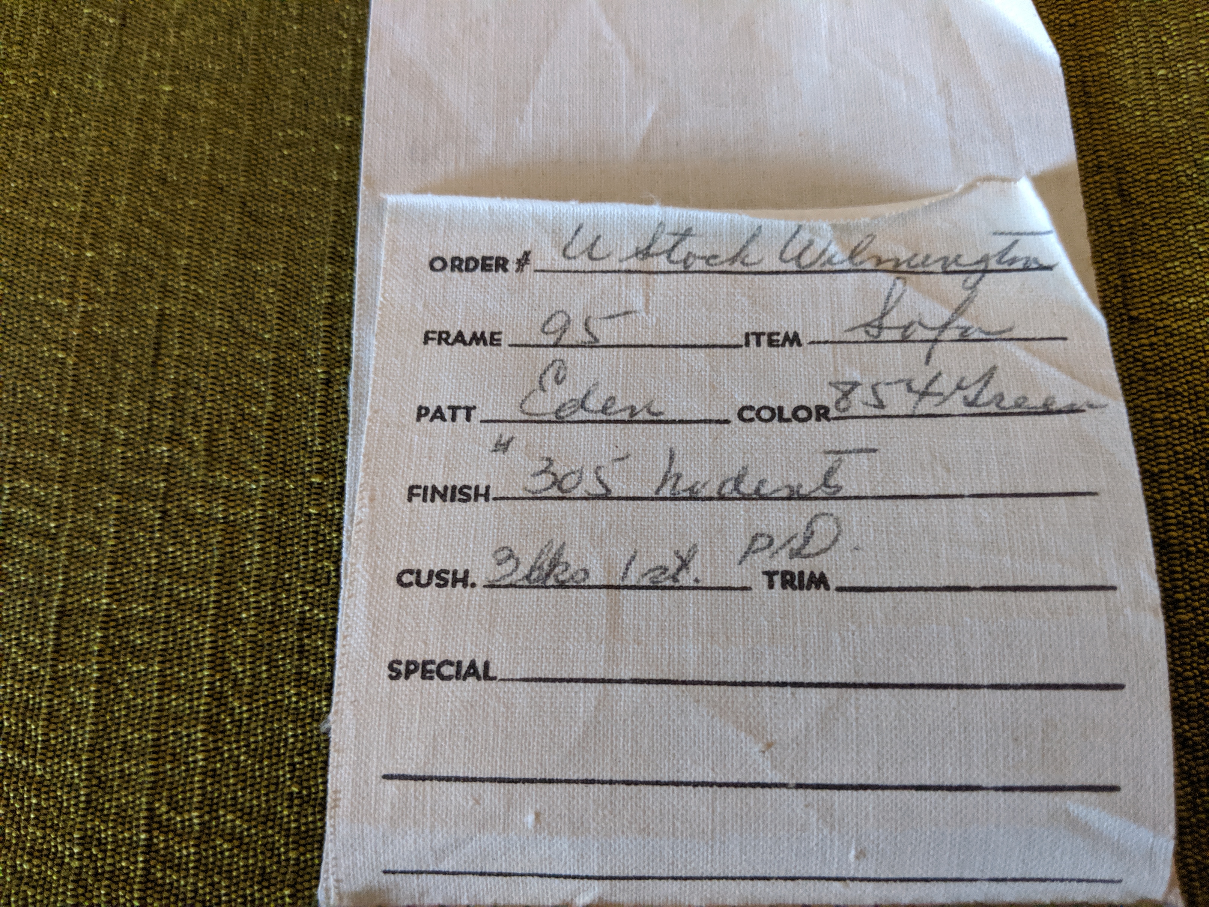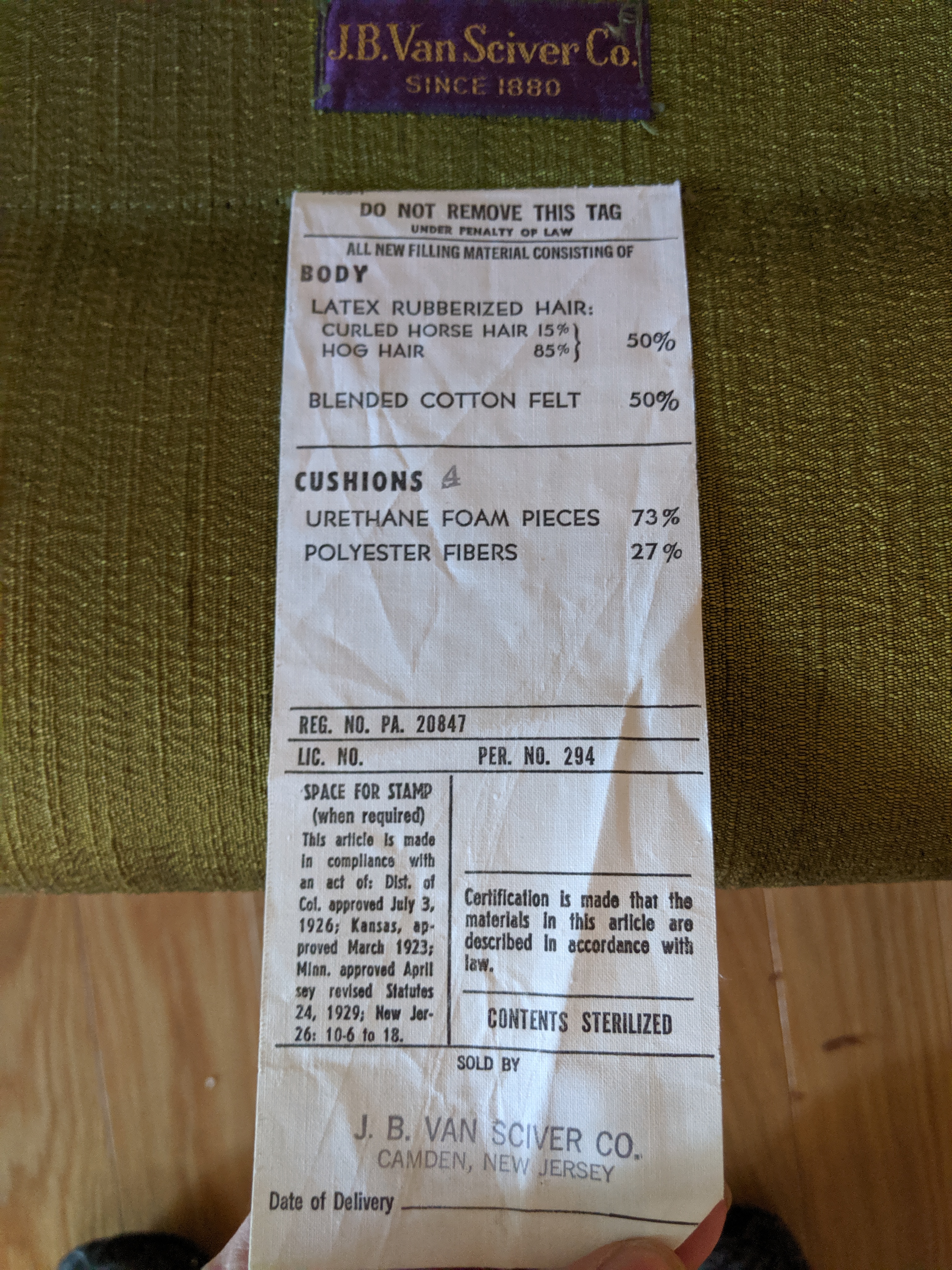 Wood, latex rubberized hair, curled horse hair 15%, hog hair 85%, blended cotton felt, urethane foam pieces, and polyester fibers.